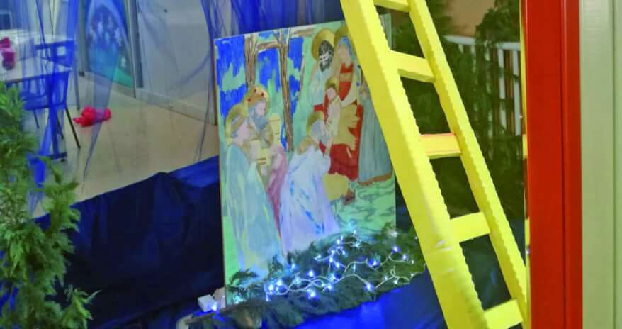È un messaggio di ricordo e di speranza il presepe realizzato dalle classi della scuola primaria di Borgosotto di Montichiari, sotto la direzione degli insegnanti fiduciari Fabio Serravalle e Monica Bioni. L’idea, in un anno così difficile, è stata quella di fare memoria di quanti nella città della Bassa sono periti a causa del Coronavirus e, allo stesso tempo, di ispirarsi a qualcosa di artistico legato alla pittrice ‘incontrata’ durante le lezioni, nello specifico la statunitense Georgia O’Keeffe. Ecco così che ha preso piede un’opera, visibile anche dall’ampia vetrata esterna del plesso, che si richiama al quadro “Una scala per la luna”, del 1958: “L’obiettivo – spiega Serravalle – è simboleggiare l’ascesa, la ricerca della speranza che la pandemia termini il prima possibile e che la vita riprenda la sua normalità”.