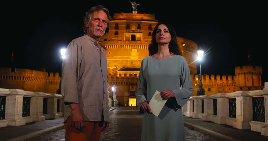 Il documentario di Ciprì ruota intorno all’intervista a mons. Rino Fisichella, una delle voci più autorevoli della Chiesa Cattolica, in cui confronta con temi centrali del dibattito contemporaneo, utilizzando un linguaggio accessibile, essenziale, ma capace di trasmettere la dirompente forza della speranza. “Pontifex” alterna linguaggi e registri: accanto alla parte documentaristica, trova spazio una sezione fiction che dà corpo a una narrazione simbolica e universale. In un dialogo immaginifico tra tre personaggi – una donna (la Speranza), un uomo (il Suicida) e una figura terza (il Mondo) – il documentario riflette sul rapporto tra l’essere umano e la fede, tra la crisi e la ricerca di senso. Ad accompagnare lo spettatore in questo viaggio sono gli attori Rossella Brescia, Cesare Bocci e Gianni Rosato. Alle parole precise e semplici di Fisichella fanno da contraltare quelle fin troppo elaborate dalla trinità dei personaggi che risultano ermetiche così come le motivazioni dell’aspirante suicida che rivede la madre, morta in un episodio di guerra, nella figura di Rossella Brescia che, a sua volta, vaga per le chiese di Roma.