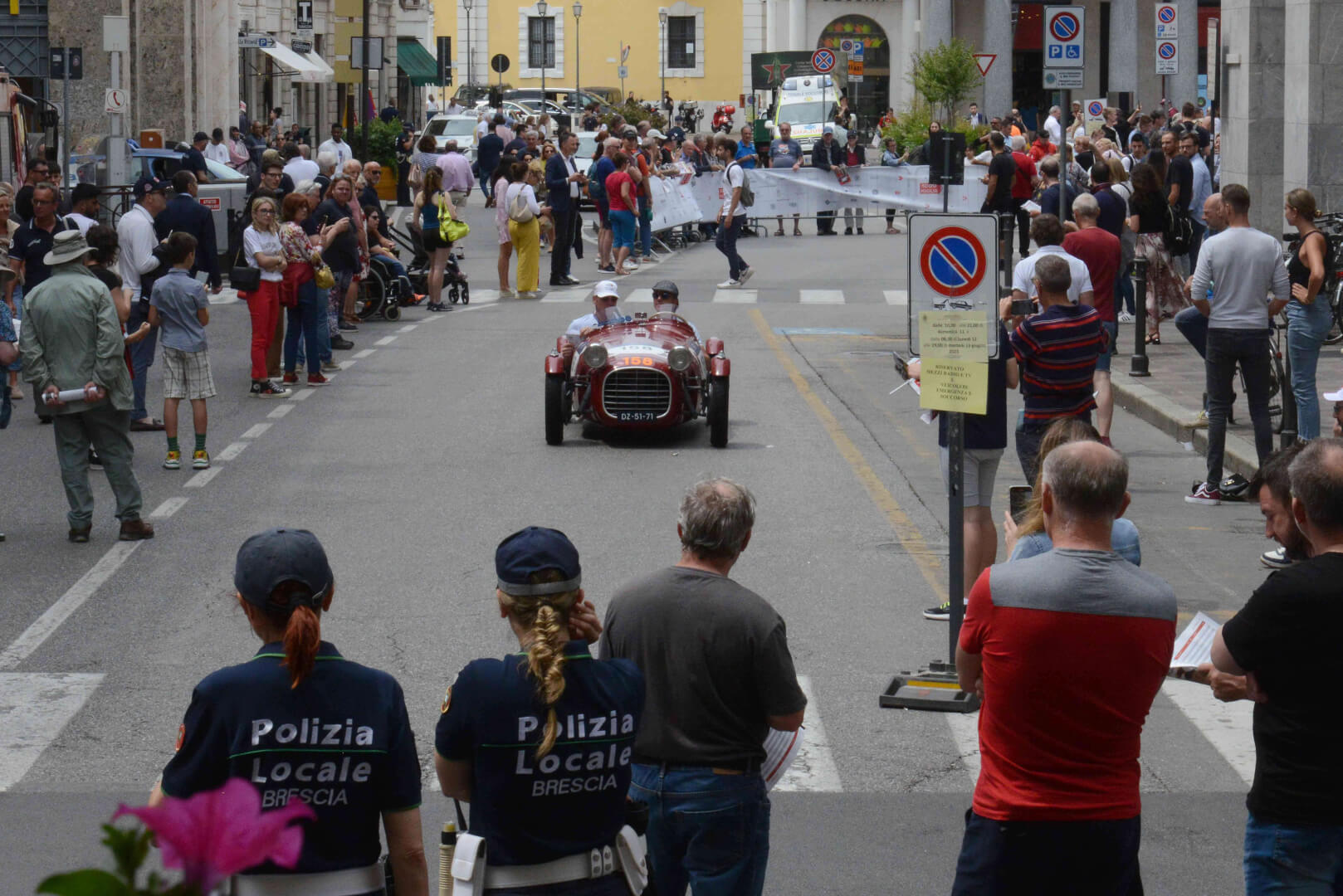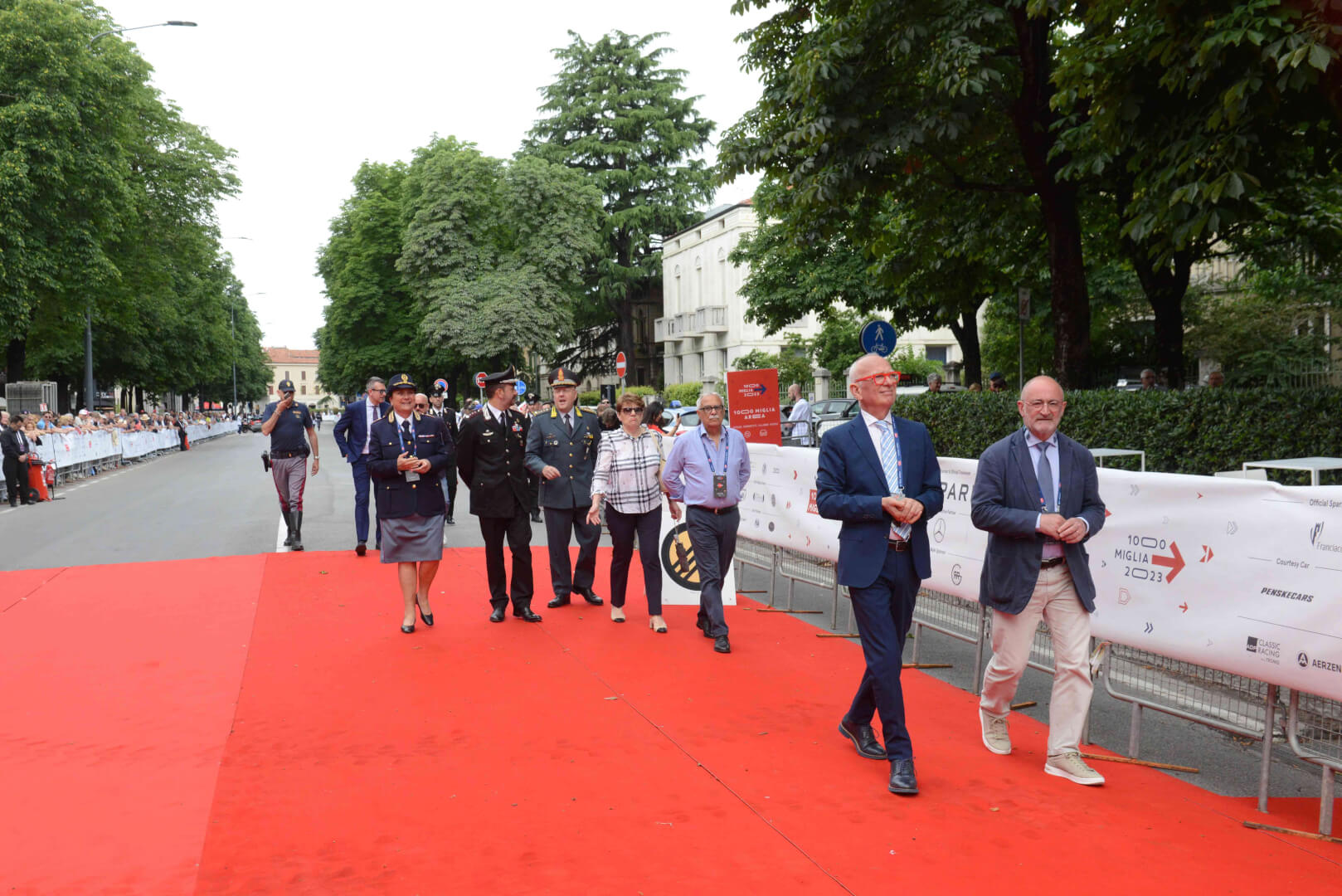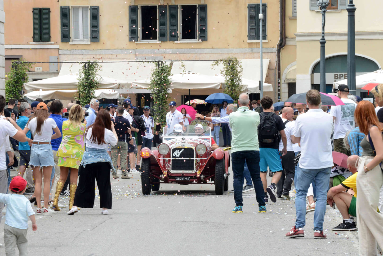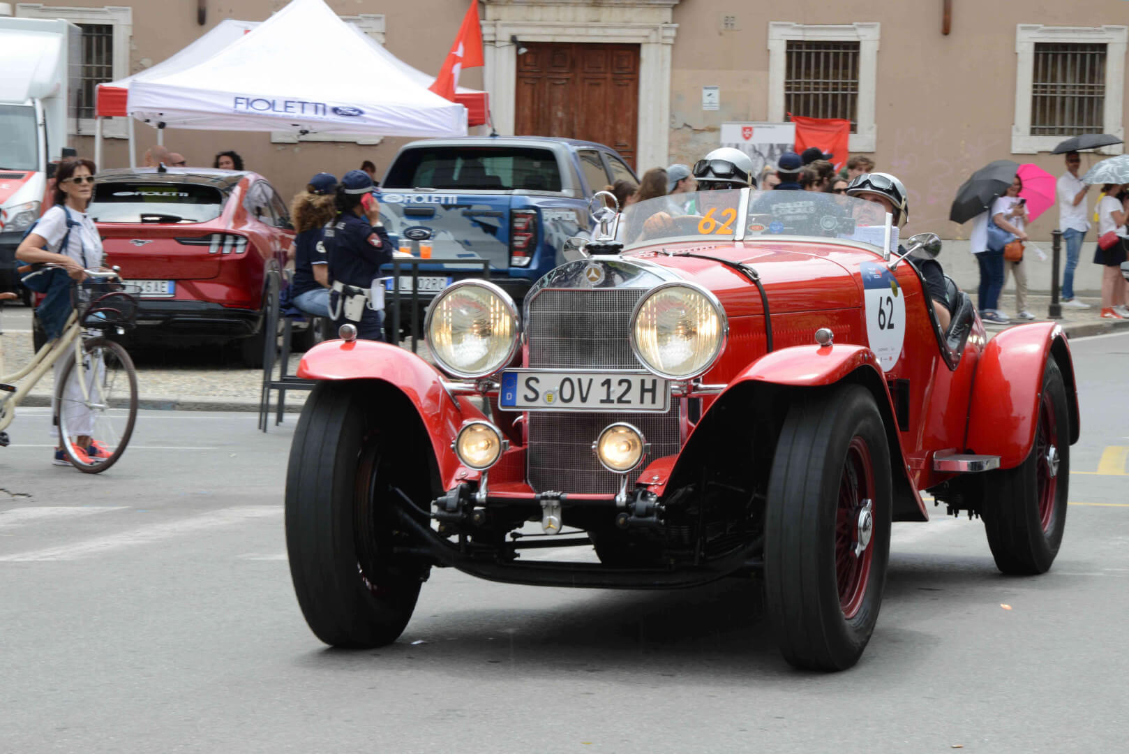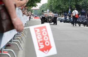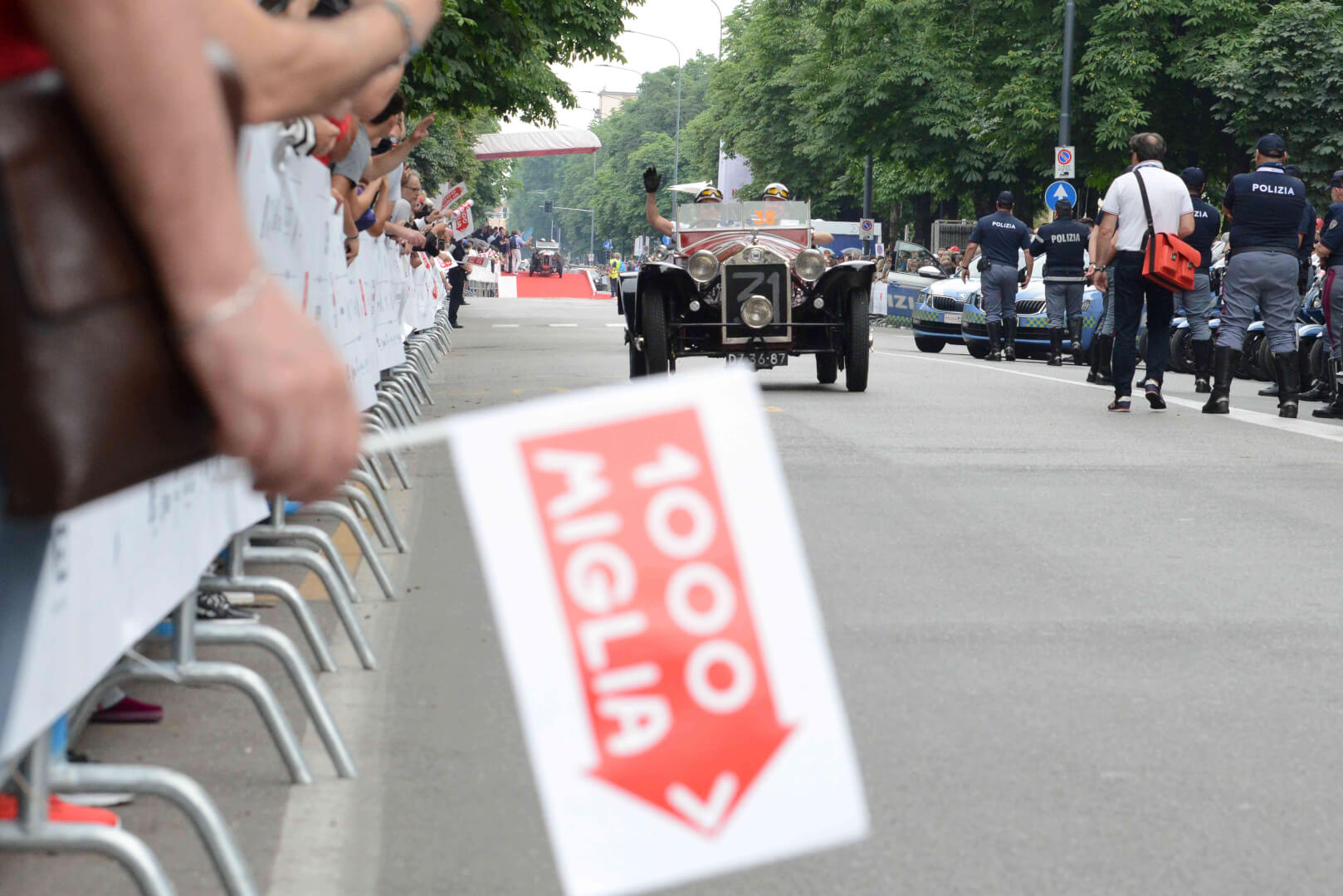 È partita la 41esima edizione della Mille Miglia. Dopo lo spettacolo delle Frecce tricolori, le auto in gara sono partite dalla pedana di Viale Venezia per poi proseguire verso Desenzano (14.05), Sirmione (14.20), Verona (15.20), Bovolone (16.10), Ferrara (17.50), Lugo (19.15), Forlì (20.45) e Cervia-Milano Marittima (21.30), dove finirà la prima tappa.