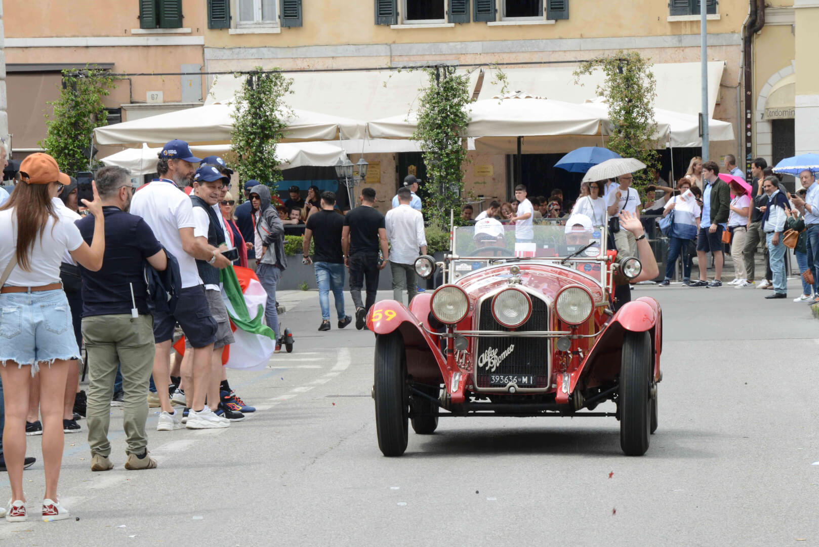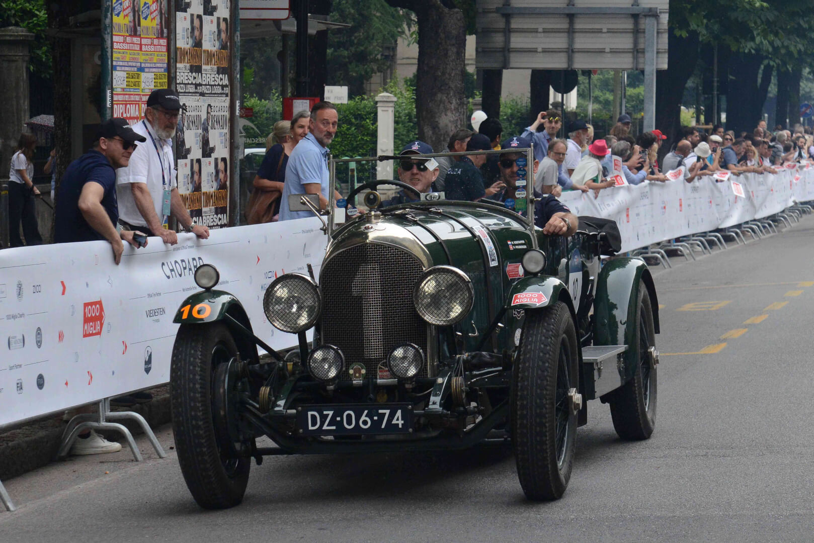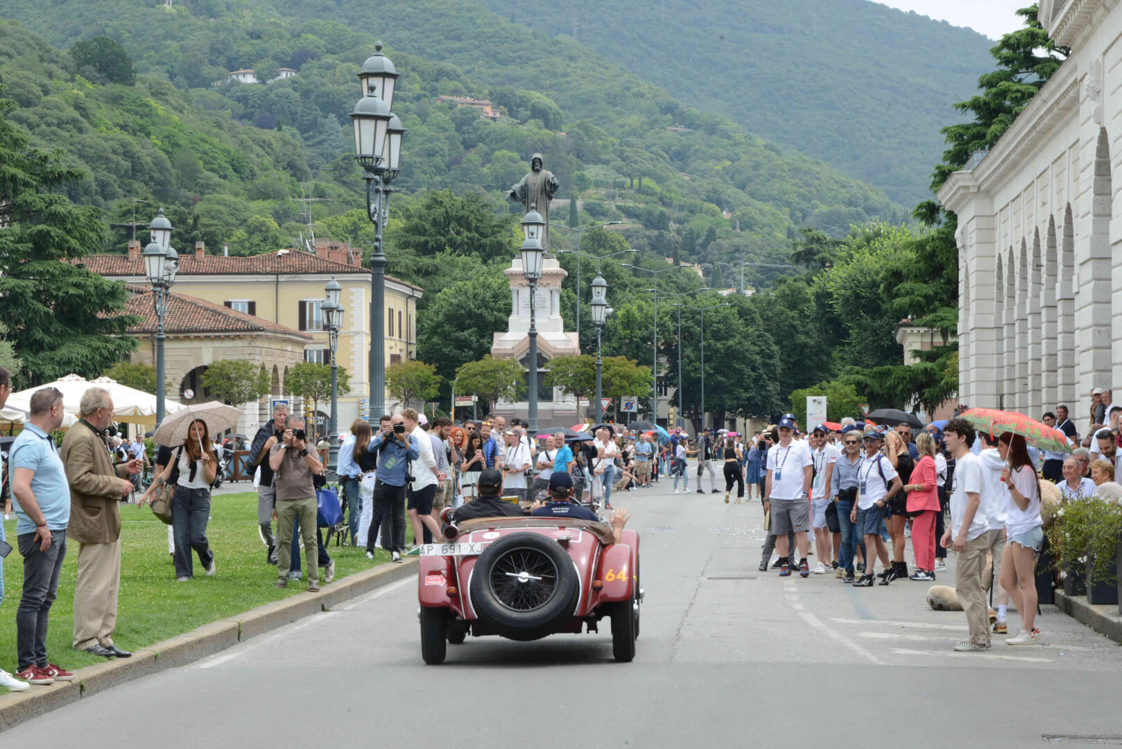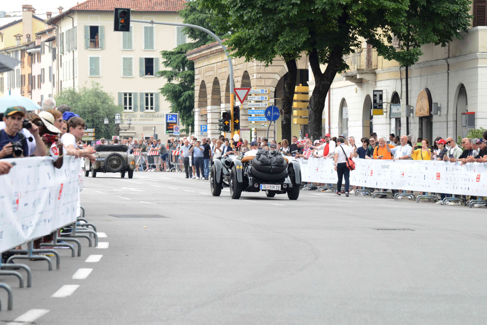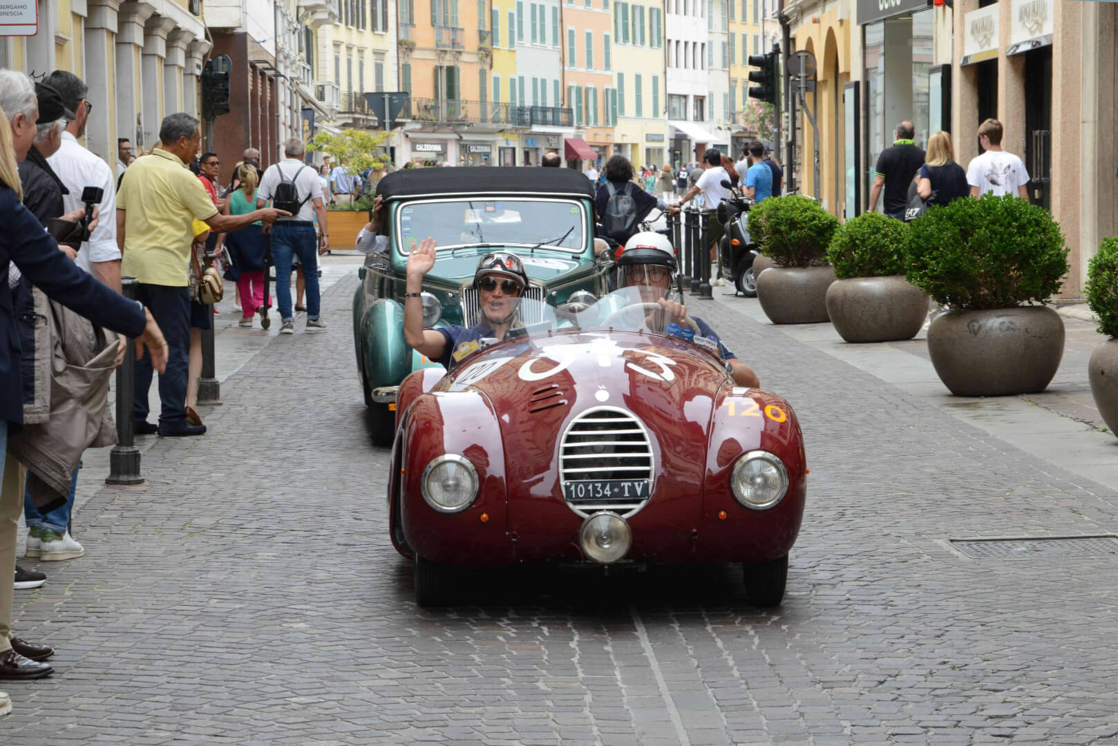 È partita la 41esima edizione della Mille Miglia. Dopo lo spettacolo delle Frecce tricolori, le auto in gara sono partite dalla pedana di Viale Venezia per poi proseguire verso Desenzano (14.05), Sirmione (14.20), Verona (15.20), Bovolone (16.10), Ferrara (17.50), Lugo (19.15), Forlì (20.45) e Cervia-Milano Marittima (21.30), dove finirà la prima tappa.