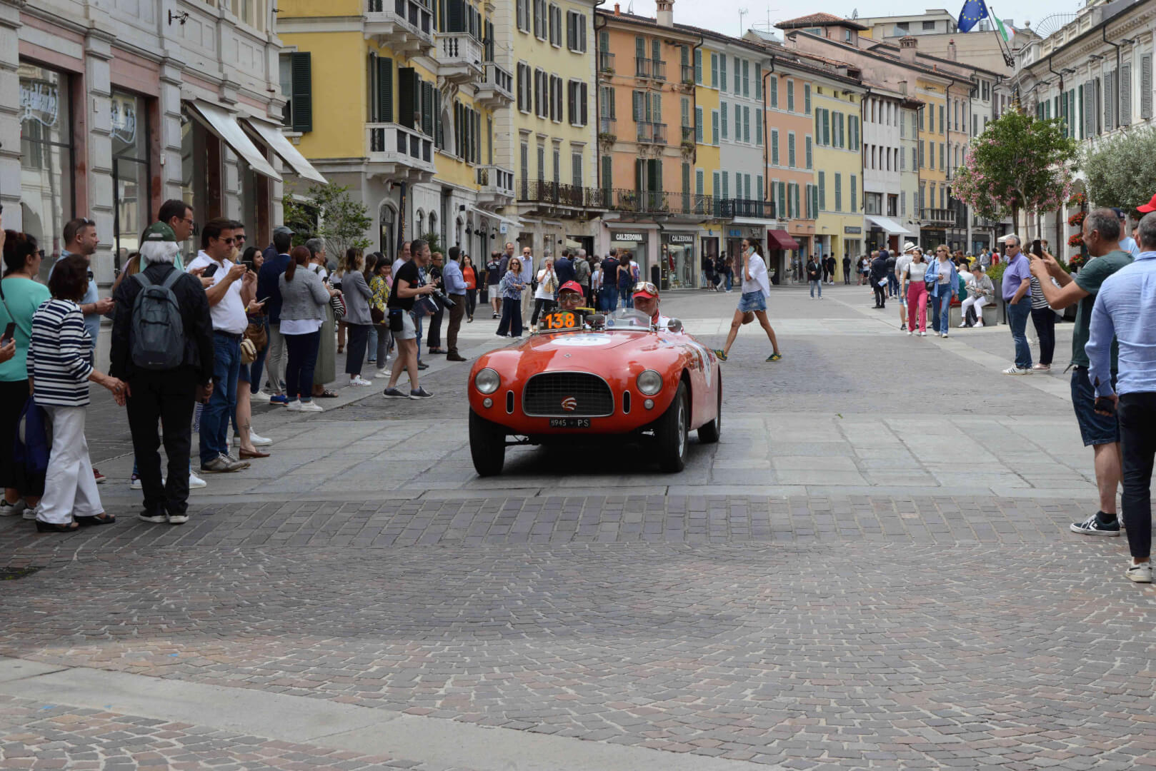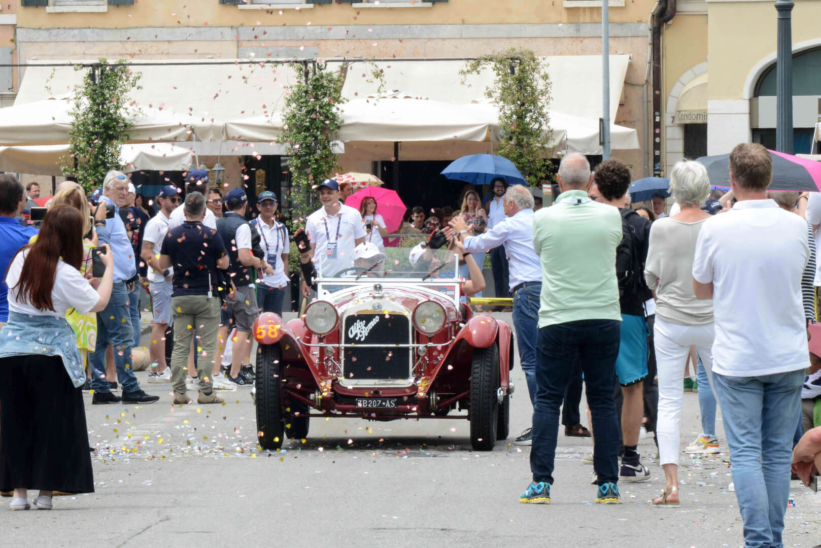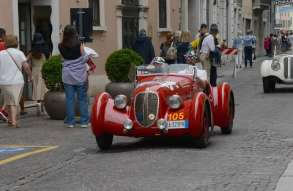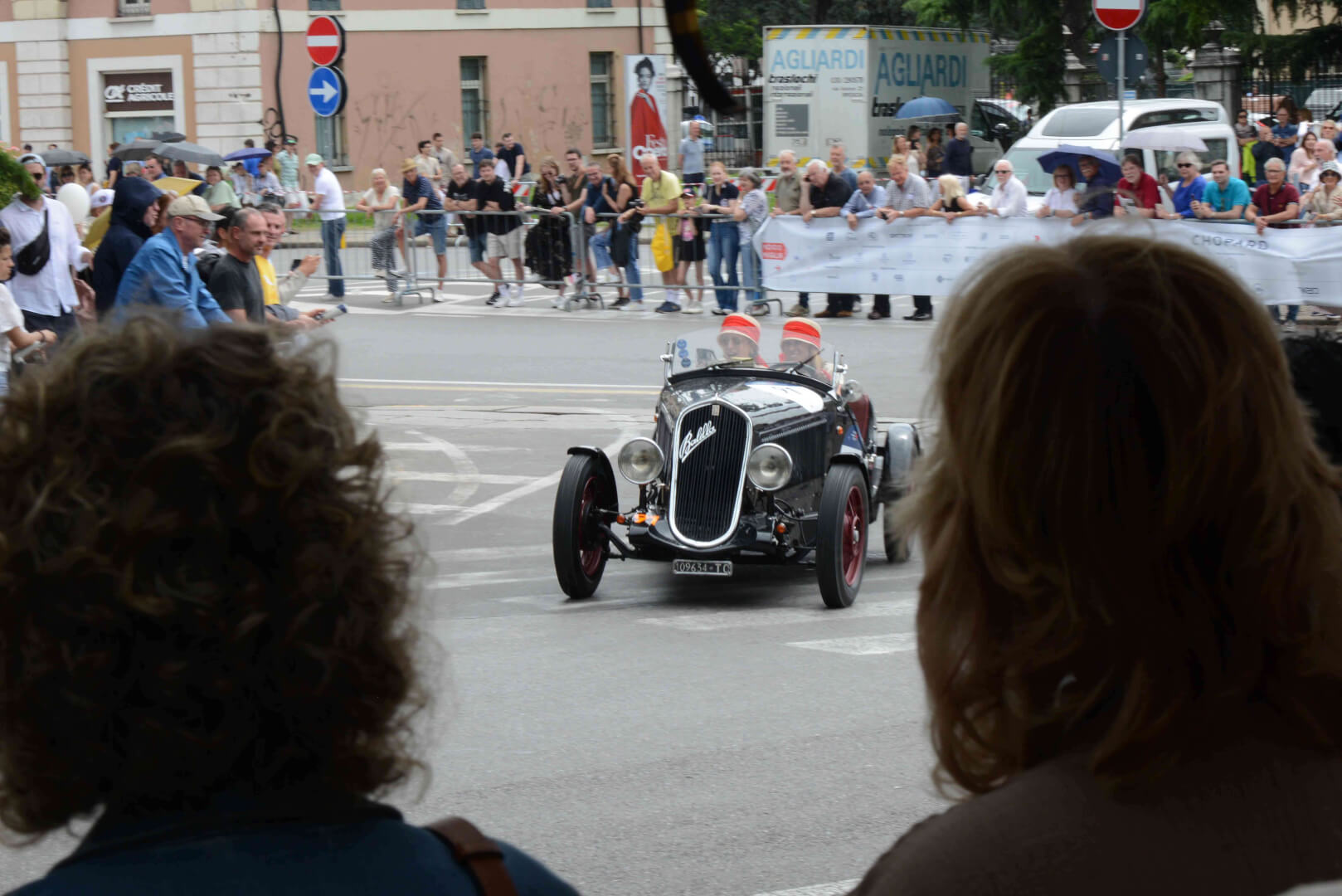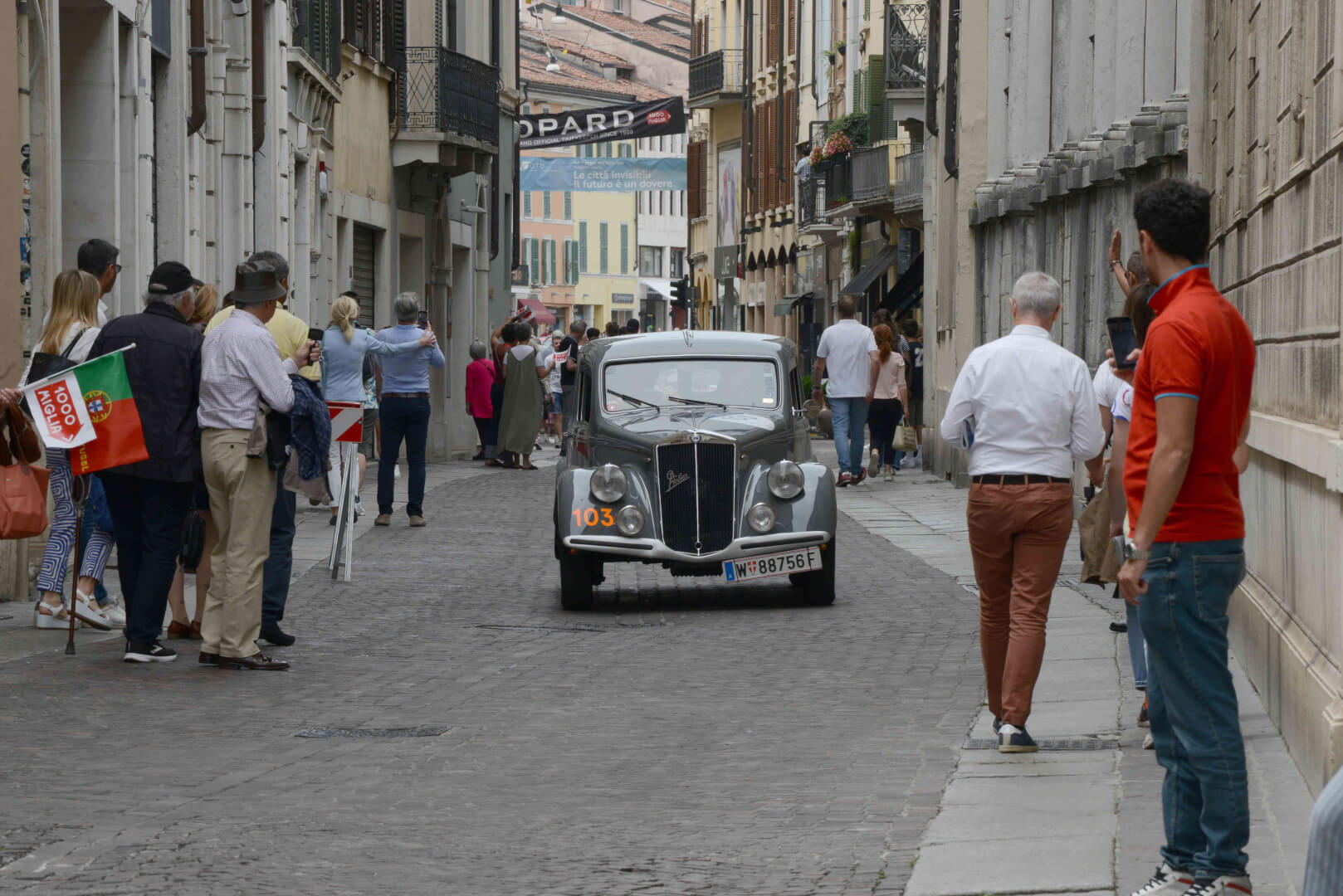 È partita la 41esima edizione della Mille Miglia. Dopo lo spettacolo delle Frecce tricolori, le auto in gara sono partite dalla pedana di Viale Venezia per poi proseguire verso Desenzano (14.05), Sirmione (14.20), Verona (15.20), Bovolone (16.10), Ferrara (17.50), Lugo (19.15), Forlì (20.45) e Cervia-Milano Marittima (21.30), dove finirà la prima tappa.