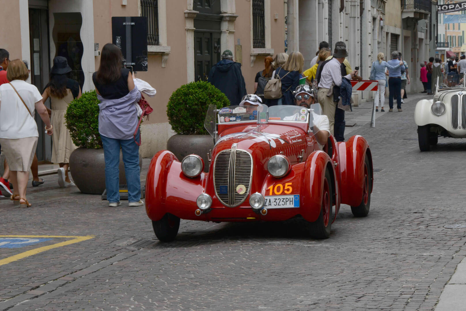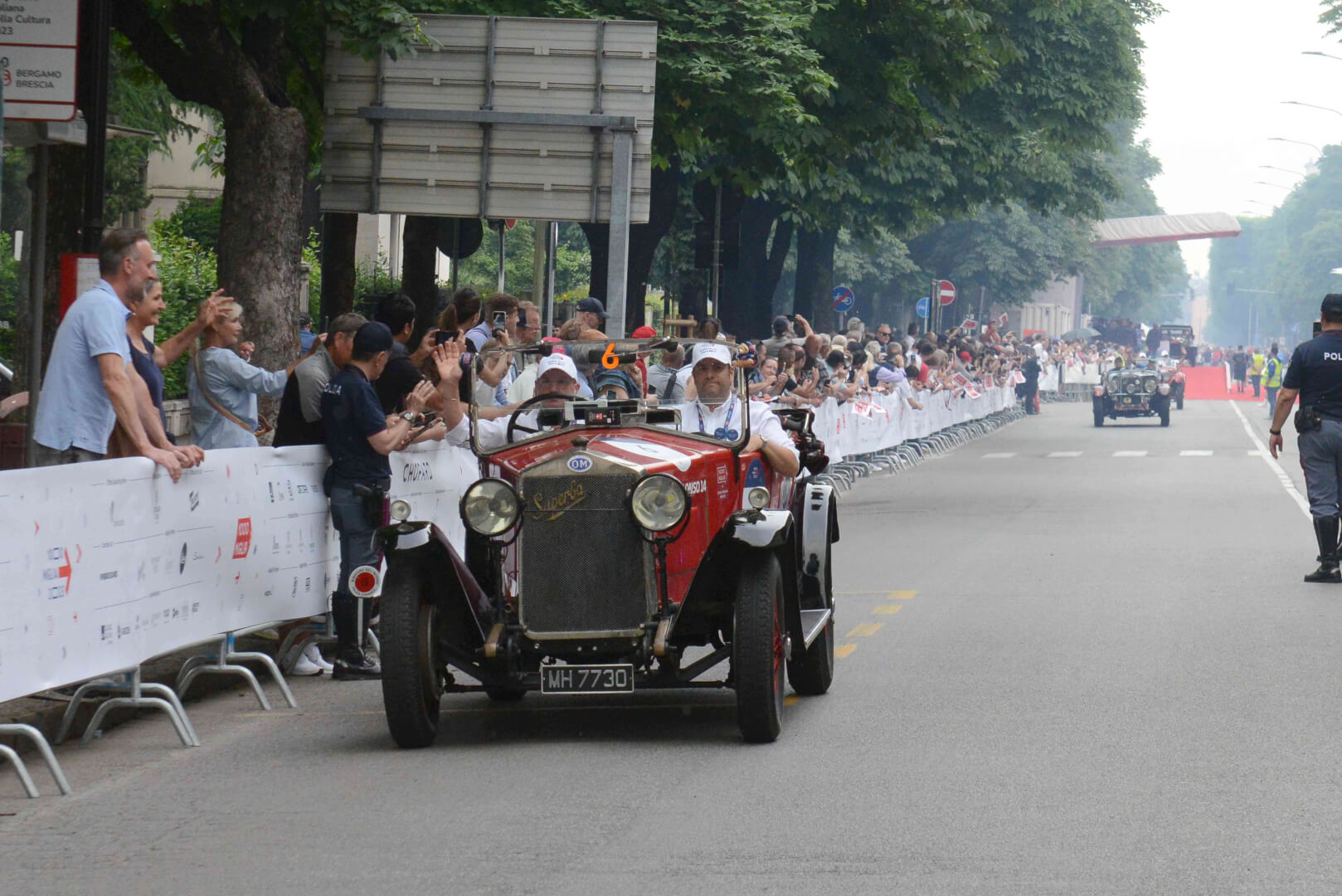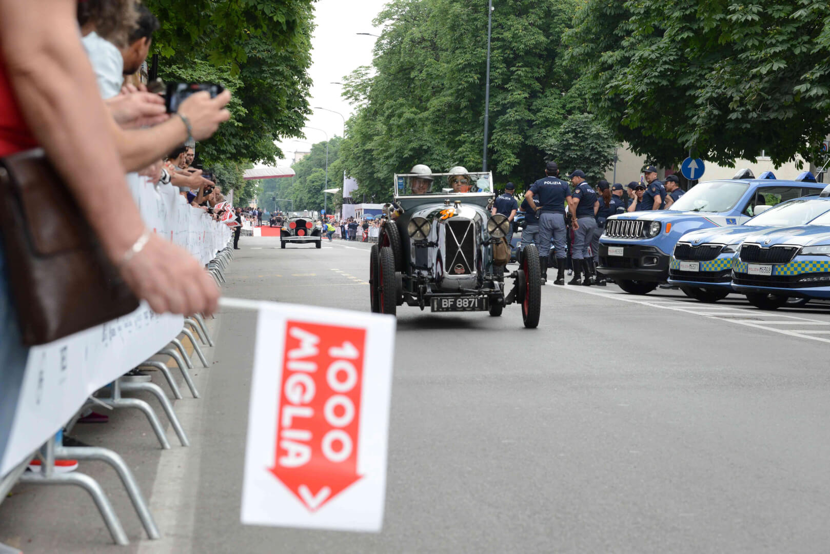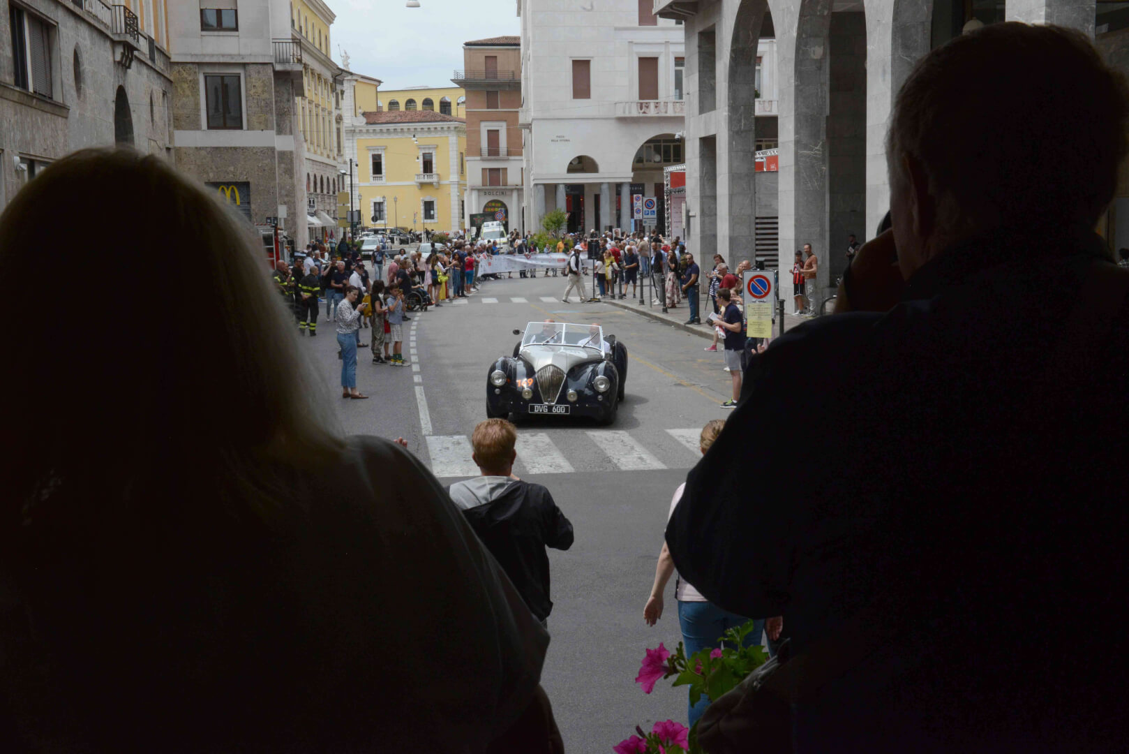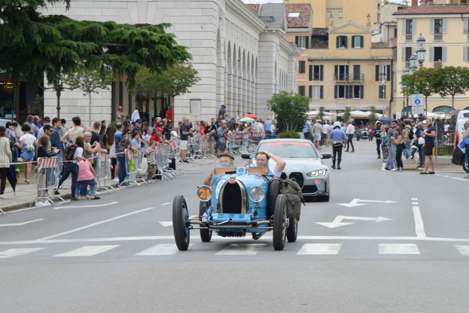 È partita la 41esima edizione della Mille Miglia. Dopo lo spettacolo delle Frecce tricolori, le auto in gara sono partite dalla pedana di Viale Venezia per poi proseguire verso Desenzano (14.05), Sirmione (14.20), Verona (15.20), Bovolone (16.10), Ferrara (17.50), Lugo (19.15), Forlì (20.45) e Cervia-Milano Marittima (21.30), dove finirà la prima tappa.