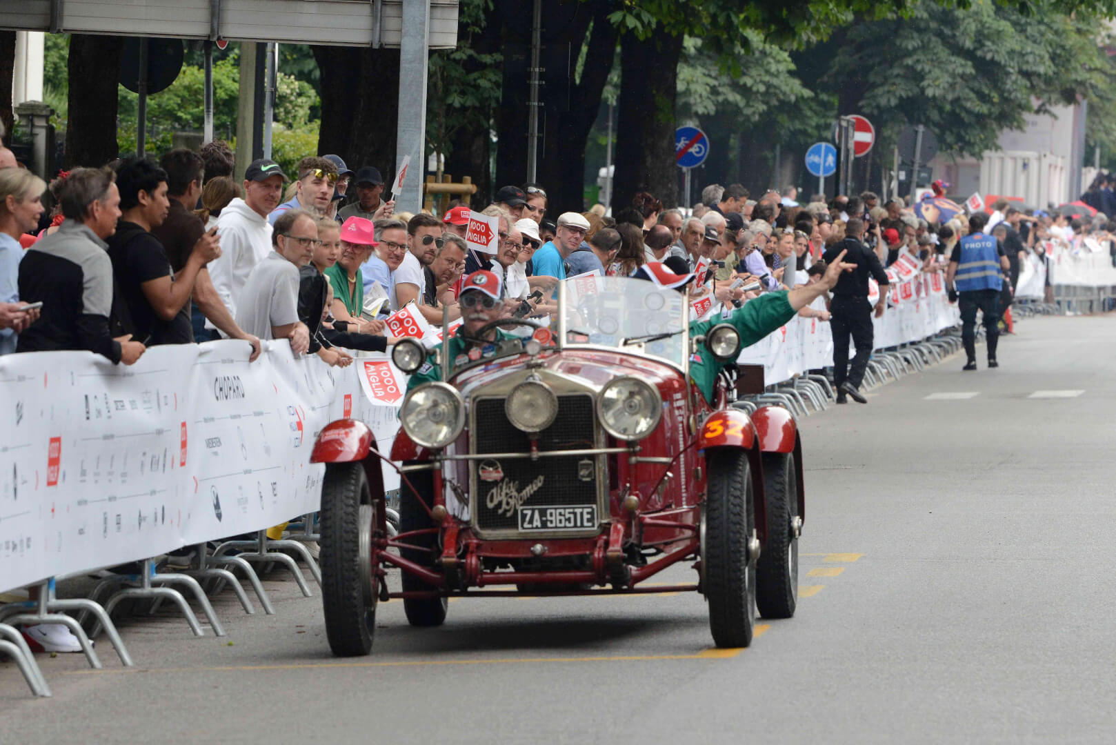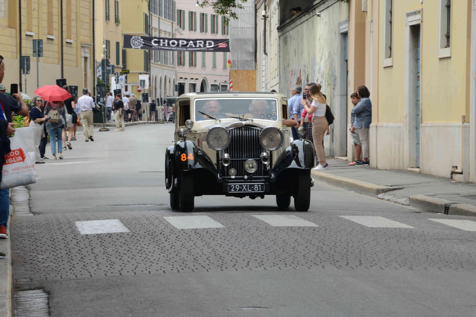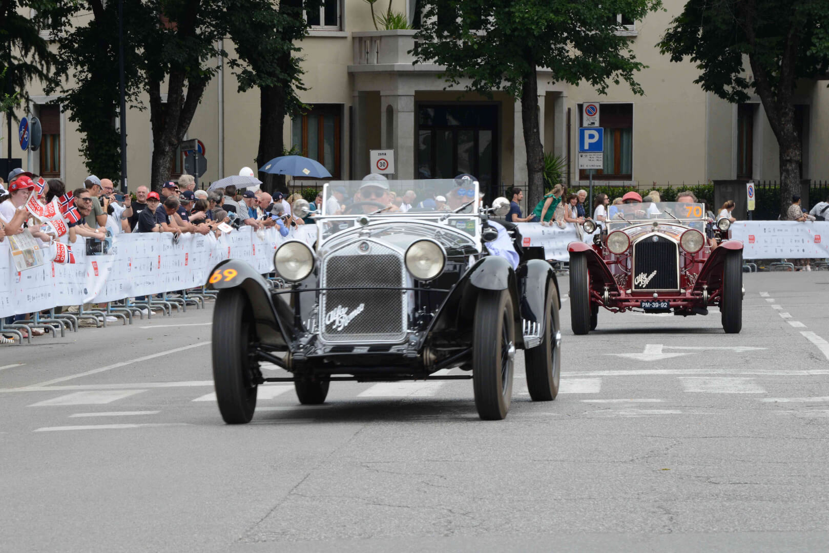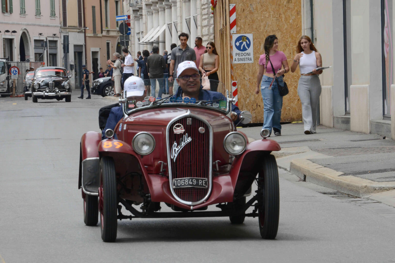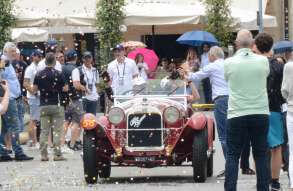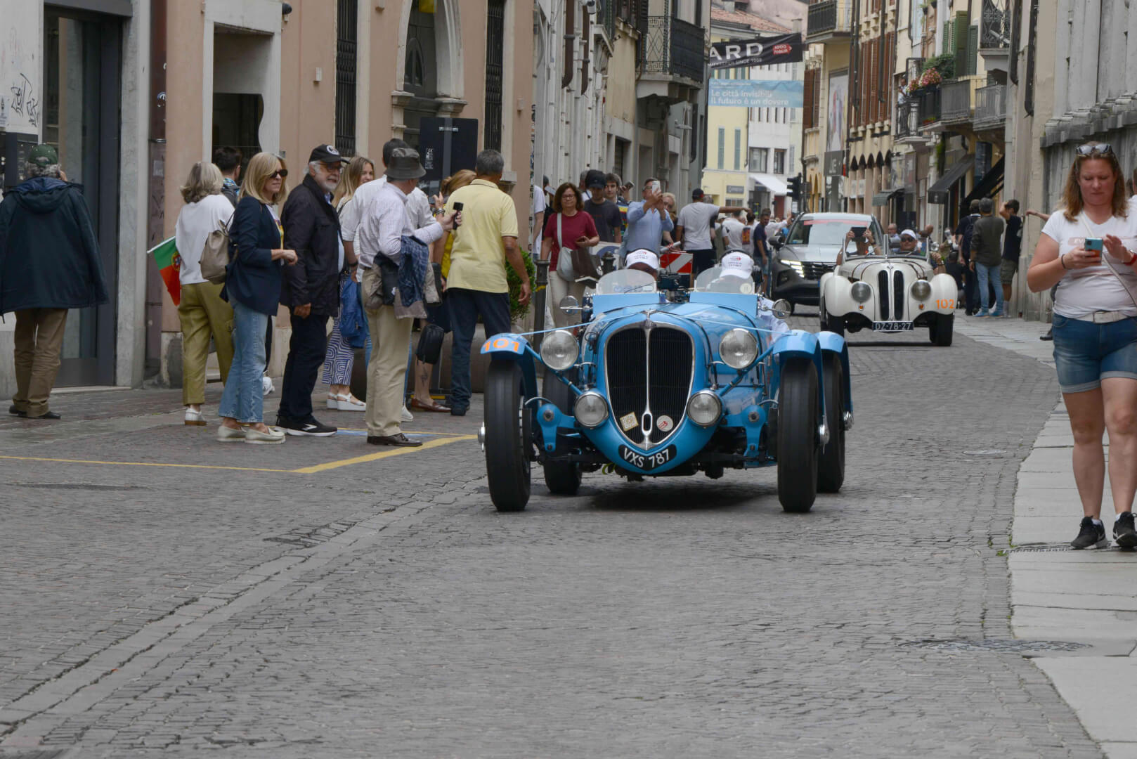 È partita la 41esima edizione della Mille Miglia. Dopo lo spettacolo delle Frecce tricolori, le auto in gara sono partite dalla pedana di Viale Venezia per poi proseguire verso Desenzano (14.05), Sirmione (14.20), Verona (15.20), Bovolone (16.10), Ferrara (17.50), Lugo (19.15), Forlì (20.45) e Cervia-Milano Marittima (21.30), dove finirà la prima tappa.