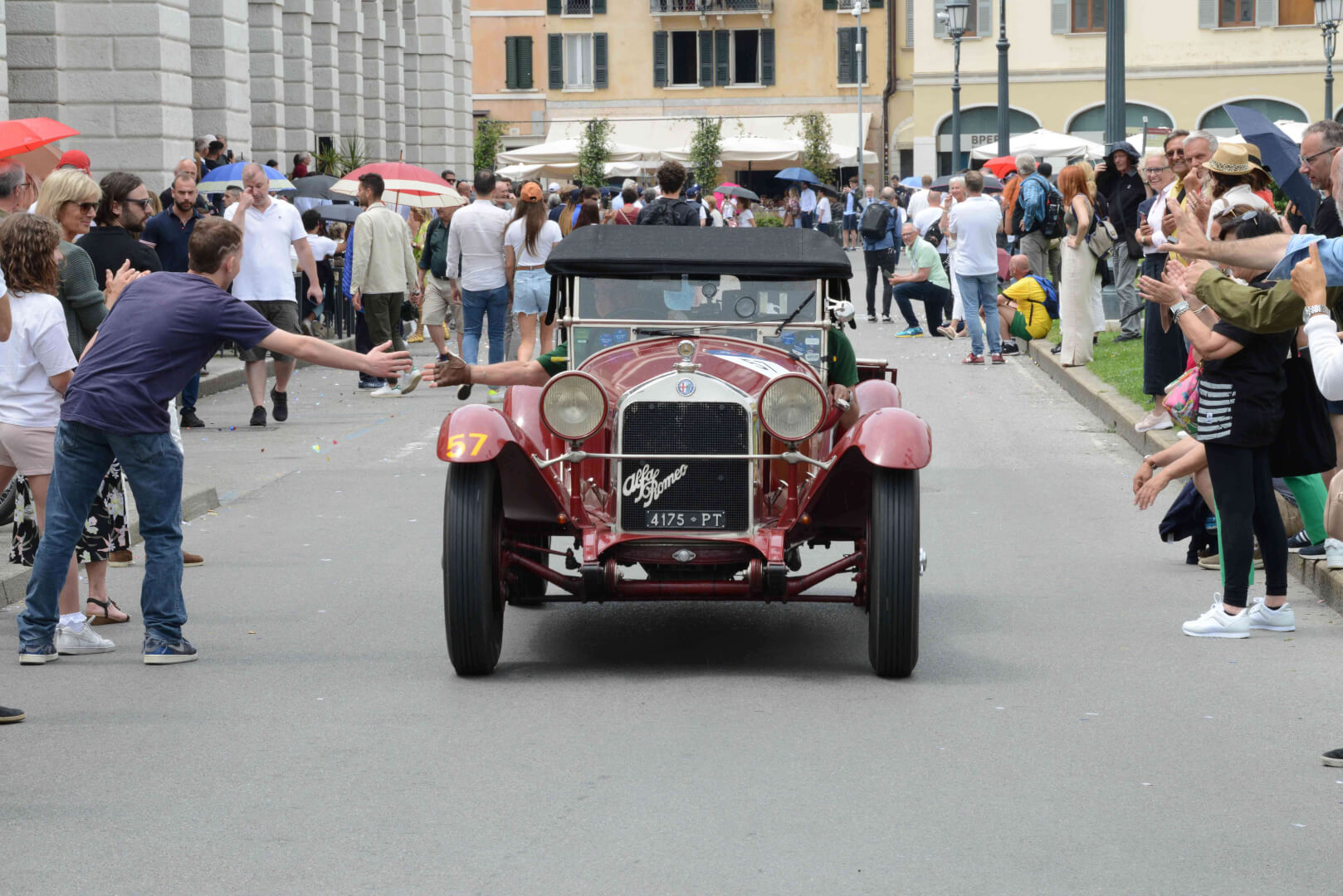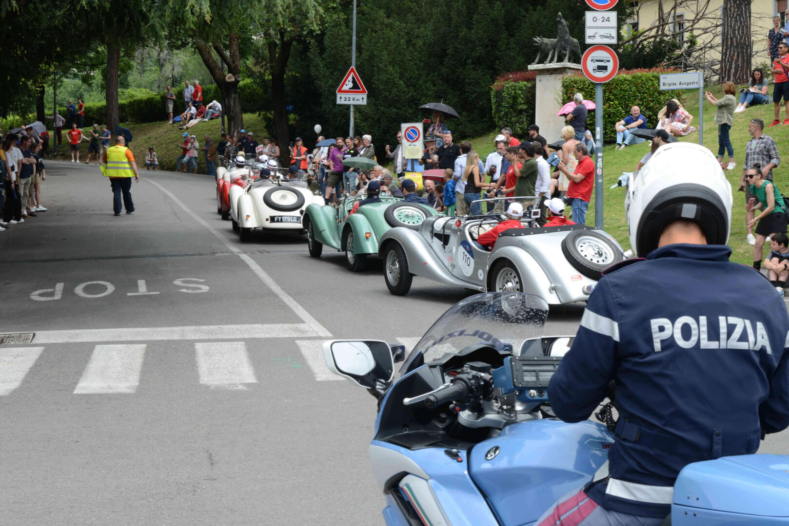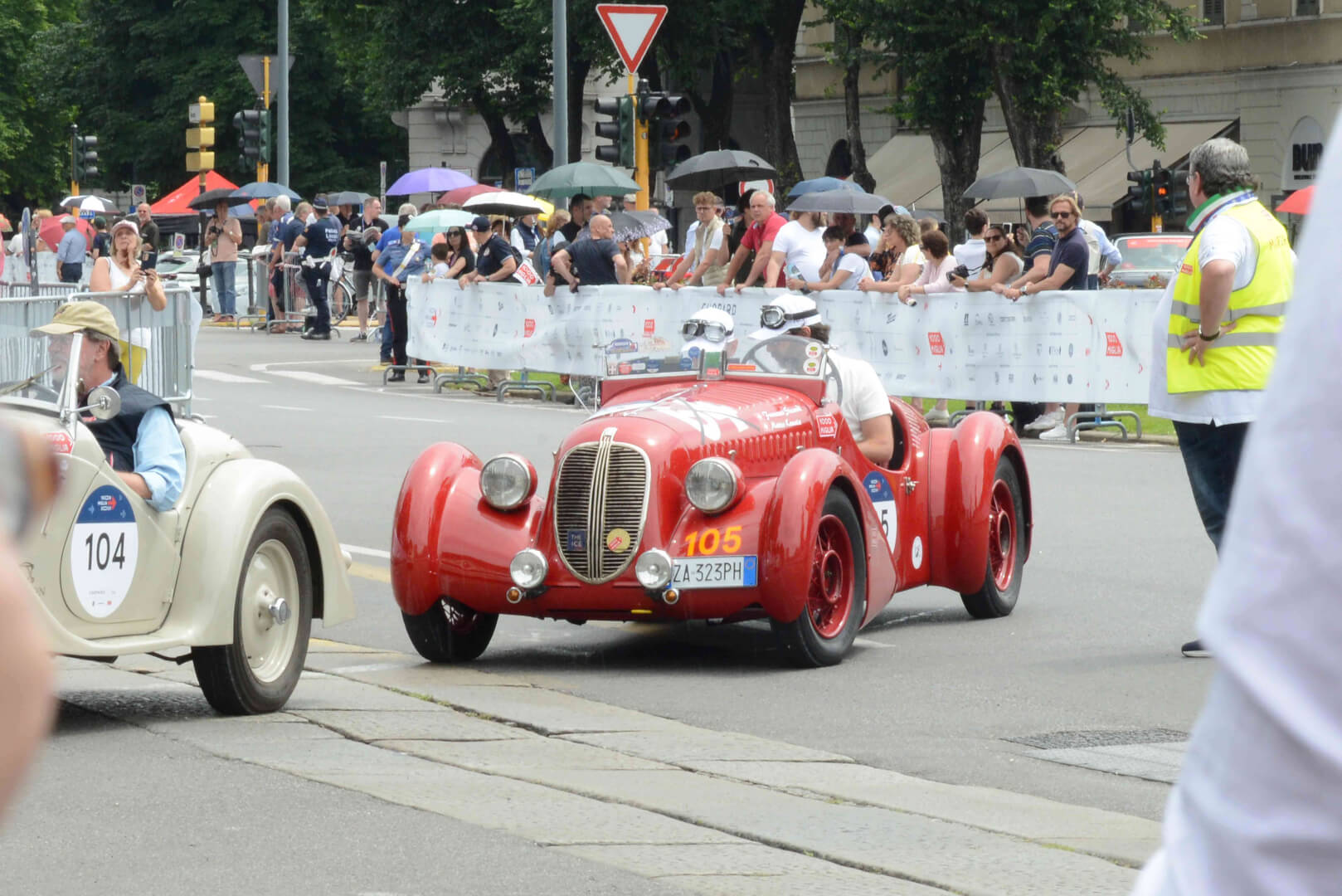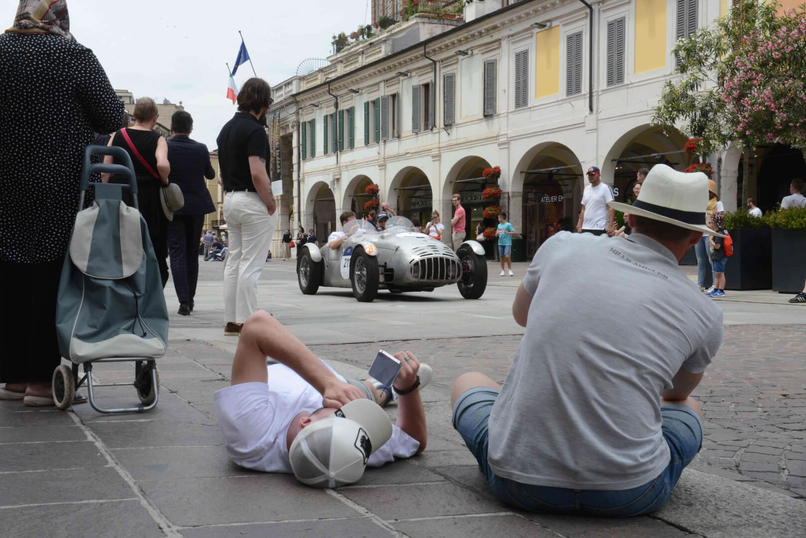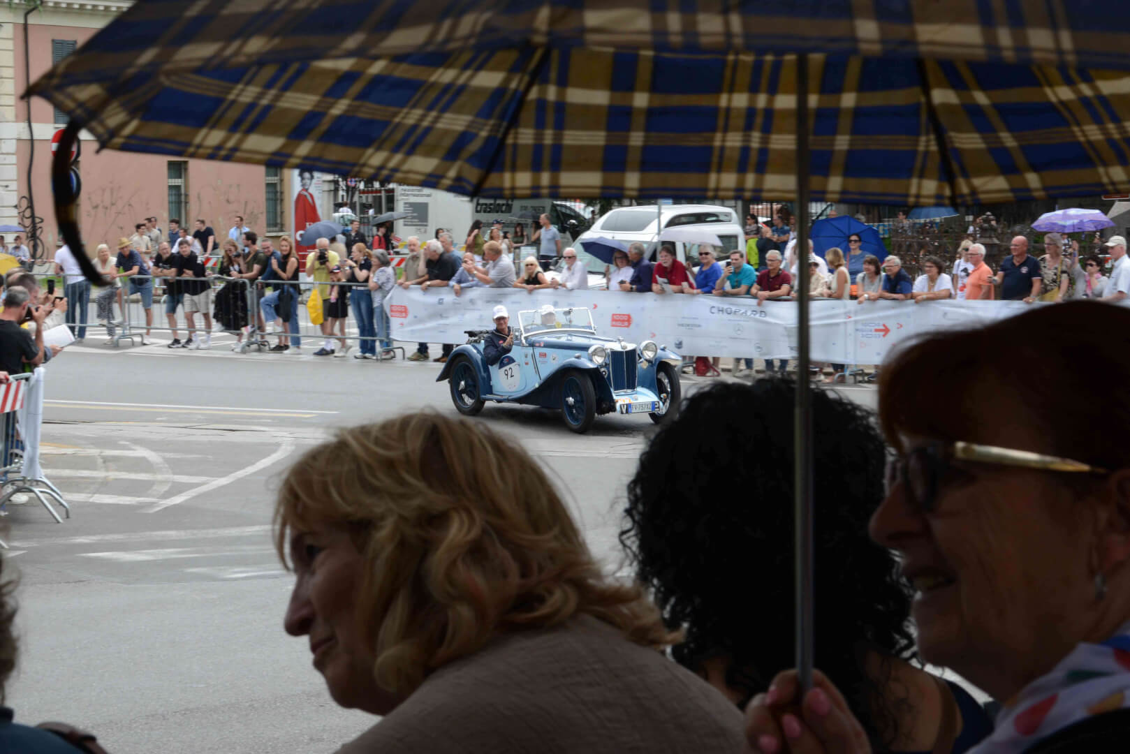 È partita la 41esima edizione della Mille Miglia. Dopo lo spettacolo delle Frecce tricolori, le auto in gara sono partite dalla pedana di Viale Venezia per poi proseguire verso Desenzano (14.05), Sirmione (14.20), Verona (15.20), Bovolone (16.10), Ferrara (17.50), Lugo (19.15), Forlì (20.45) e Cervia-Milano Marittima (21.30), dove finirà la prima tappa.