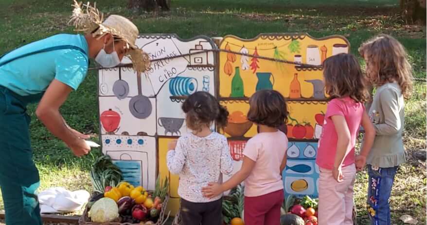 Accanto alle attività di preparazione del terreno, semina, cura e raccolta delle piantine, i piccoli partecipanti (6-12 anni) vengono coinvolti in giochi interattivi per rivalutare elementi altrimenti considerati scarti di nessun valore quali, ad esempio, le foglie delle zucchine in cottura o gli avanzi di frutta e verdura per la preparazione del compost, imparando così l’importanza delle proprie azioni in ambito alimentare.