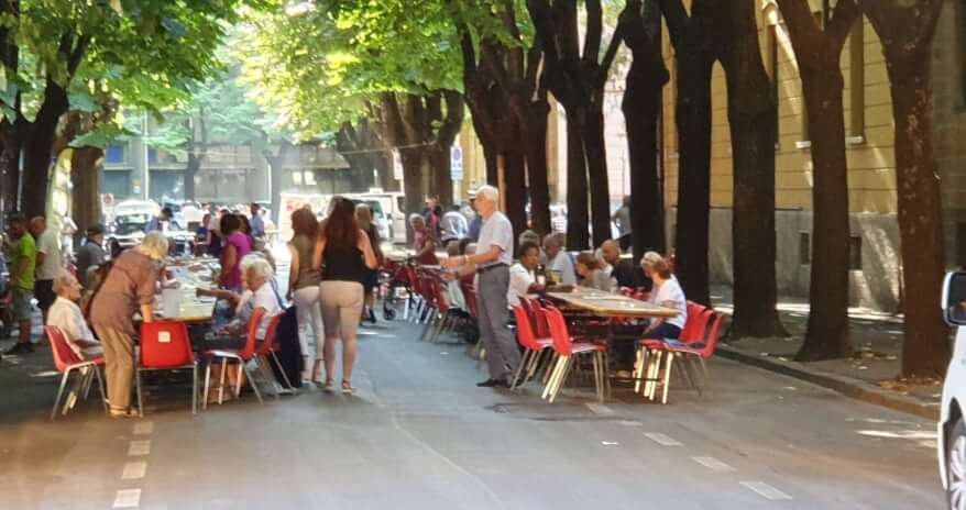 Il 10 luglio scorso è stata la volta del Quartiere Porta Milano in via Marchetti dove, in una serata dalla piacevole temperatura, spiccavano felici gli sguardi dei partecipanti. Lungo due file di tavoli risuonavano parole di amicizia, di convivialità e di partecipazione.