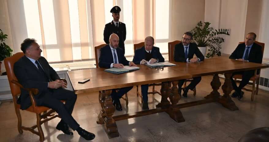 Alla firma erano inoltre presenti il Vicario del Questore, Francesco De Marco, e il Capo di Gabinetto, Carmelo Alba, nonché il Direttore dell’Amministrazione e Finanza della Fondazione, Stefano Iorio.