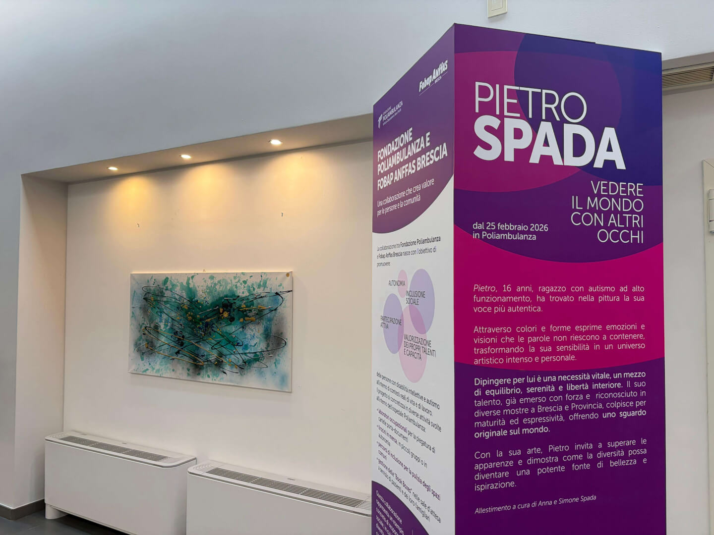 Previsto anche il contributo video di Don Marco Mori insieme con Pietro Spada, giovane artista che attraverso le sue opere trasmette un messaggio importante: la diversità è una ricchezza. L’alleanza strutturata tra Fondazione Poliambulanza e Fobap Anffas Brescia ha portato in dono anche la mostra personale di Pietro Spada dal titolo significativo “Vedere il mondo con altri occhi”. L’esposizione in Poliambulanza non è soltanto un evento culturale, ma è un racconto visivo di ciò che può nascere quando talento e inclusione trovano spazi di espressione. Le opere di Pietro sono in vendita e parte del ricavato sarà devoluto a Fobap Onlus.