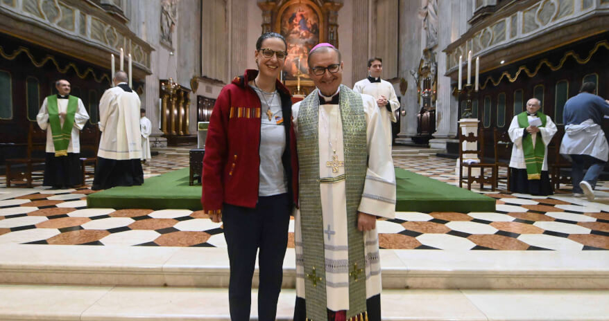 Venerdì 17 ottobre, in Cattedrale, il vescovo Pierantonio ha presieduto la veglia missionaria con la consegna del crocifisso a Flavia Gabanetti, originaria di Lumezzane e in partenza come laica fidei donum della Diocesi di Brescia in Perù, in servizio nella diocesi di Trujillo presso la comunità della Casa della Gioventù. Sono stati accolti anche i religiosi e le religiose di origine straniera e ora in servizio pastorale in Italia e nella nostra diocesi: a ciascuno di loro è stato consegnato il Vangelo. Infine, il Vescovo ha ascoltato le testimonianze dei 14 gruppi di giovani che, in estate, hanno vissuto un'esperienza di servizio missionario.