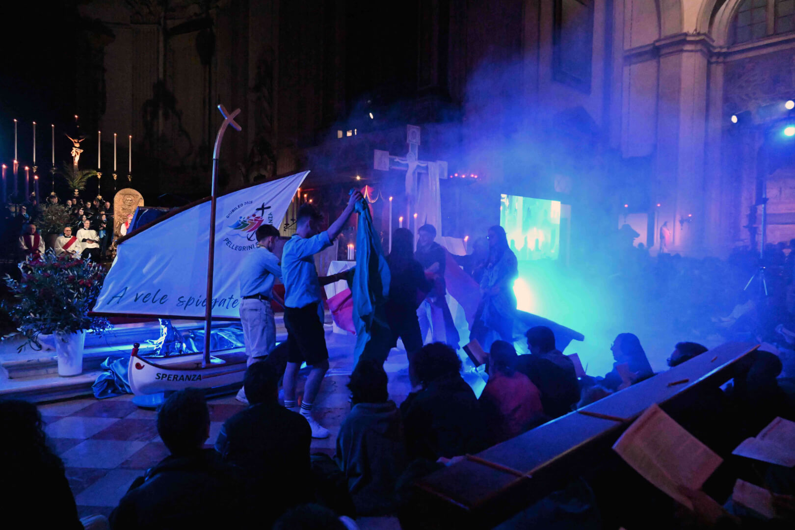 Cari giovani, questo è ciò che accade anche oggi. Questo mondo, che amiamo, è un mondo ferito, è un mondo che – come dicono i Vangeli – giace nelle tenebre e nell’ombra della morte, che facilmente si adatta alle logiche oscure e torbide. E quando questo accade, allora si odia la luce. Tutto ciò che si fa di nascosto deve rimanere nascosto e così il mondo si copre di una coltre oscura, dove il male regna incontrastato. Abbiamo qui un criterio evidente per riconoscere le opere malvagie: ciò che si fa di nascosto o alle spalle, ciò che non si vuol far sapere, ciò che è pensato, desiderato, progettato in segreto ha a che fare con l’azione perversa del male.