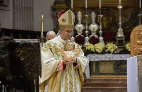 Lo abbiamo ascoltato nella prima lettura: “Il popolo che camminava nelle tenebre ha visto una grande luce; su coloro che abitavano in terra tenebrosa una luce rifulse. Hai moltiplicato la gioia, hai aumentato la letizia … Perché un bambino è nato per noi, ci è stato dato un figlio. Sulle sue spalle il potere e il suo nome sarà: Consigliere mirabile, Dio potente, Padre per sempre, Principe della pace”.