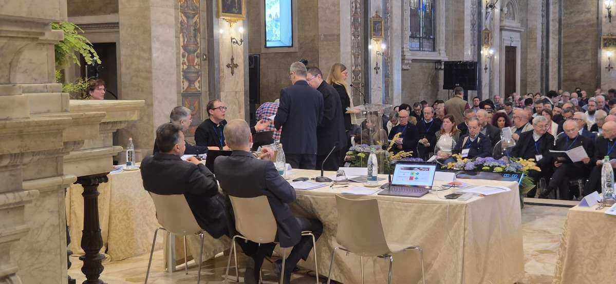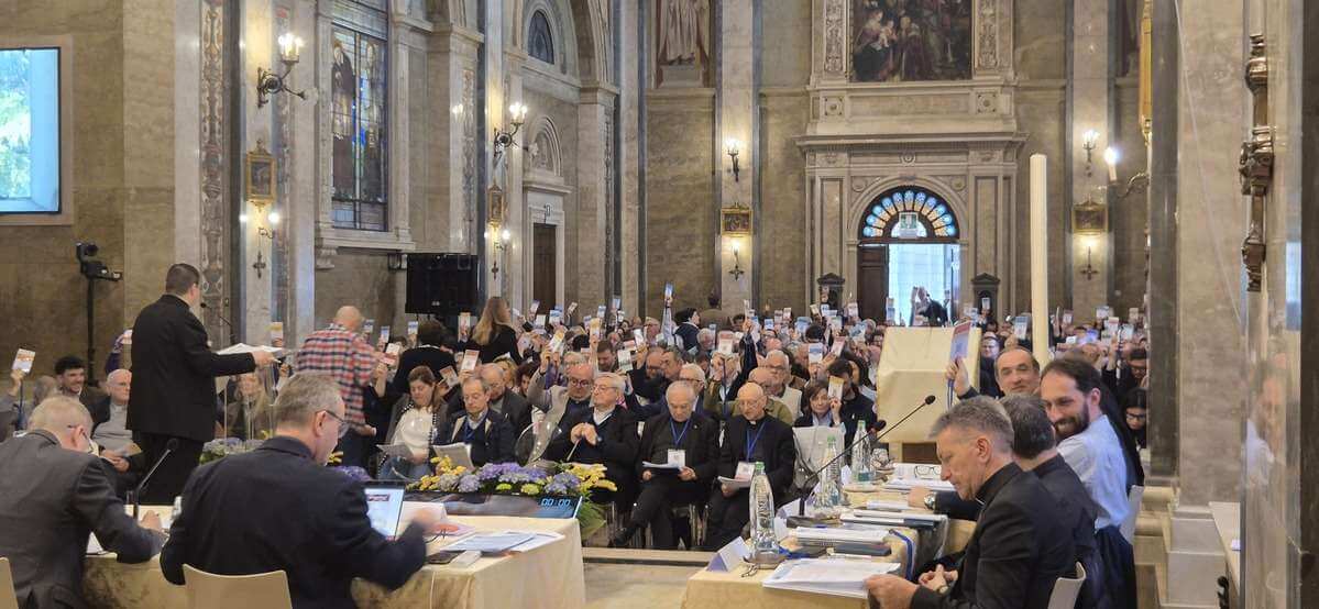 Le voci raccolte ieri sera, dopo un breve intervento procedurale da parte di don Tartari, si concentravano sulla quantità di emendamenti giunti alla segreteria del Convegno e che sarebbe stati votati stamattina. Alcuni parlavano di 50, altri di 400, altre voci, forse meglio informate, di 200 circa. “Nel buio della sala – per citare un film che abbiamo visto tutti, almeno una volta – si diceva che l’Italia stava vincendo 20 a 0 e che aveva segnato Zoff di testa su calcio d’angolo”. In apertura di mattinata, dopo le lodi, qualche precisazione che ha rasserenato i delegati. Gli emendamenti sono stati 218, alcuni accorpati, altri defalcati perché non strettamente attinenti alle proposizioni definite nella prima sessione: ne saranno quindi votati 60 con le rispettive 33 proposizioni. Si comincia con l’area dedicata a “Celebrare il giorno del Signore”. Il lavoro viene generalmente apprezzato, si invoca maggiore coraggio rispetto alla necessità di diminuire il numero delle Messe, si raccomanda attenzione a procedere per accumulo (molti suggerimenti interessanti ma bisognerebbe dire anche cosa si vuole alleggerire, non solo cosa si vuole aggiungere). Tutte le proposizioni passano con ampia (o amplissima maggioranza).