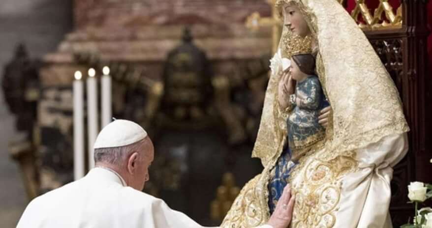 Santa Madre di Dio, mentre stavi sotto la croce, Gesù, vedendo il discepolo accanto a te, ti ha detto: «Ecco tuo figlio» (Gv 19,26): così ti ha affidato ciascuno di noi. Poi al discepolo, a ognuno di noi, ha detto: «Ecco tua madre» (v. 27). Madre, desideriamo adesso accoglierti nella nostra vita e nella nostra storia. In quest’ora l’umanità, sfinita e stravolta, sta sotto la croce con te. E ha bisogno di affidarsi a te, di consacrarsi a Cristo attraverso di te. Il popolo ucraino e il popolo russo, che ti venerano con amore, ricorrono a te, mentre il tuo Cuore palpita per loro e per tutti i popoli falcidiati dalla guerra, dalla fame, dall’ingiustizia e dalla miseria.