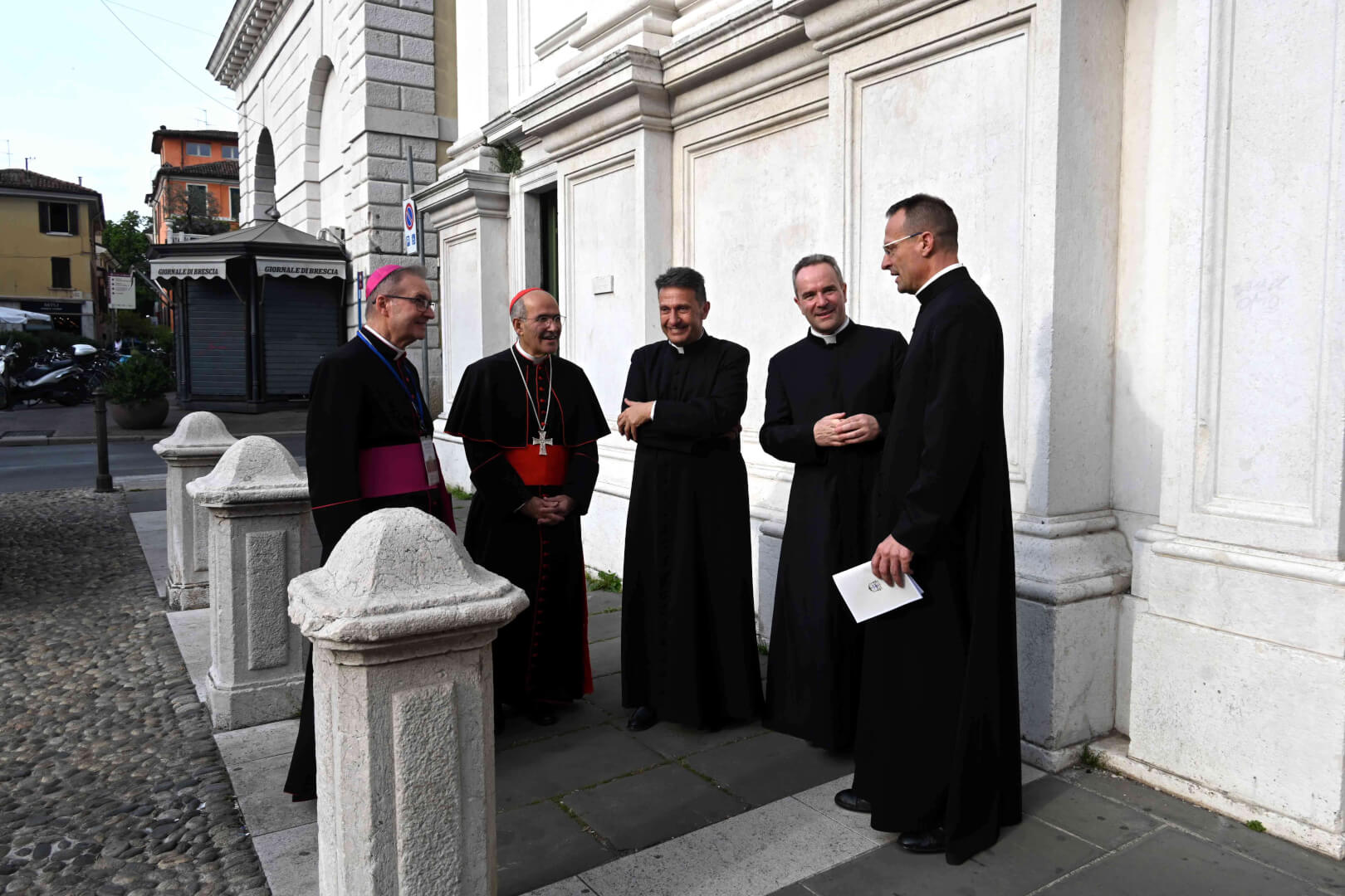 Ricordo le parole del vostro concittadino, San Paolo VI, rivolgendosi ai Bresciani: «è innegabile che la nostra società si sta cambiando radicalmente; pensieri, cultura, costumi, economia, vita sociale e anche sentimento ed espressione religiosa stanno evolvendosi. Come si deve trattare questo patrimonio di ieri rispetto all’oggi, rispetto al domani? Il Papa raccomanda loro di non trascurare tale problema, di non considerarlo un peso, ma una forza, una energia, un impegno, un dono che il Signore dà loro non perché si arrestino alla ricchezza goduta ed ereditata, ma perché la traducano in nuove forme, in nuove espressioni, come hanno già fatto i loro vecchi e originali per superare le difficoltà del loro tempo» (28 ottobre 1963).