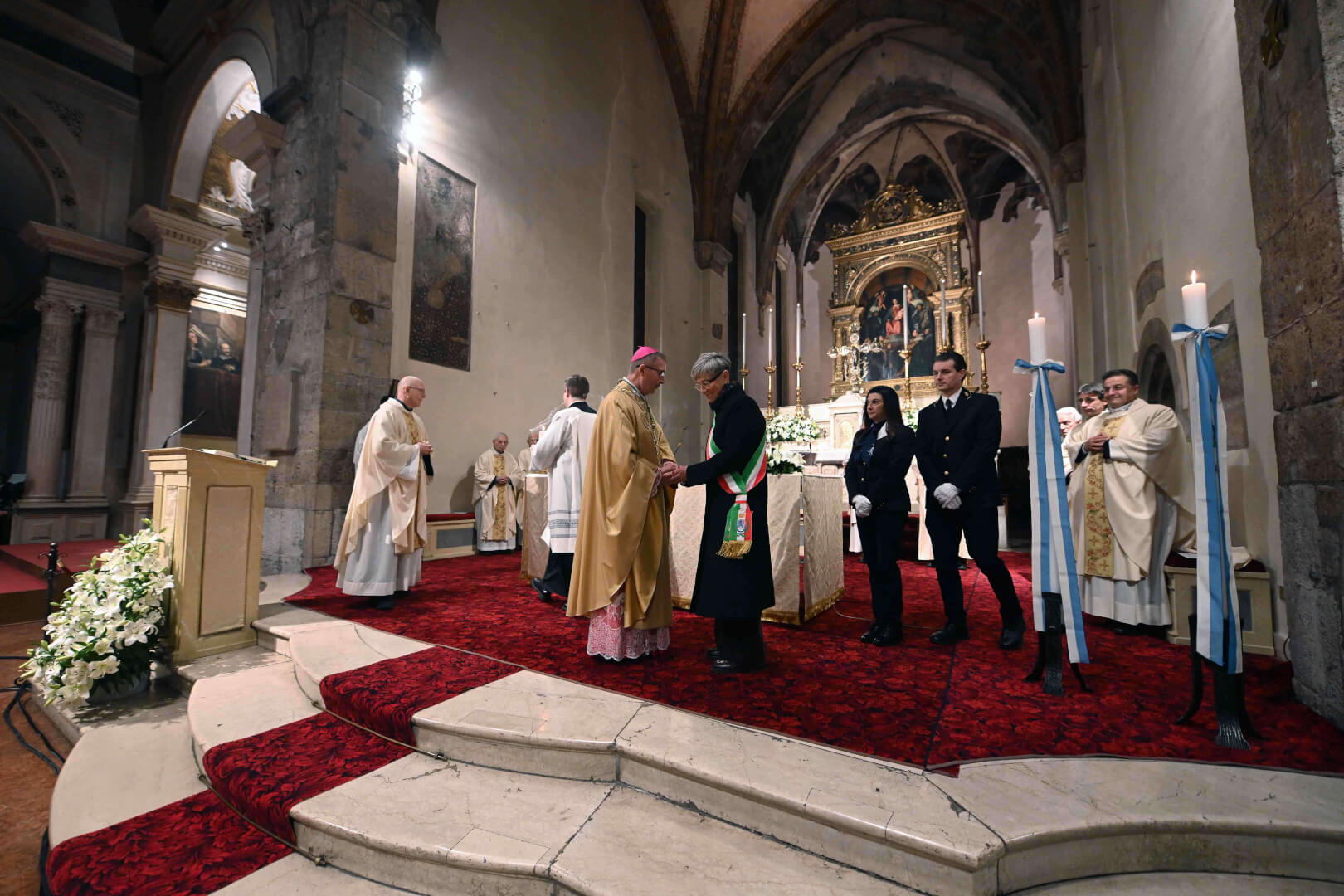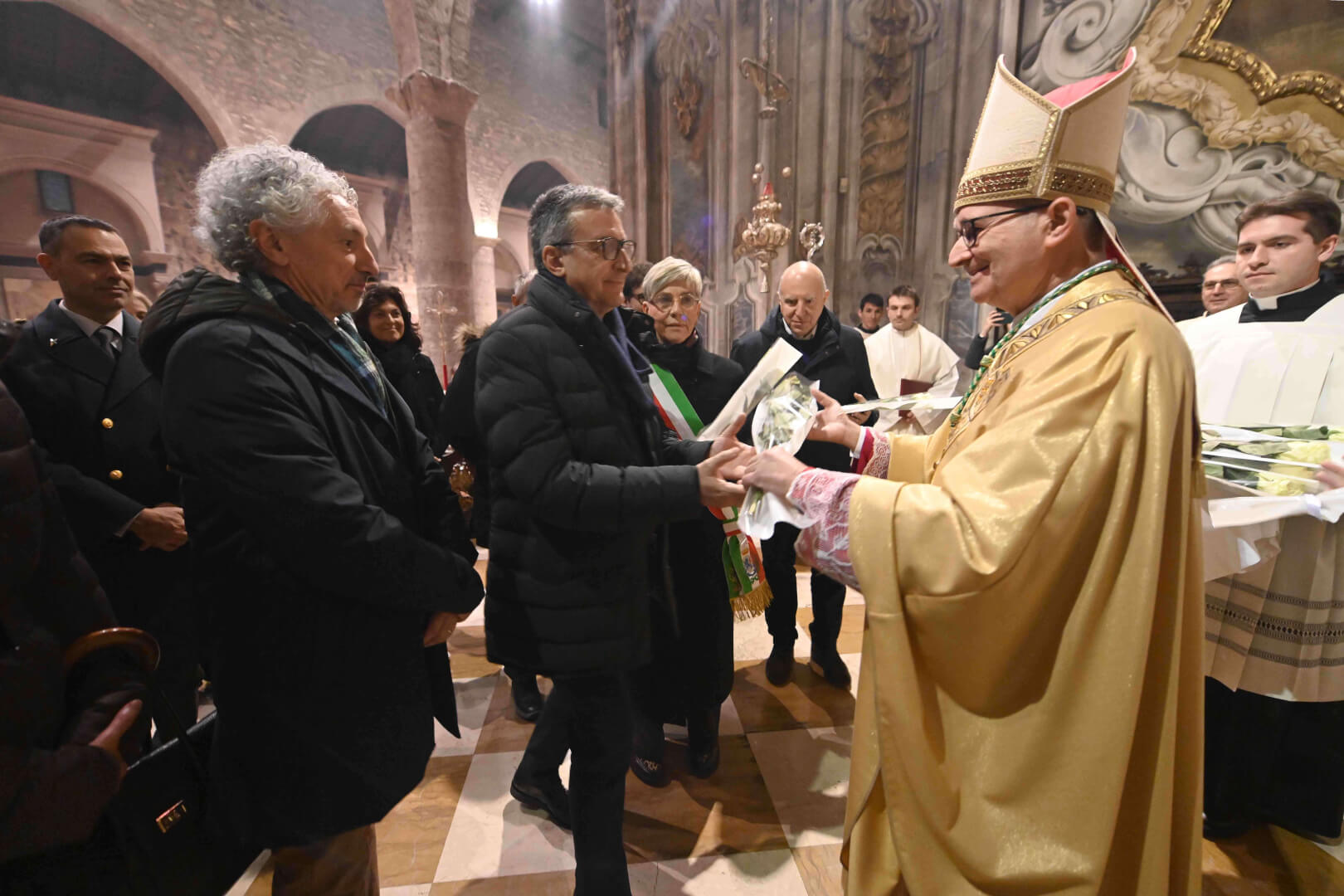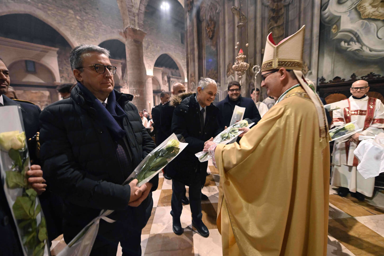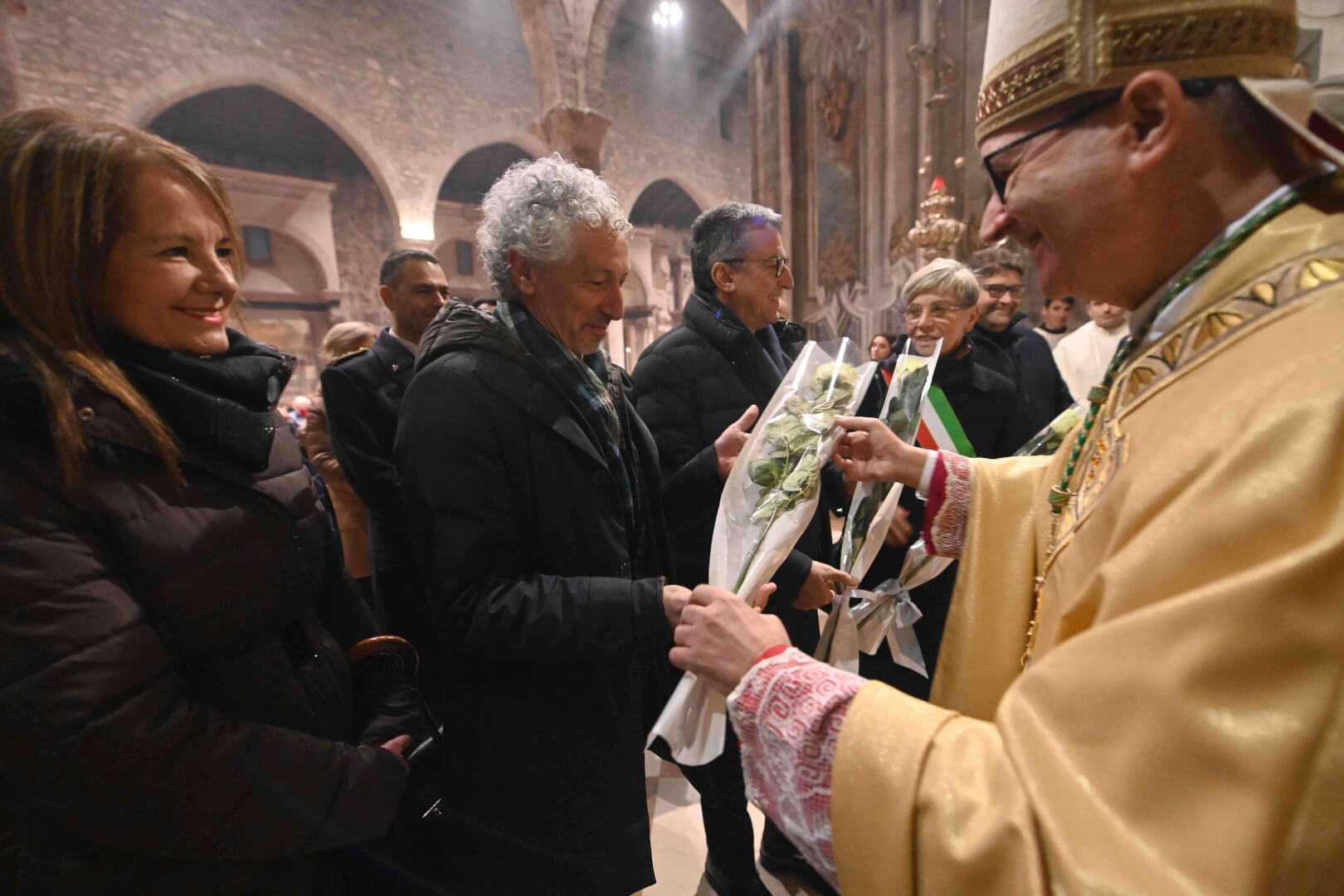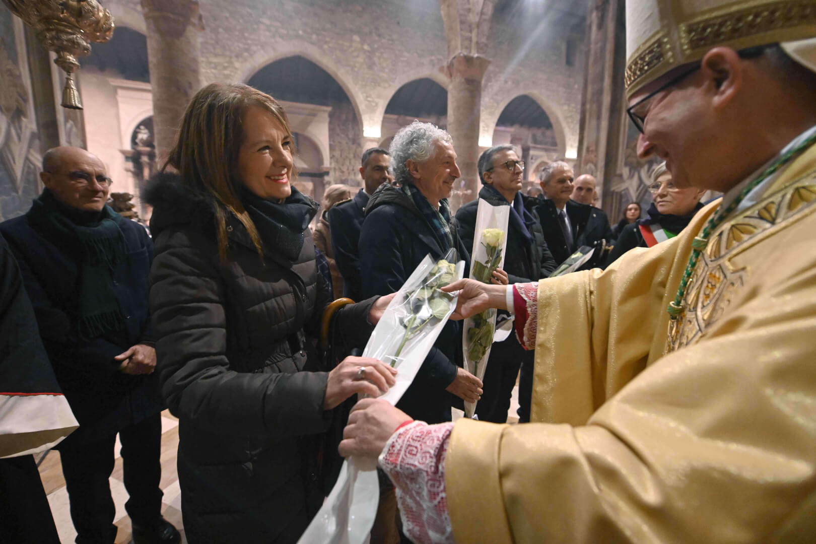 È questa anche l’occasione nella quale la comunità cristiana, attraverso il suo vescovo, rinnova volentieri l’impegno di cooperare al bene di questa città, offrendo il proprio contributo in dialogo rispettoso e costruttivo con quanti sono chiamati ad esercitare qui il grave compito del governo. Il gesto semplice ma suggestivo dello scambio dei ceri e delle rose vuole proprio esprimere una simile comune intenzione.