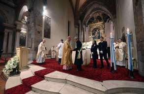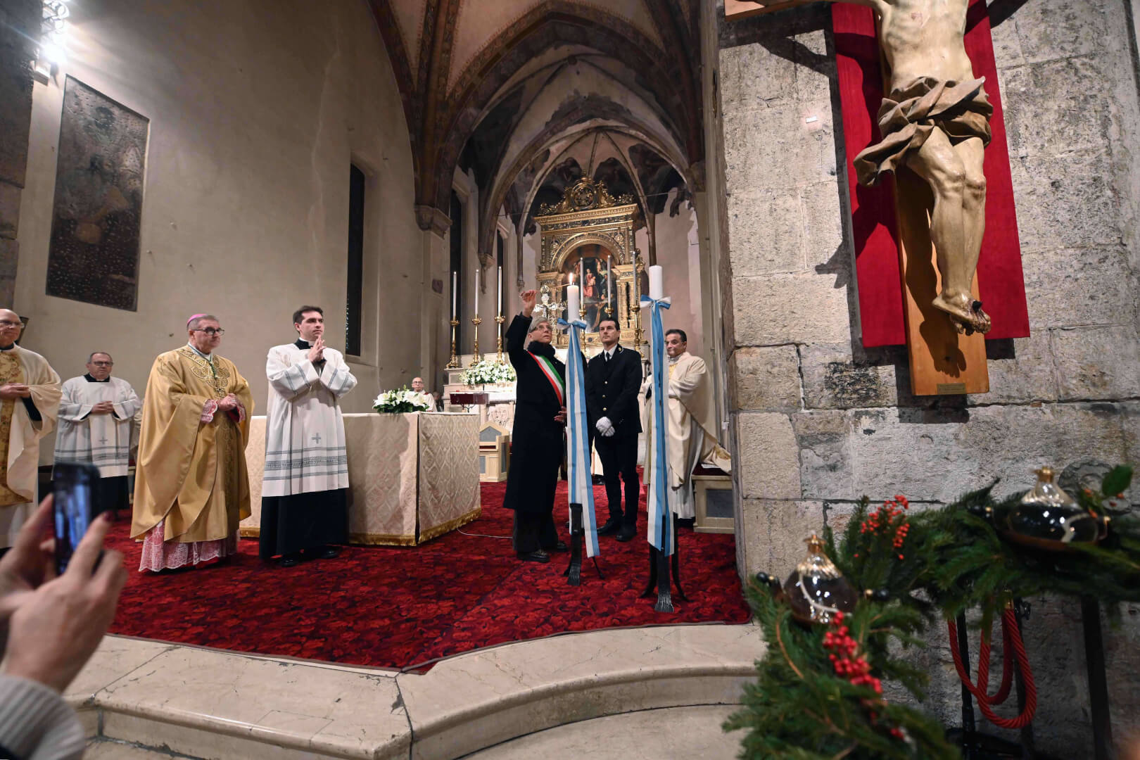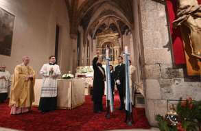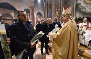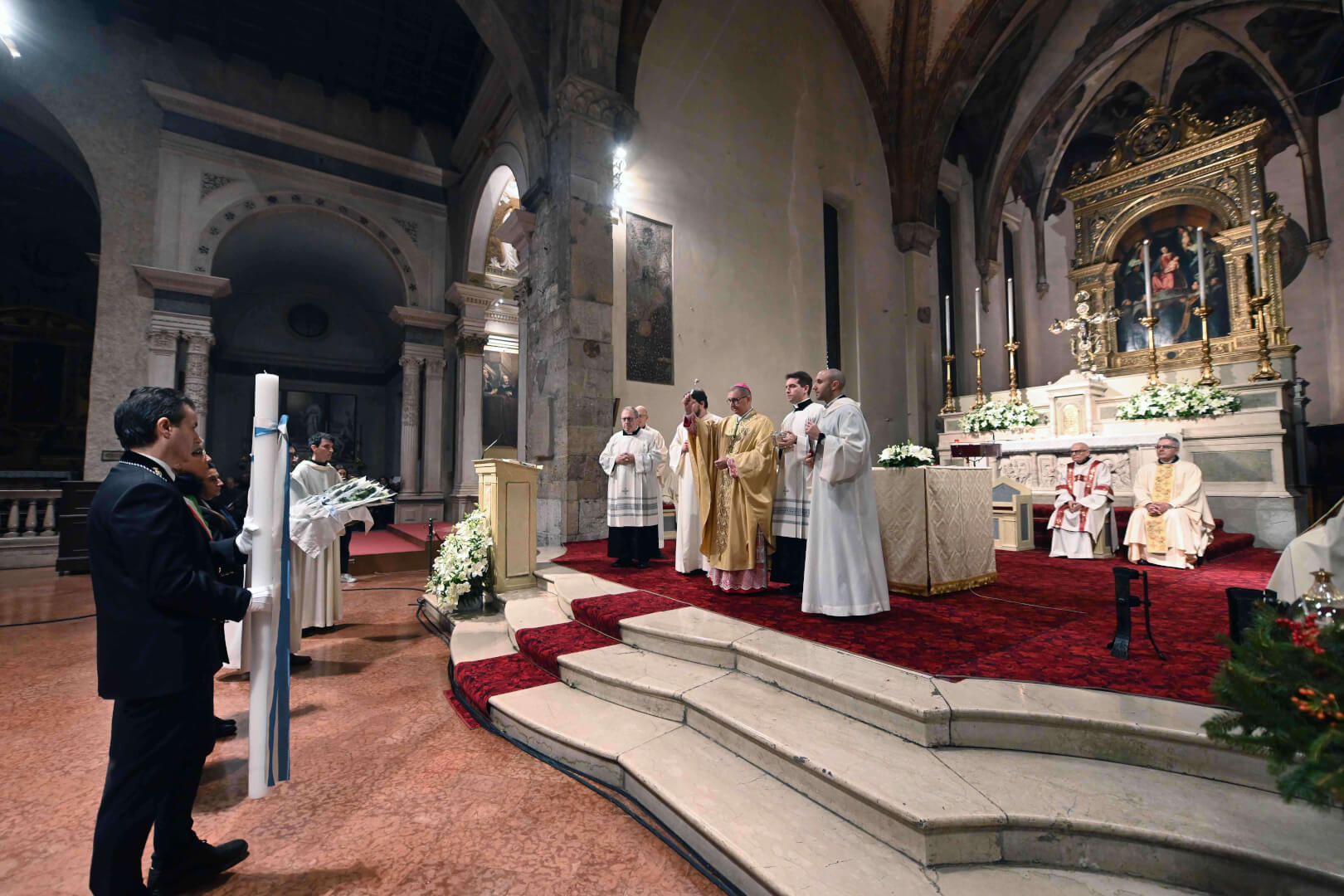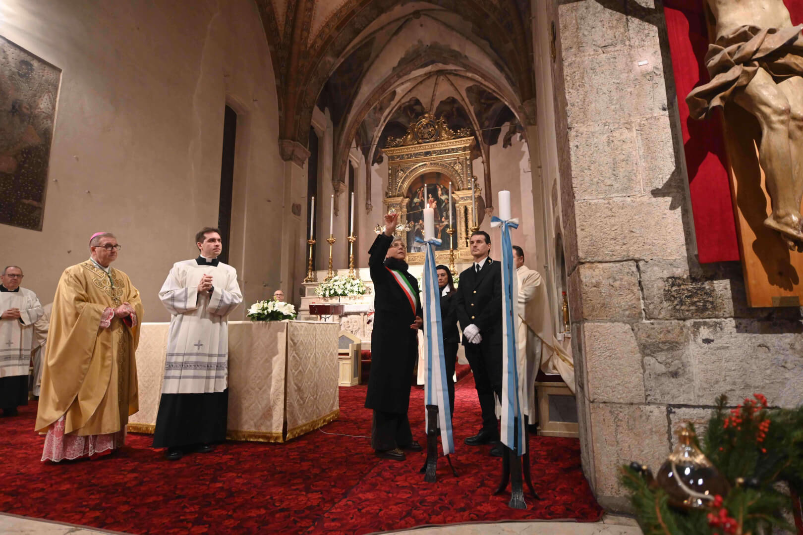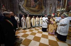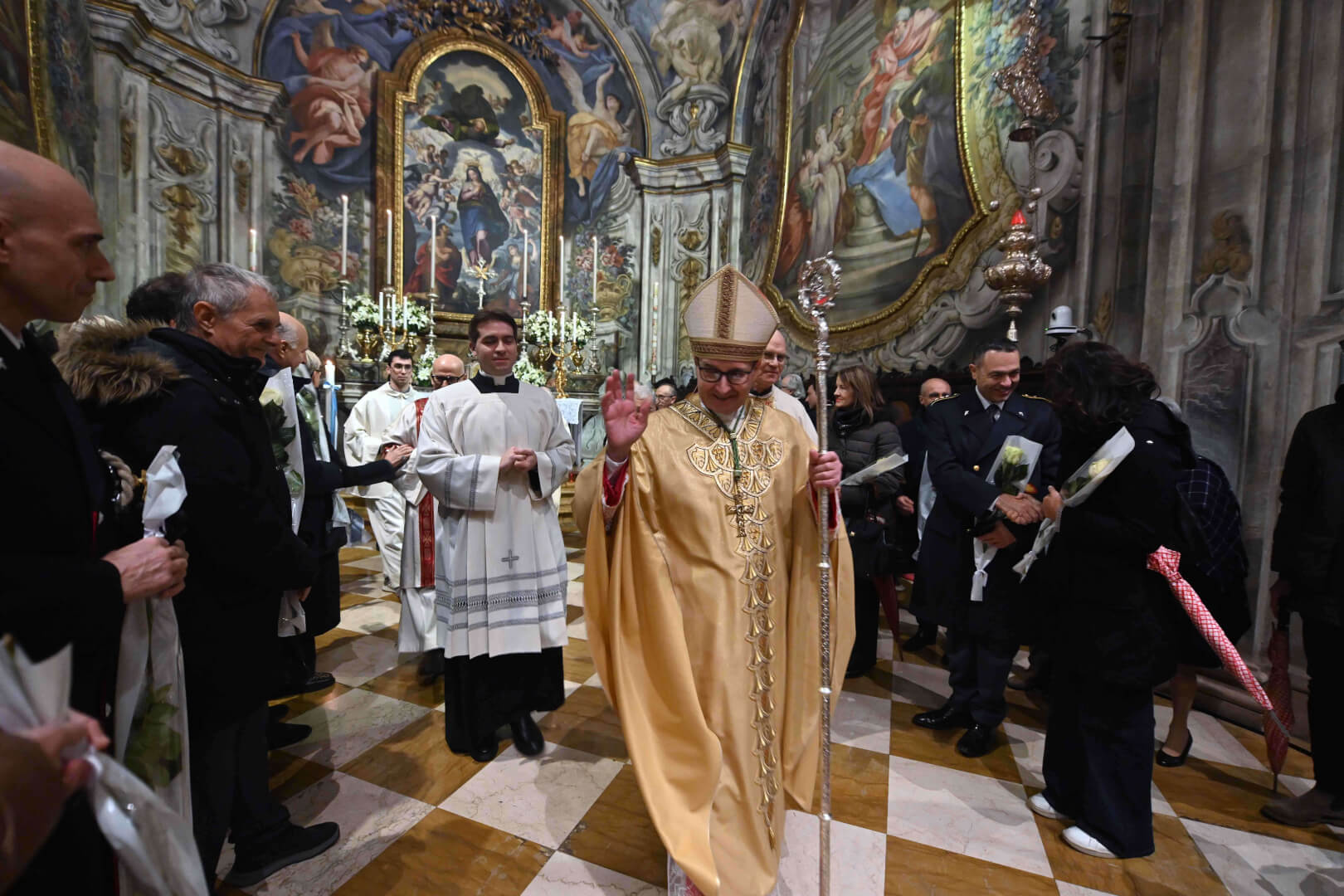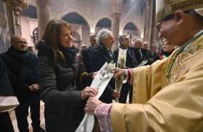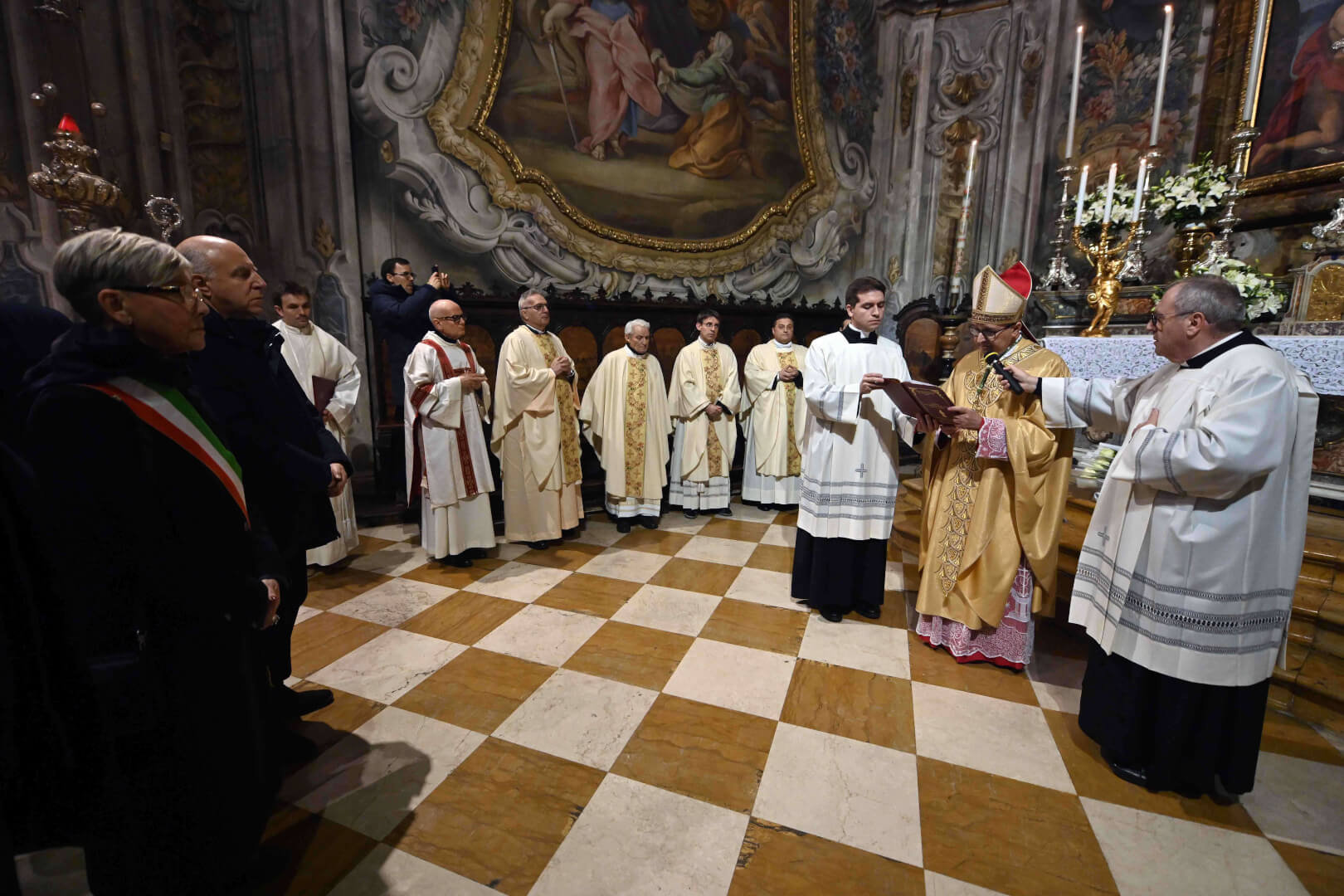 È questa anche l’occasione nella quale la comunità cristiana, attraverso il suo vescovo, rinnova volentieri l’impegno di cooperare al bene di questa città, offrendo il proprio contributo in dialogo rispettoso e costruttivo con quanti sono chiamati ad esercitare qui il grave compito del governo. Il gesto semplice ma suggestivo dello scambio dei ceri e delle rose vuole proprio esprimere una simile comune intenzione.