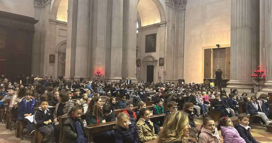 A partire da ciascuna scena, ogni bambino è stato provocato con una domanda volta a guardare il proprio vissuto (raccontato nella forma del disegno nelle classi prima e seconda, con le parole dalla terza alla quinta) e, prendendo spunto dal messaggio del Vangelo, è stato invitato ad un gesto di impegno da portare avanti durante la settimana. Alla secondaria di primo grado a fare da guida per i momenti vissuti ogni settimana durante la Quaresima è stata la parabola del Buon Samaritano, accompagnata dall’ascolto di brani musicali, con affondi dedicati al tema del vedere, del provare compassione e del prendersi cura. Al liceo, invece, sono stati gli insegnamenti delle singole discipline ad offrire spunti per il lavoro di autobiografia spirituale: i docenti, a partire dai saperi delle proprie materie, hanno consegnato un pensiero su cui riflettere o una domanda su cui lavorare. A conclusione del percorso, tutti gli studenti hanno vissuto insieme anche la celebrazione della Messa in vista della Pasqua, celebrata lunedì pomeriggio, in Duomo, dall’assistente pastorale dell’istituto don Raffaele Maiolini.