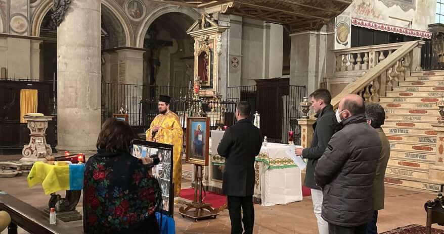 Questa mattina don Roberto Ferranti, direttore dell'Area pastorale per la mondialità, ha letto nella chiesa di San Giuseppe, al termine della Divina Liturgia Cattolica in Rito Bizantino, il messaggio di vicinanza alla comunità ucraina da parte del vescovo Pierantonio Tremolada.