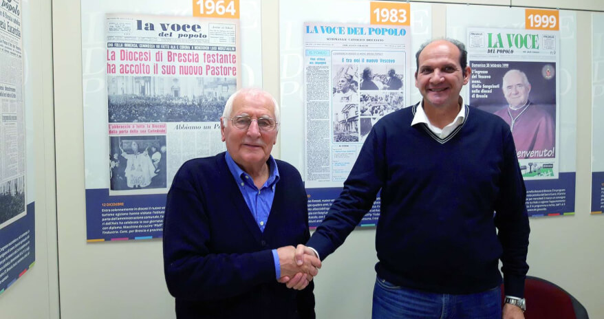 Un volto giovane per i sacristi. Giuseppe Sinopoli è il nuovo presidente dell’Unione Diocesana San Costanzo che riunisce i sacristi della nostra Diocesi. Succede dopo 10 anni a Giuseppe Giudici di Zocco di Erbusco che si è impegnato per il riconoscimento di una figura importante quanto spesso snobbata dagli stessi sacerdoti e dalla comunità. L’aspetto liturgico non è secondario rispetto alla celebrazione dell’eucaristia. Anzi. Purtroppo sono solo 30 i sacristi tesserati, di questi molti sono semplici volontari. Un po’ poco rispetto alle 400 parrocchie della Diocesi. Dal marzo 2015 Sinopoli (nella foto con Giudici) è il sacrista, assunto, di San Bernardino a Salò. Segue anche la chiesa della Visitazione, mentre il Duomo ha un altro addetto (Claudio). Sulle sponde del Lago di Garda, Giuseppe, 49 anni, si è sposato e ha trovato questa attività che sarebbe più corretto definirla “missione” come lui stesso sottolinea. Con un baccalaureato in filosofia e teologia e con un percorso educativo tra i salesiani, Giuseppe, originario della Sicilia, ha avuto anche una formazione con il Rinnovamento nello Spirito.