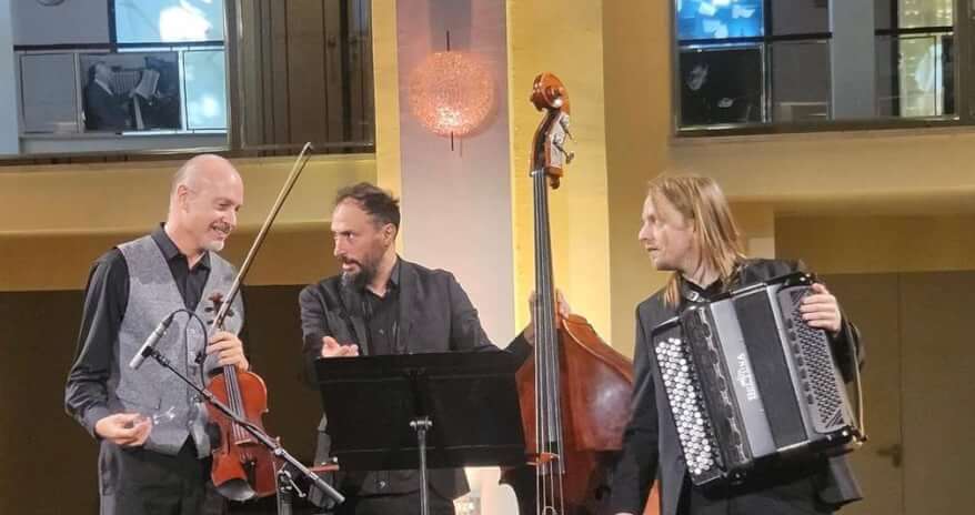 Nella giornata di sabato 23 agosto il festival offre un doppio appuntamento: a Lovere (Bg), a Villa Milesi (ore 21), Cesare Carretta (violino), Andrea Corazzi (bandoneon e fisarmonica) e Nicola Ziliani (contrabbasso) presentano Histoire du tango, affascinante excursus nella storia del celebre ballo argentino. Verranno eseguiti brani di Gardel, Pugliese, Piazzolla, Ziegler e Galliano. Nel trio spicca la presenza di Cesare Carretta, diplomato al Conservatorio di Parma e laureato con lode in violino jazz presso il Conservatorio di Bologna. Carretta ha suonato con la Symphonica d’Italia diretta dal maestro Lorin Maazel e con altre prestigiose orchestre e gruppi da camera, fra cui l’Orchestra dei Pomeriggi Musicali di Milano, l’Orchestra di Padova e del Veneto e l’Orchestra Filarmonica Italiana, per la quale è solista e arrangiatore. Svolge, inoltre, un’intensa attività nel panorama jazzistico italiano ed è fondatore dell’ensemble JAS Jazz Acoustic Strings. È stato, infine, il primo violino del quartetto d’archi di Franco Battiato.
