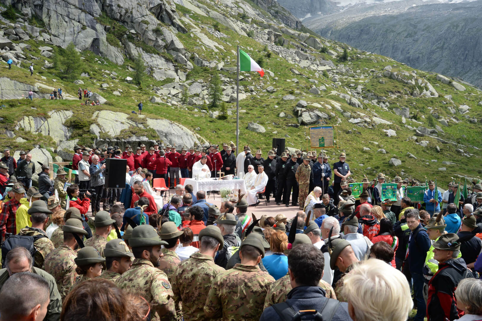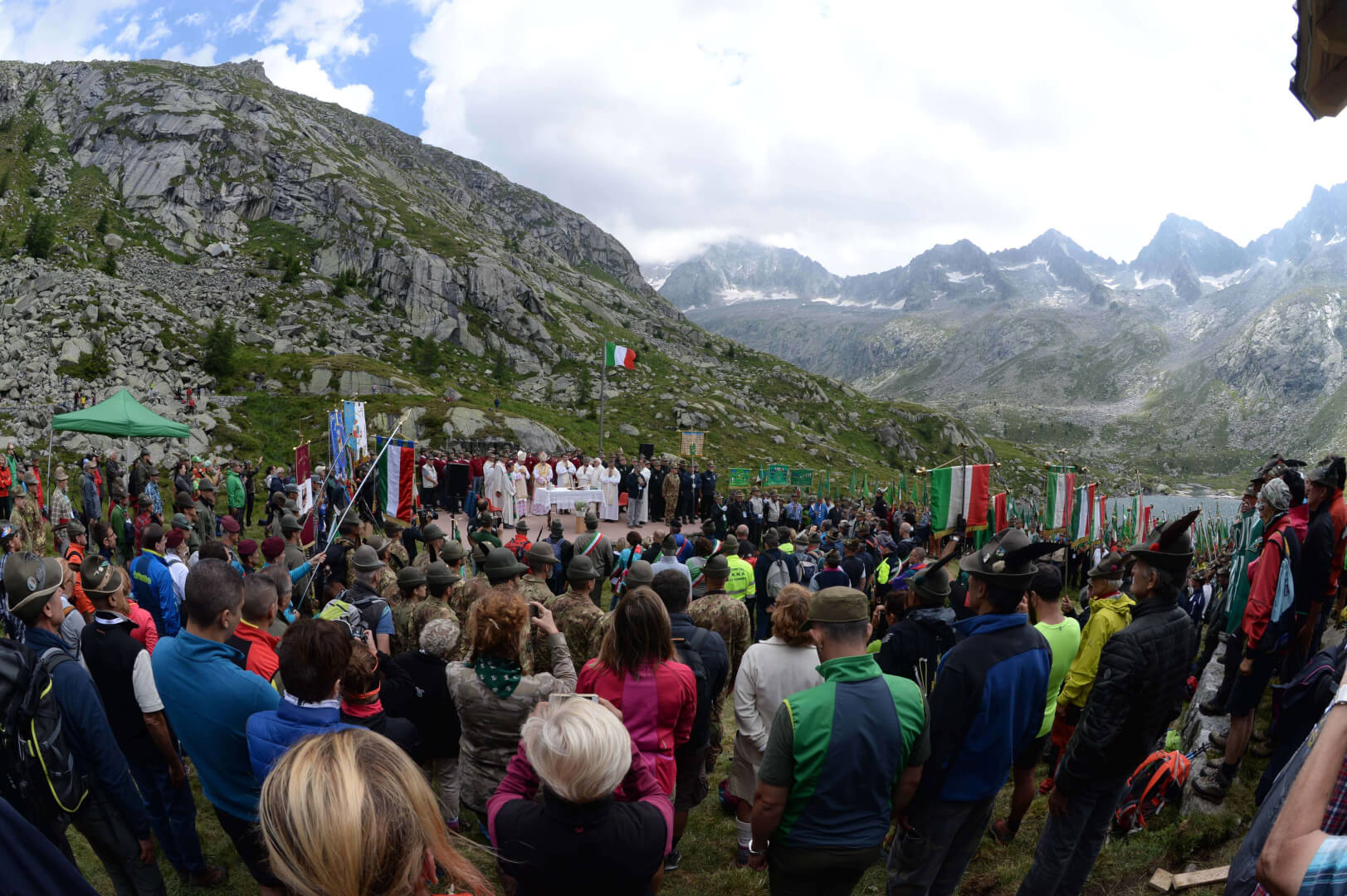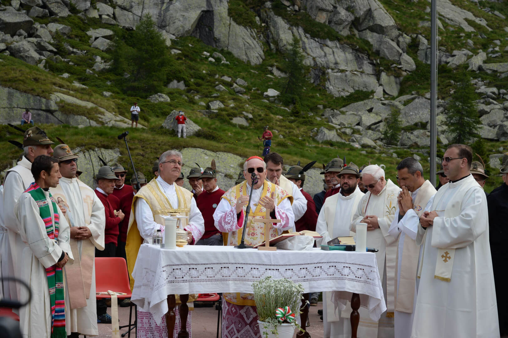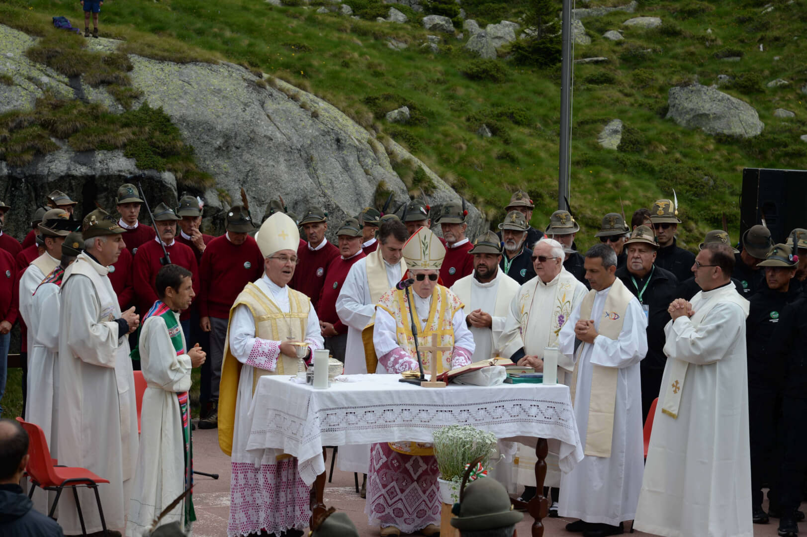 Il 56° Pellegrinaggio in Adamello a ricordo del centenario della fondazione dell’Associazione Nazionale Alpini. La Santa Messa per tutti i Caduti presieduta dal card. Giovanni Battista Re e concelebrata dal vescovo Pierantonio