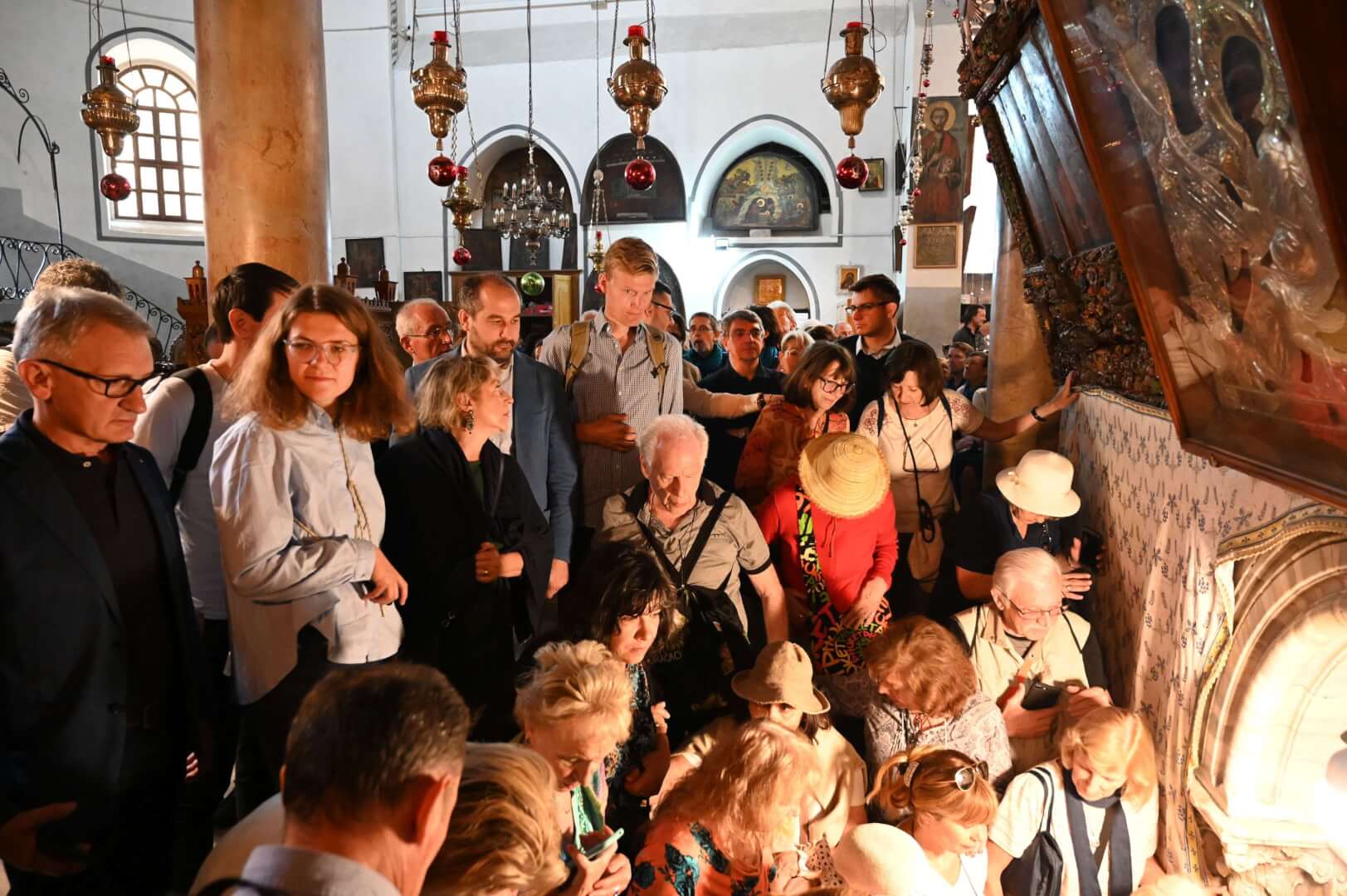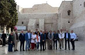 La delegazione bresciana che sino al 9 novembre visita la città gemellata di Betlemme, in Palestina. Alla visita, organizzata da Brevivet, partecipano il vescovo Pierantonio e il sindaco di Brescia, Emilio Del Bono, oltre a diversi componenti del Consiglio comunale
