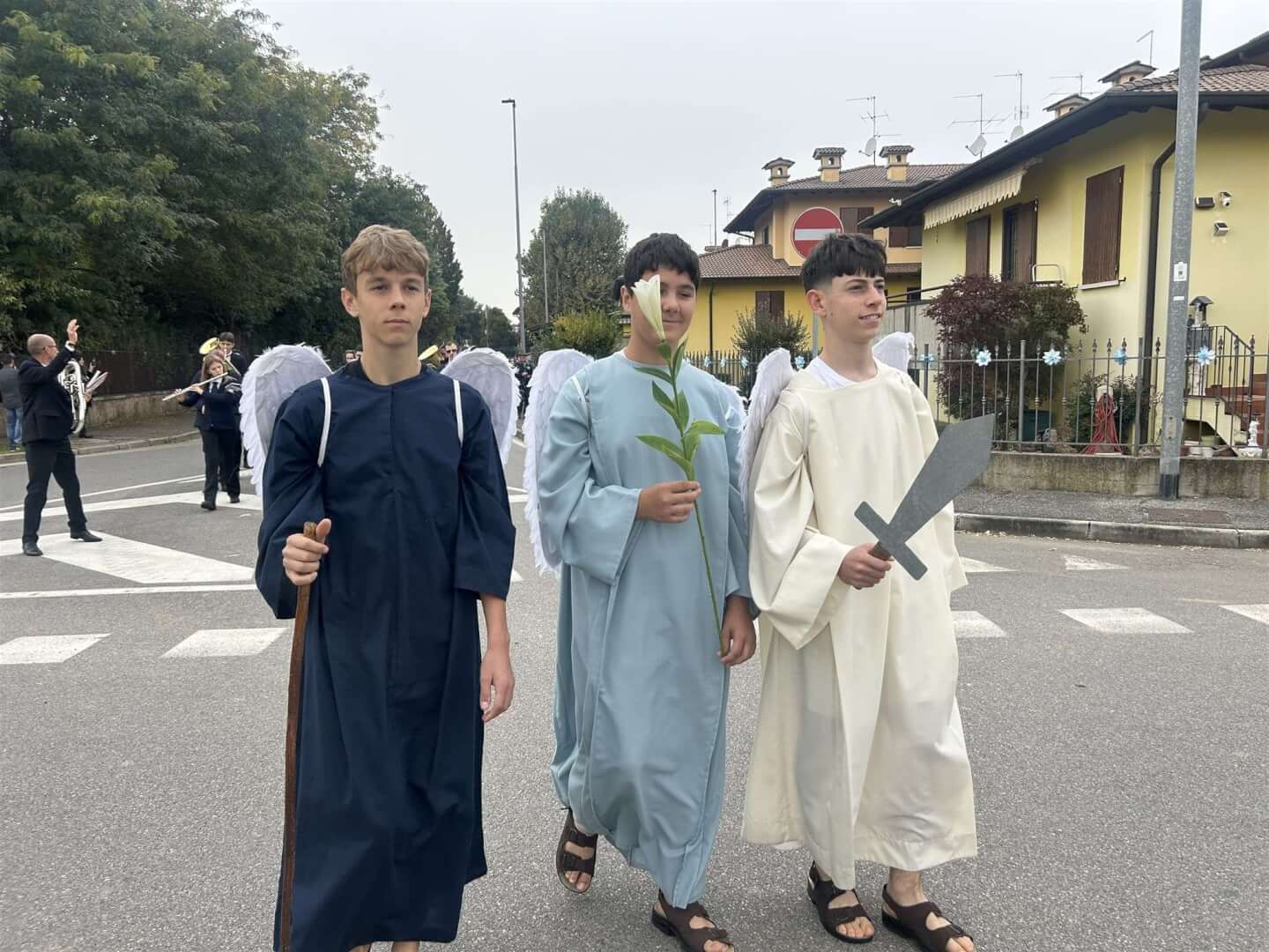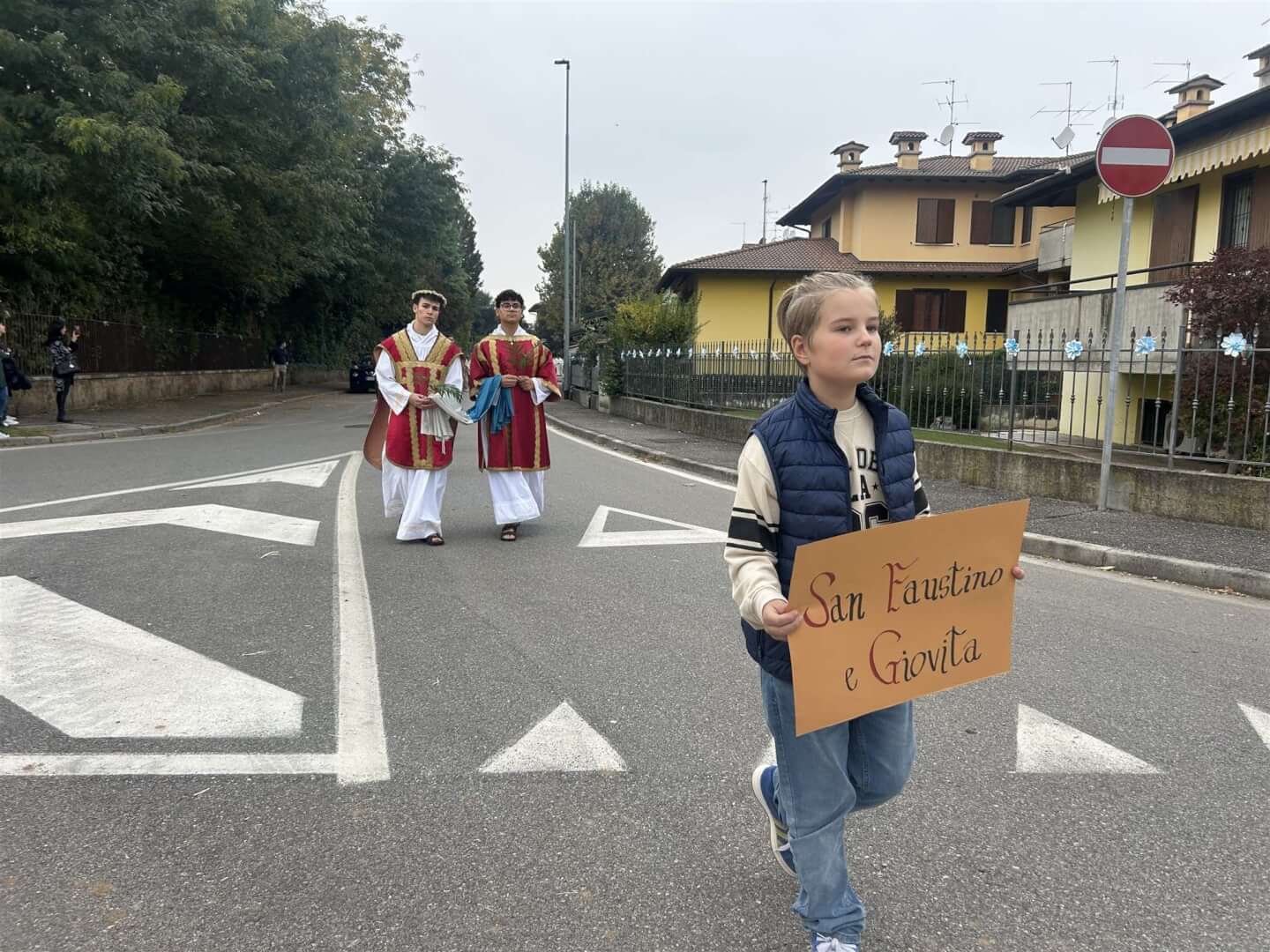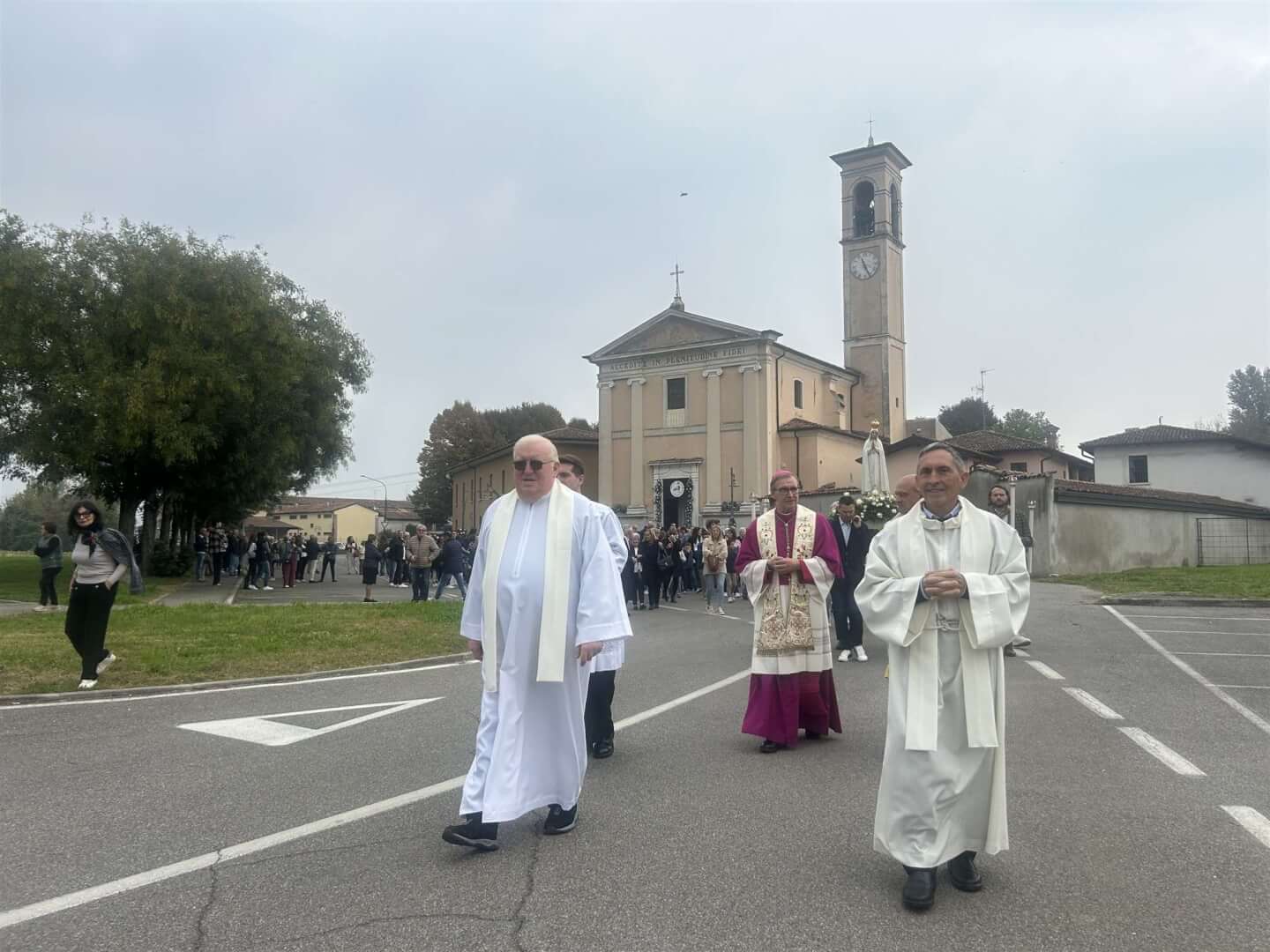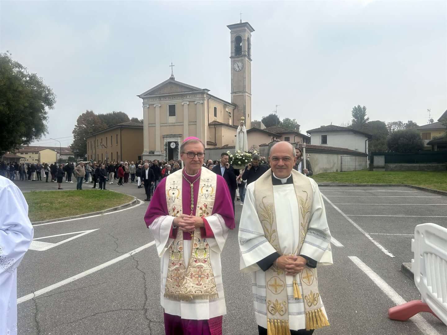 A conclusione delle feste quinquennali, a Borgo e Poncarale, dove in questi giorni è arrivata la statua della Madonna di Fatima, circa 80 figuranti hanno impersonato altrettante figure di Santi in una processione presieduta dal vescovo Pierantonio al termine della Celebrazione Eucaristica.