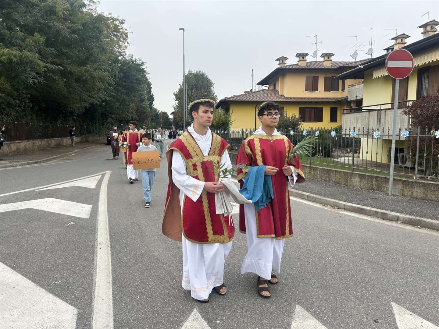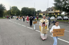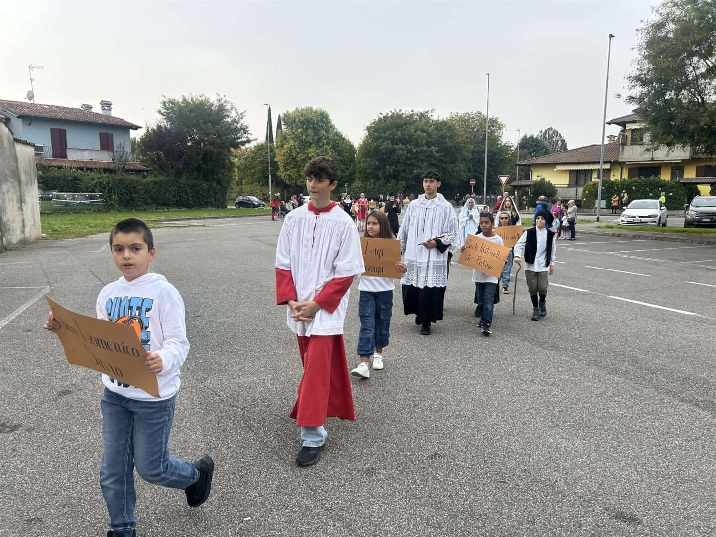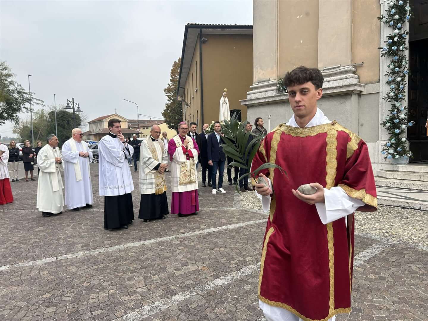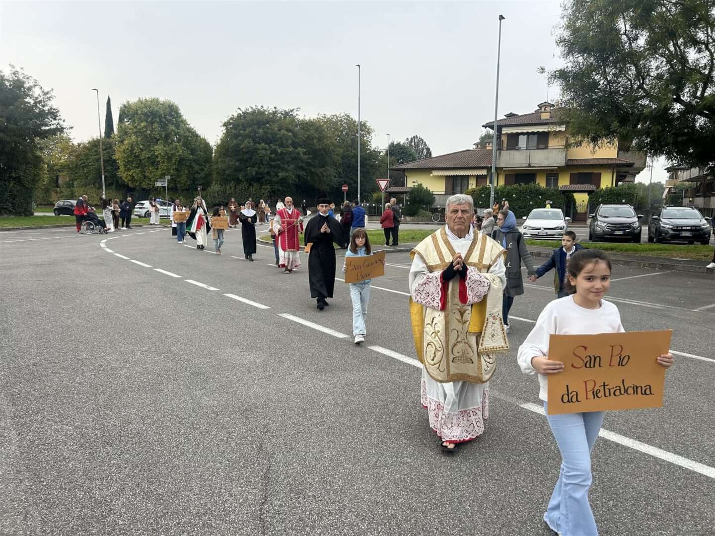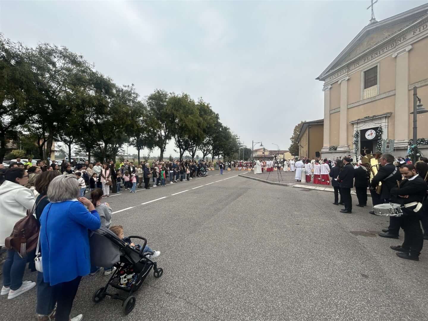 A conclusione delle feste quinquennali, a Borgo e Poncarale, dove in questi giorni è arrivata la statua della Madonna di Fatima, circa 80 figuranti hanno impersonato altrettante figure di Santi in una processione presieduta dal vescovo Pierantonio al termine della Celebrazione Eucaristica.