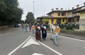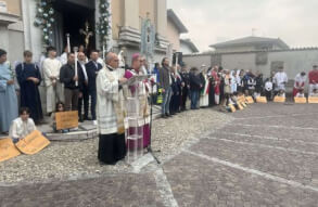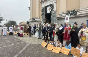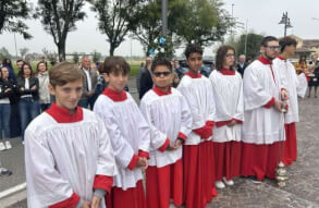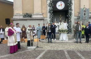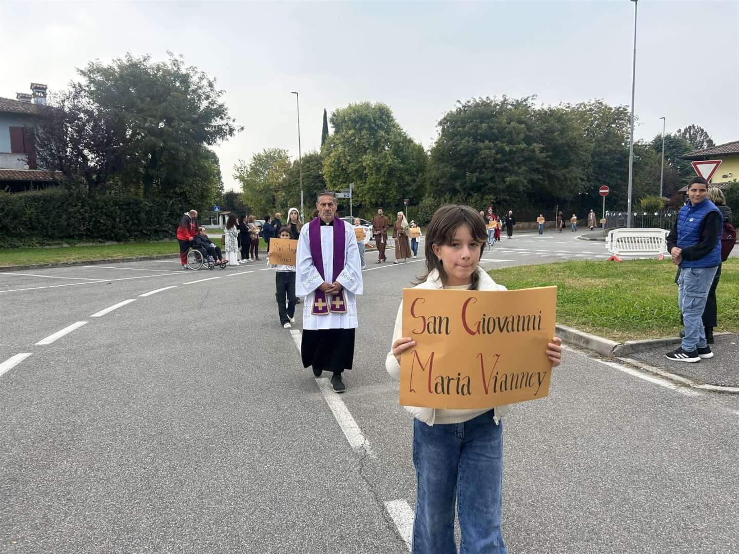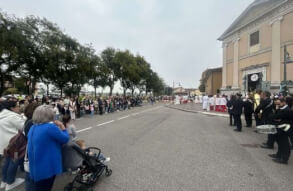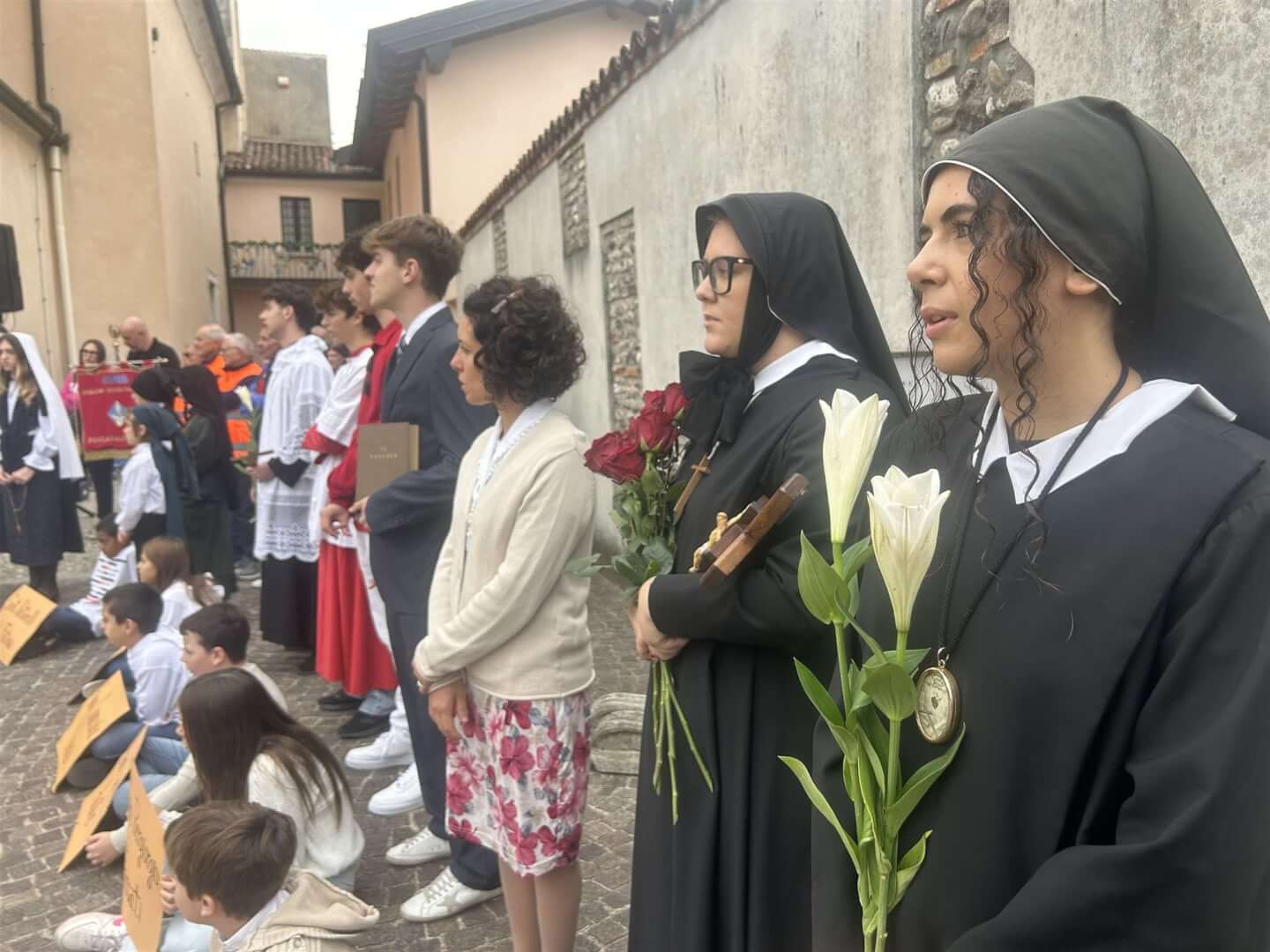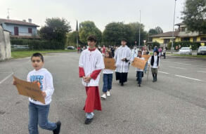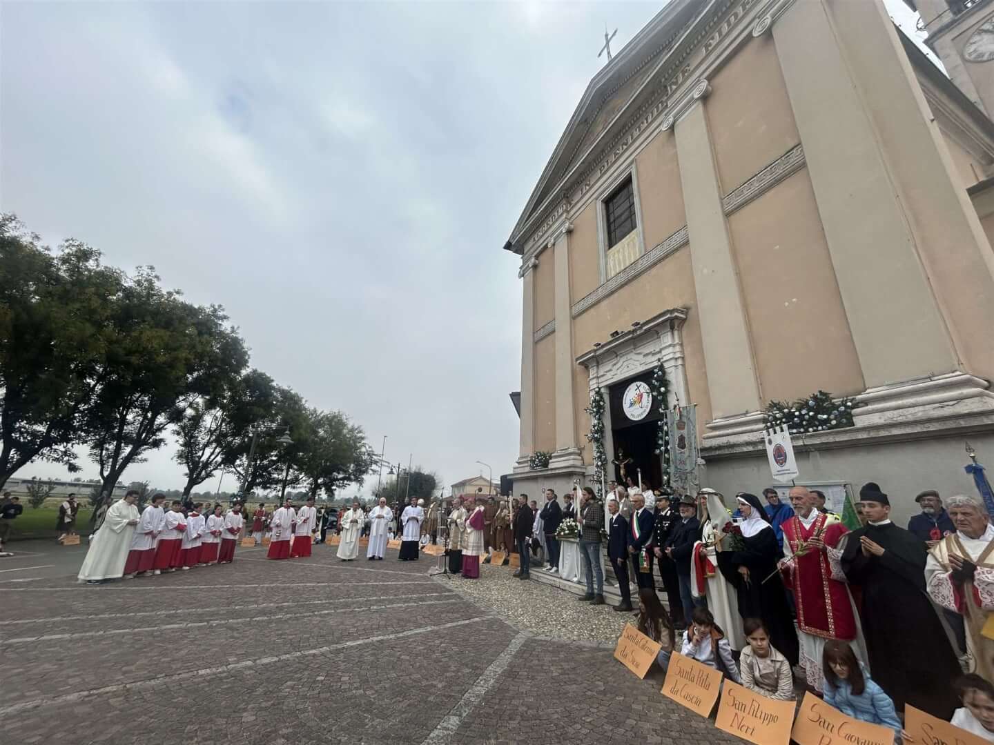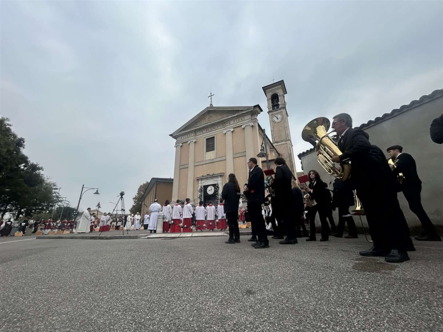 A conclusione delle feste quinquennali, a Borgo e Poncarale, dove in questi giorni è arrivata la statua della Madonna di Fatima, circa 80 figuranti hanno impersonato altrettante figure di Santi in una processione presieduta dal vescovo Pierantonio al termine della Celebrazione Eucaristica.