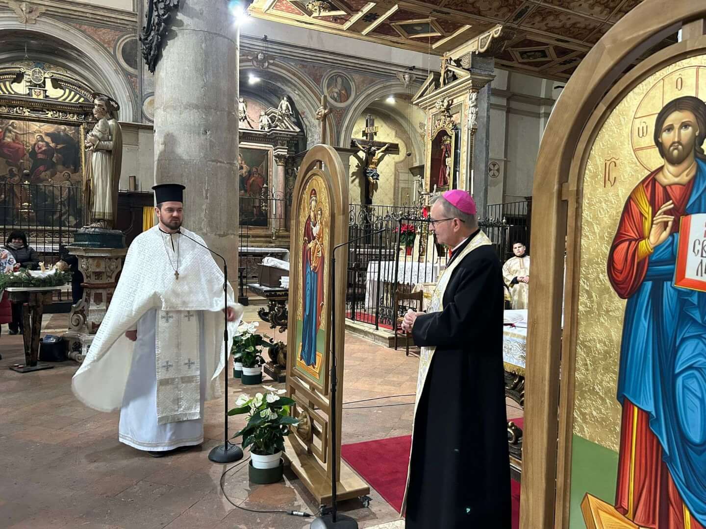 Domenica 28 dicembre il vescovo Pierantonio ha portato gli auguri di Natale al termine della Divina Liturgia celebrata dalla comunità ucraina cattolica di Rito Bizantino nella chiesa di San Giuseppe. Il Vescovo ha nuovamente espresso la vicinanza della Diocesi alla sofferenza del popolo ucraino e ha rinnovato insieme a loro la preghiera per una pace giusta