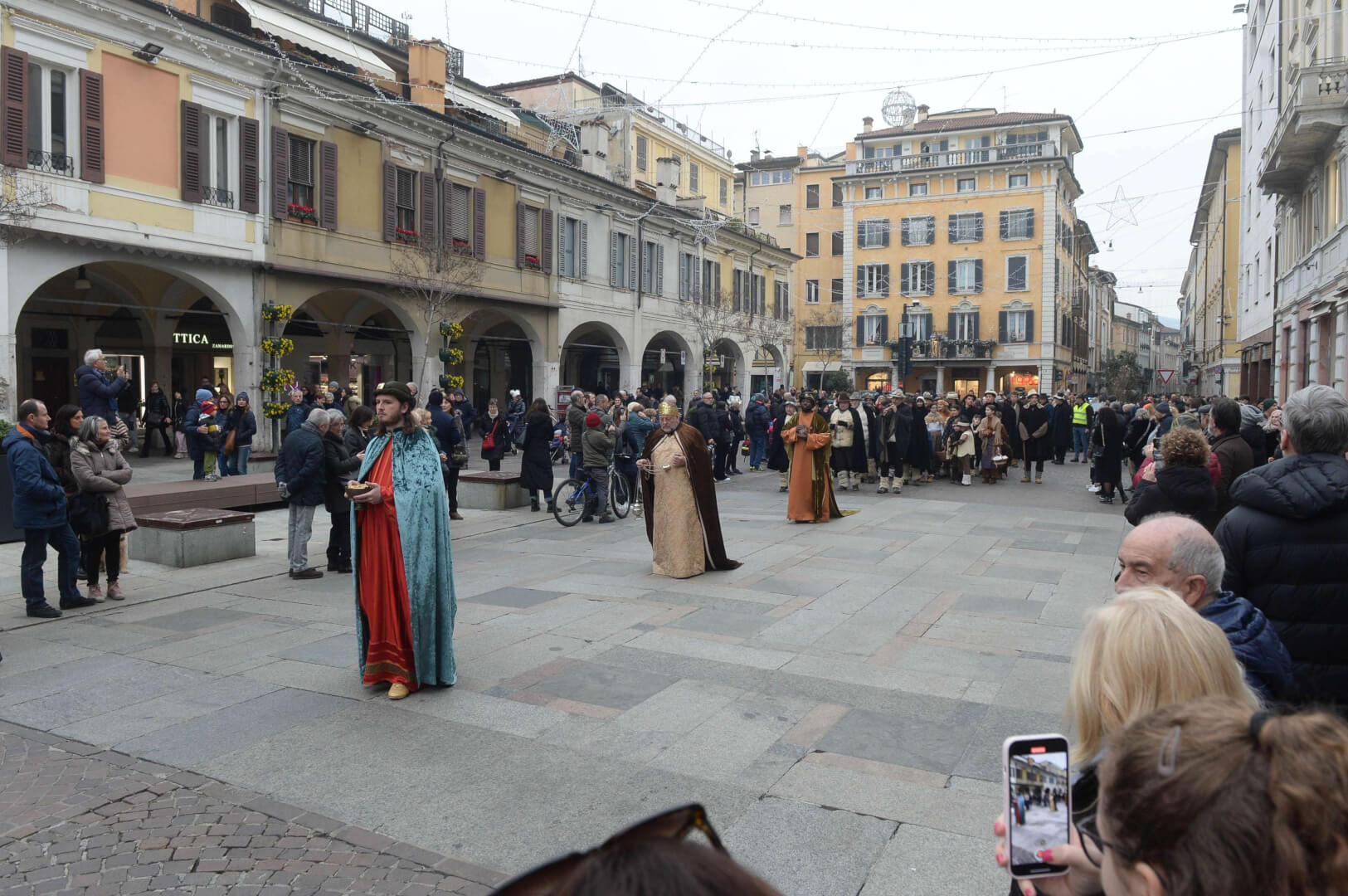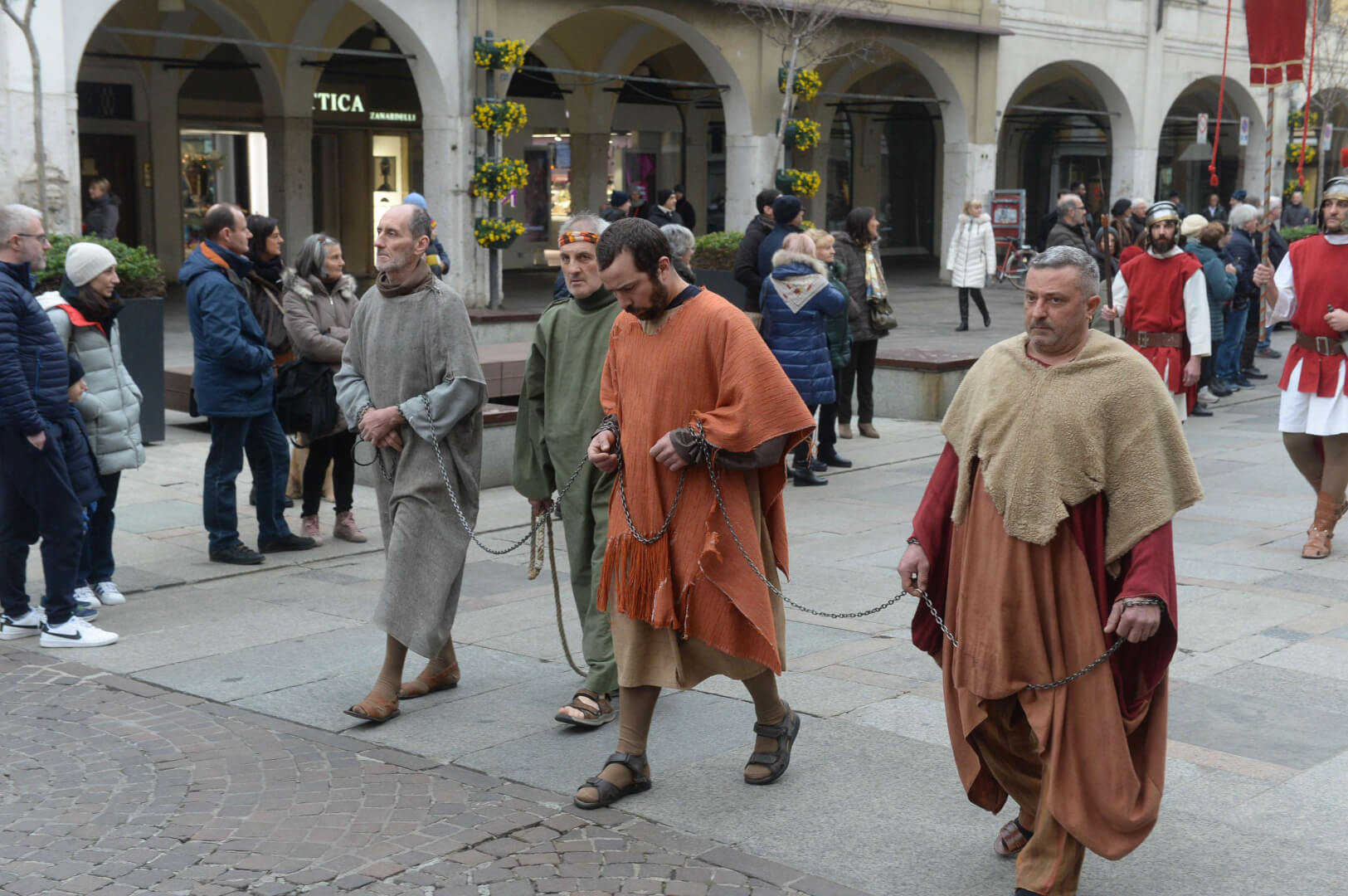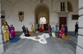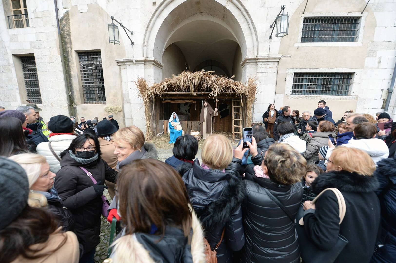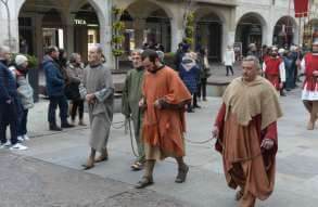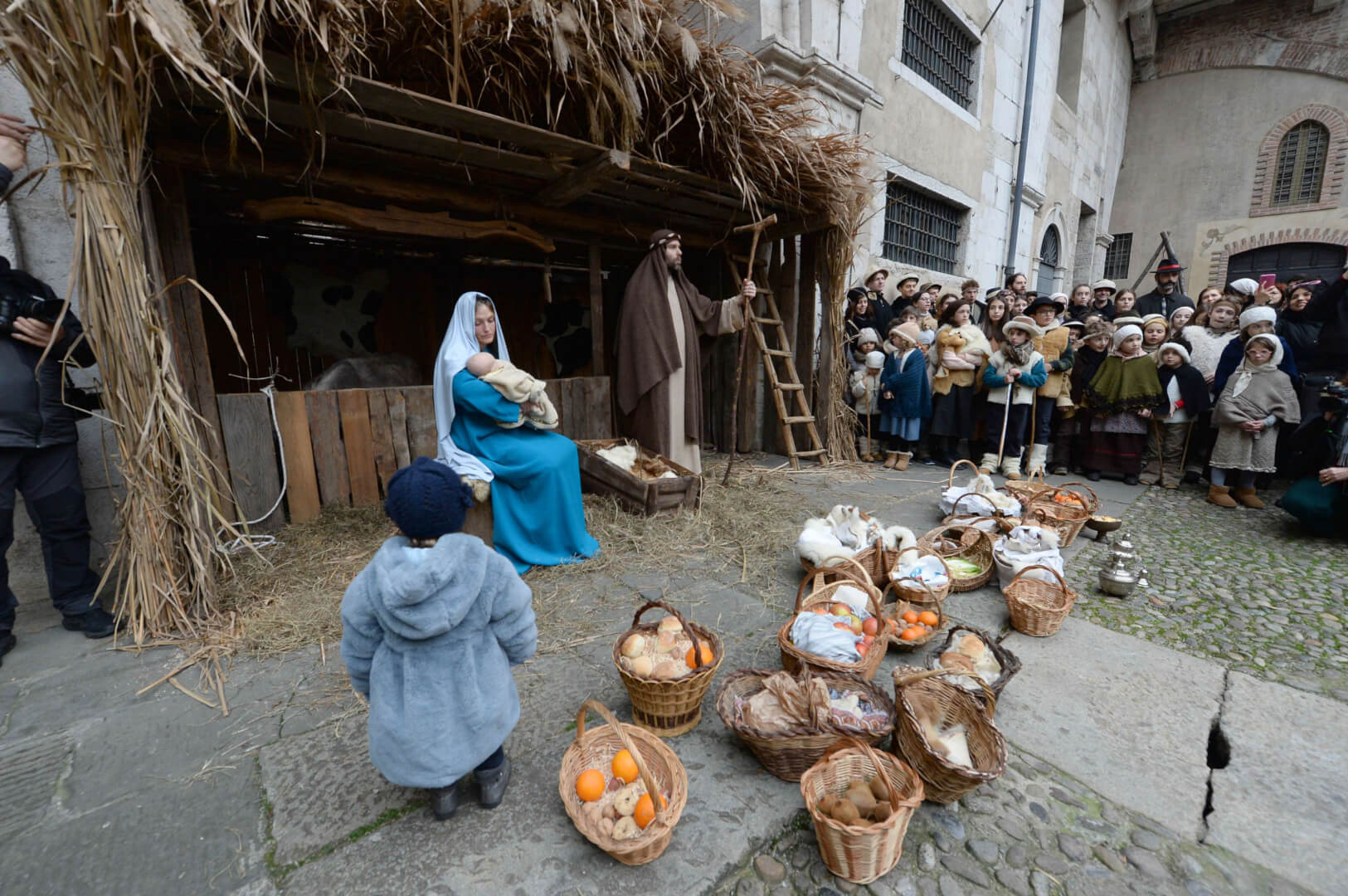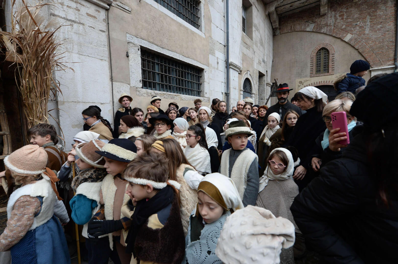 I più di 100 figuranti del presepe vivente di Ome hanno animato la città di Brescia e il cortile di Palazzo Broletto. Il prossimo appuntamento con il presepe allestito dagli Alpini, questa volta nella sede tradizionale di Ome, è per il 6 gennaio alle 14.30