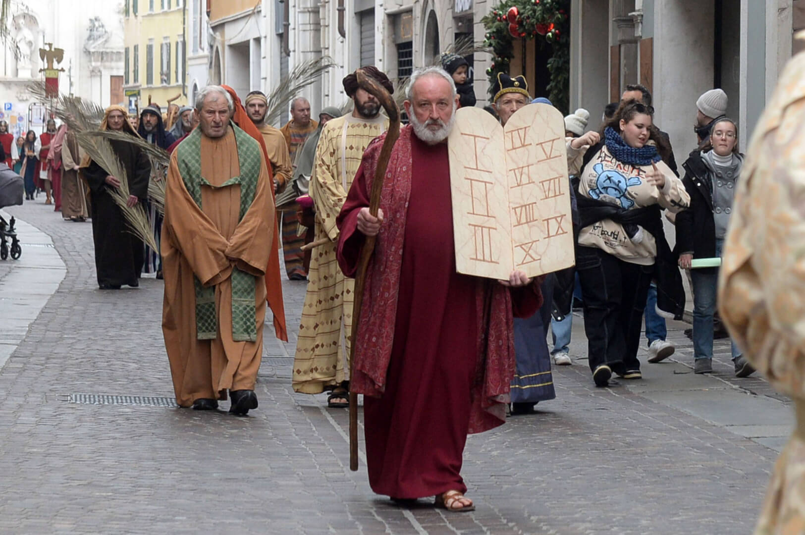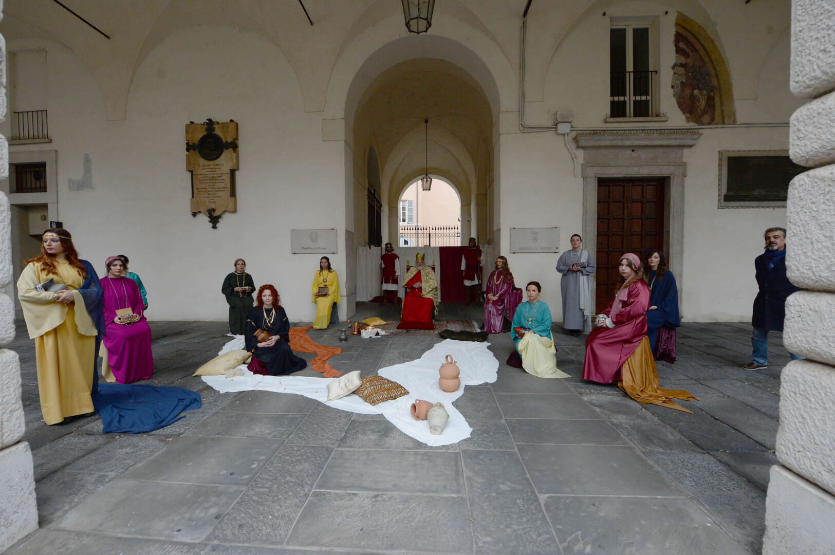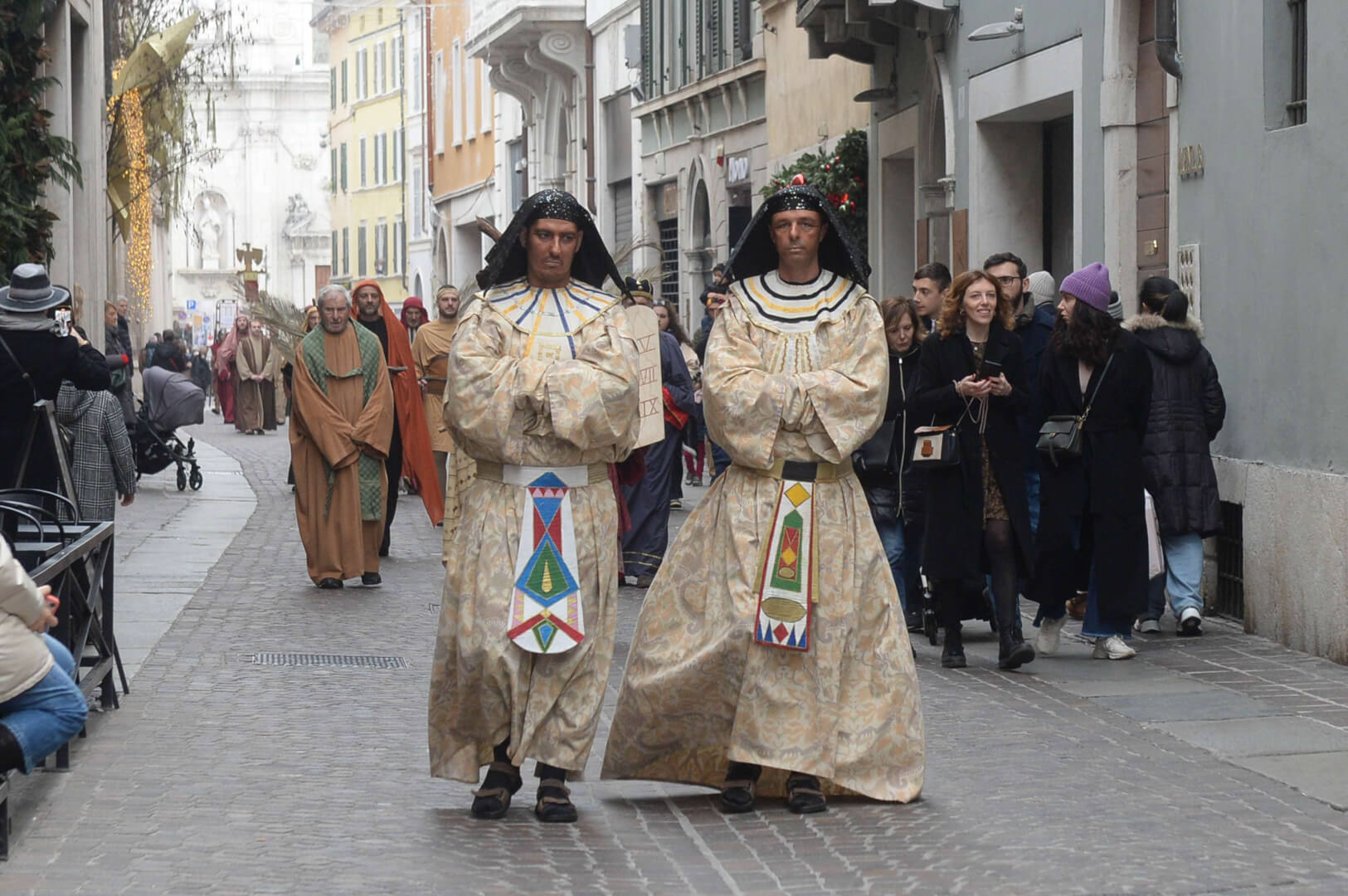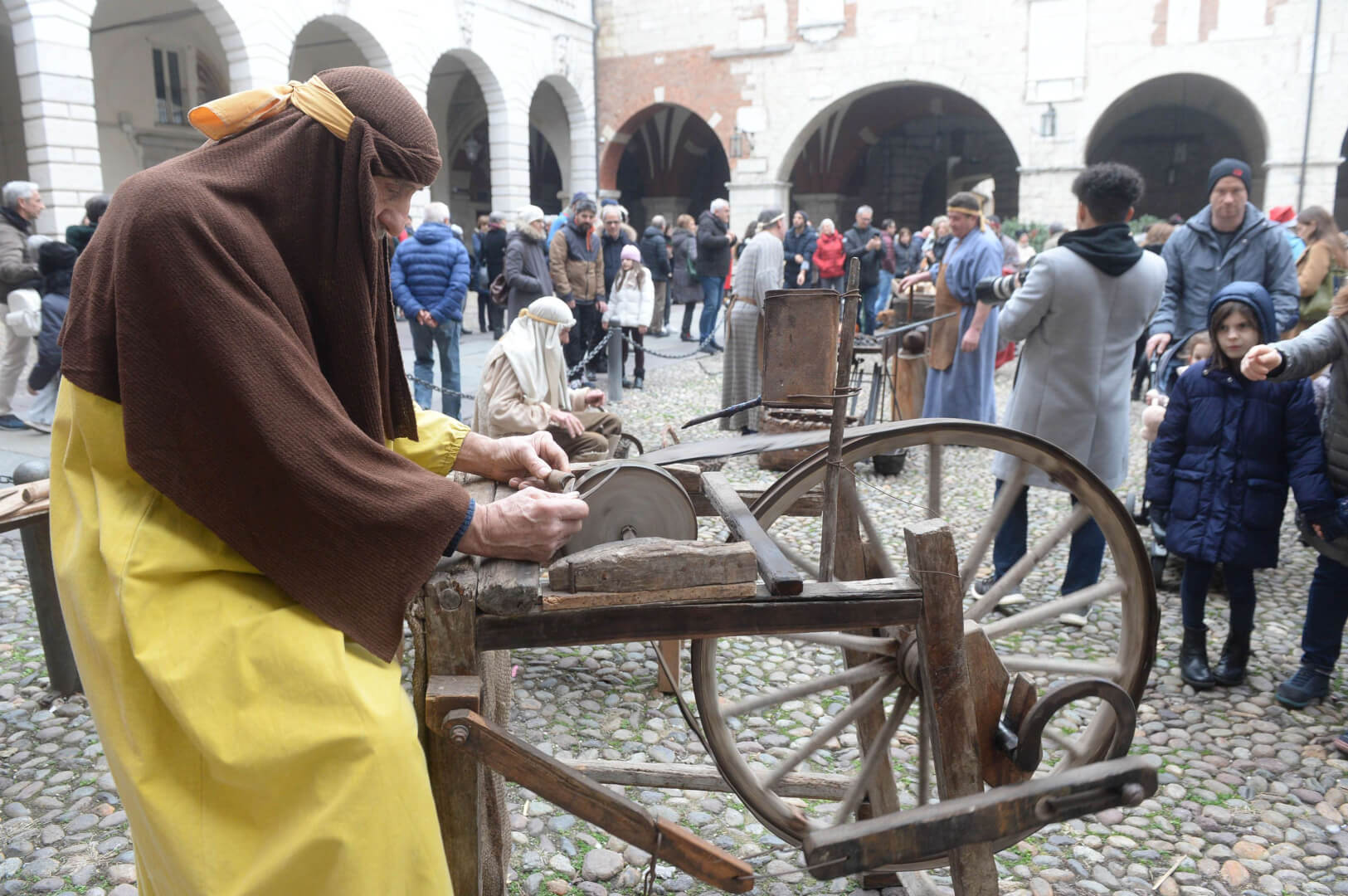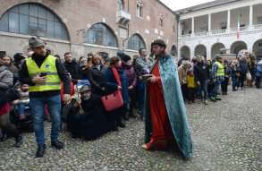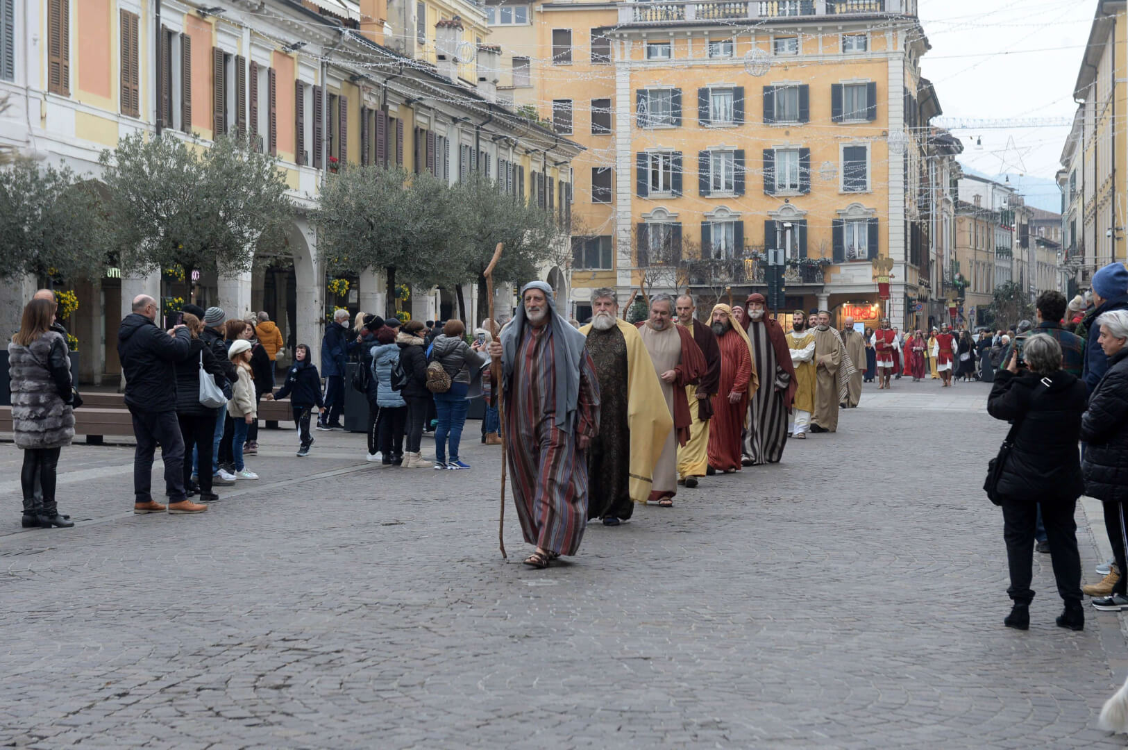 I più di 100 figuranti del presepe vivente di Ome hanno animato la città di Brescia e il cortile di Palazzo Broletto. Il prossimo appuntamento con il presepe allestito dagli Alpini, questa volta nella sede tradizionale di Ome, è per il 6 gennaio alle 14.30