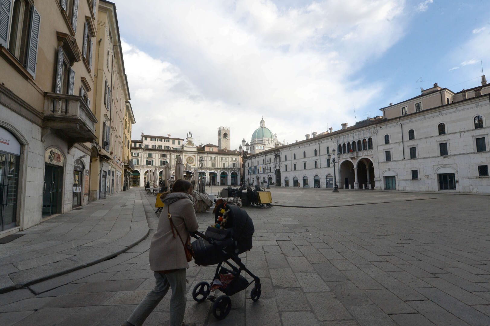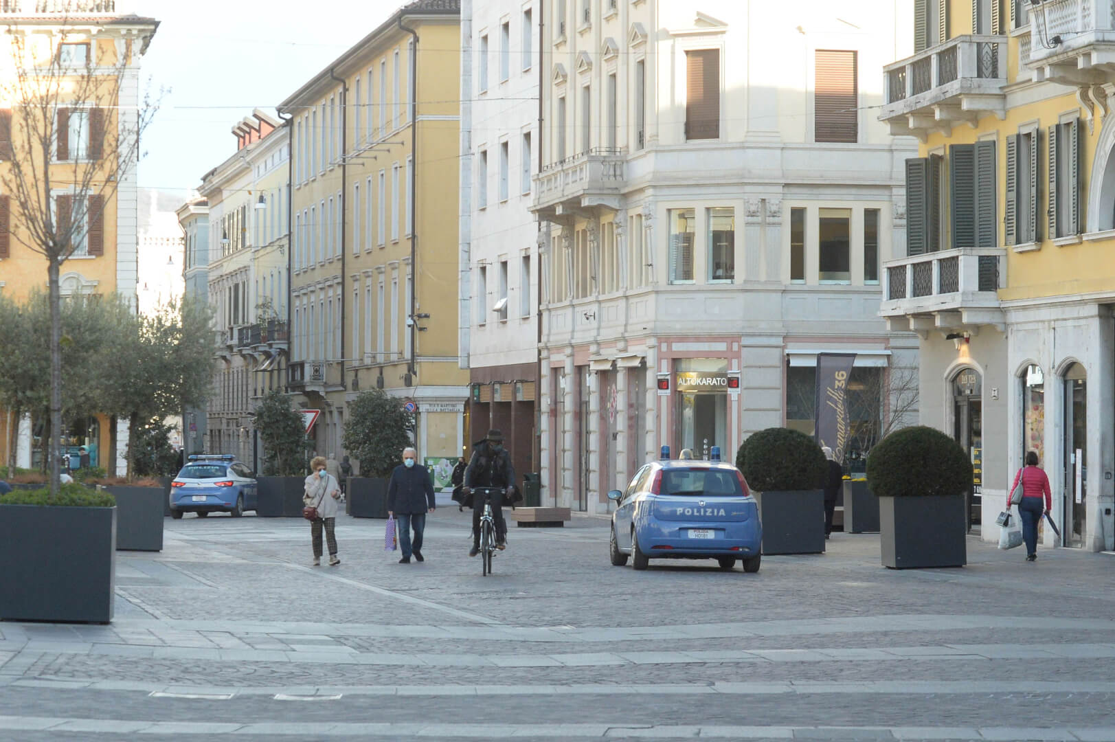La città pressoché deserta dopo il passaggio in zona rossa del Bresciano, istituita per fronteggiare il picco pandemico