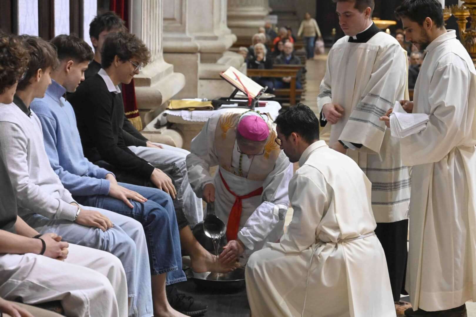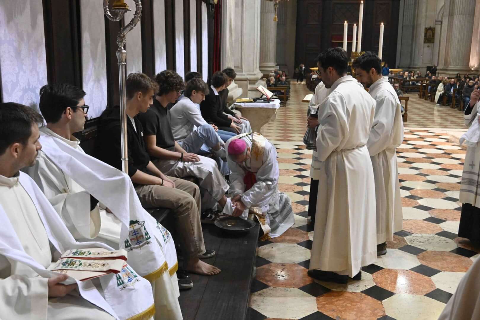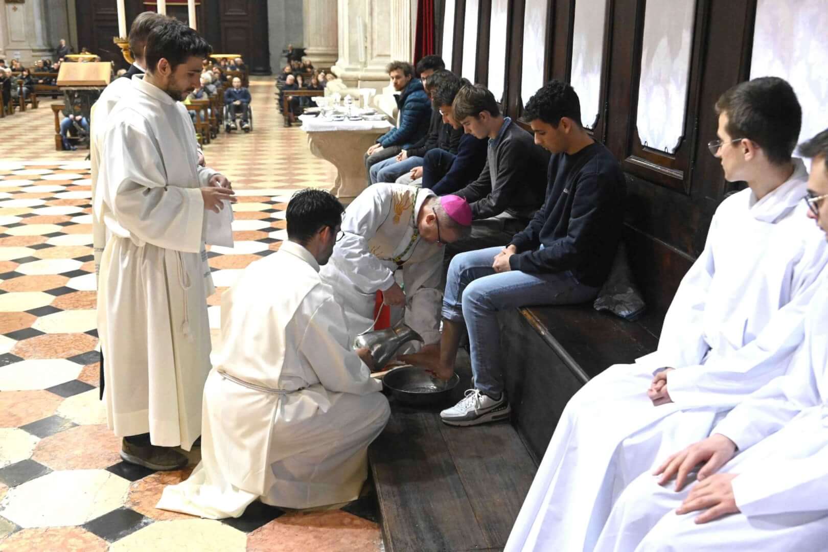 Il vescovo Pierantonio ha presieduto la Messa In Coena Domini con la lavanda dei piedi ai giovani del Centro Culturale San Pier Giorgio Frassati