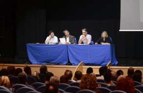 Il quarto incontro con i candidati alla carica di sindaco nella Sala della comunità Pavanelli della parrocchia di S.Afra