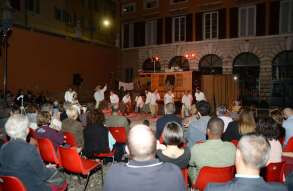 Alla presenza del vescovo Pierantonio, nel cortile della Curia, lo spettacolo teatrale de "Il Carrozzone degli artisti", "Esprimi un desiderio", un’iniziativa destinata ad adulti e bambini, sostenuta dall’Ufficio per gli oratori, i giovani e le vocazioni che ha come obiettivo quello di creare una nuova opportunità di incontro culturale, volto a promuovere occasioni di inclusione sociale