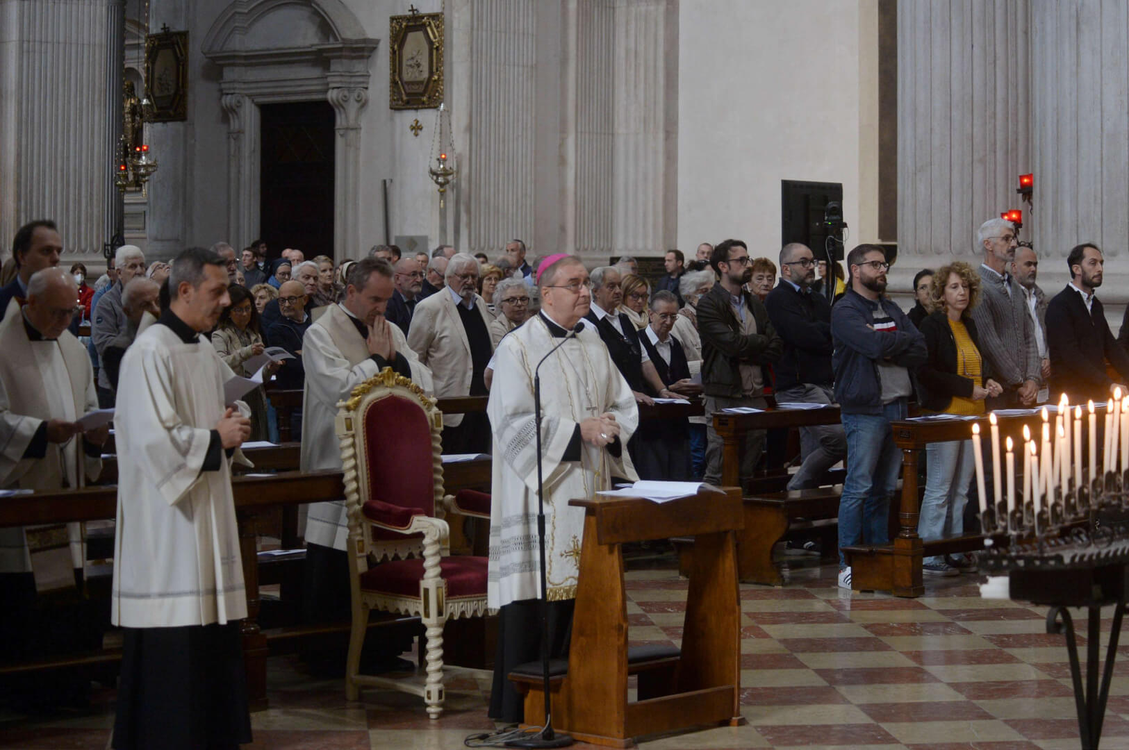 “Abbiamo il dovere di pregare e invocare Dio perché tocchi il cuore dell’uomo”. Le parole del card. Pizzaballa hanno aperto, in Cattedrale, la preghiera per la pace guidata, in comunione con molte parrocchie della nostra Diocesi, dal vescovo Pierantonio