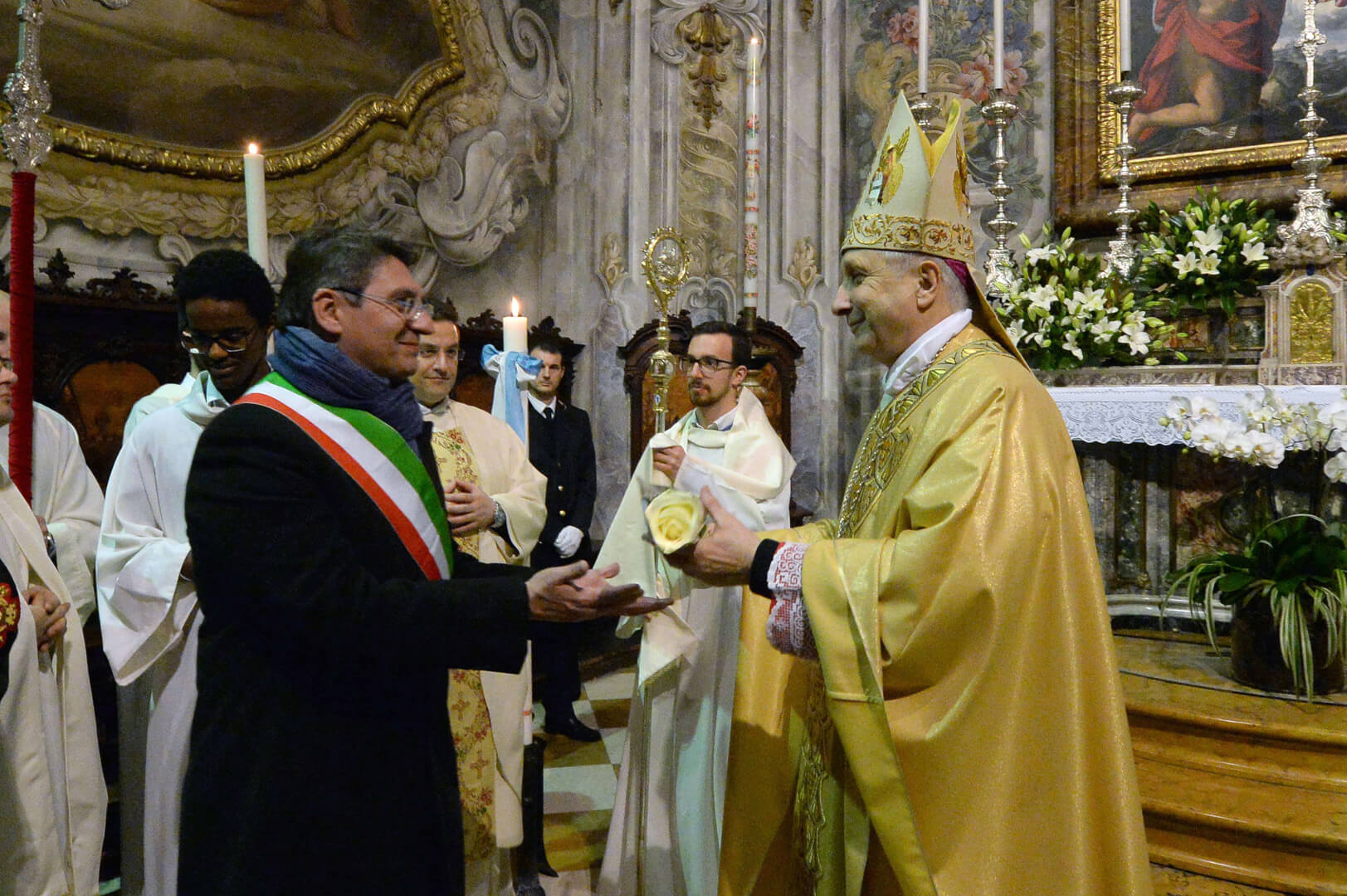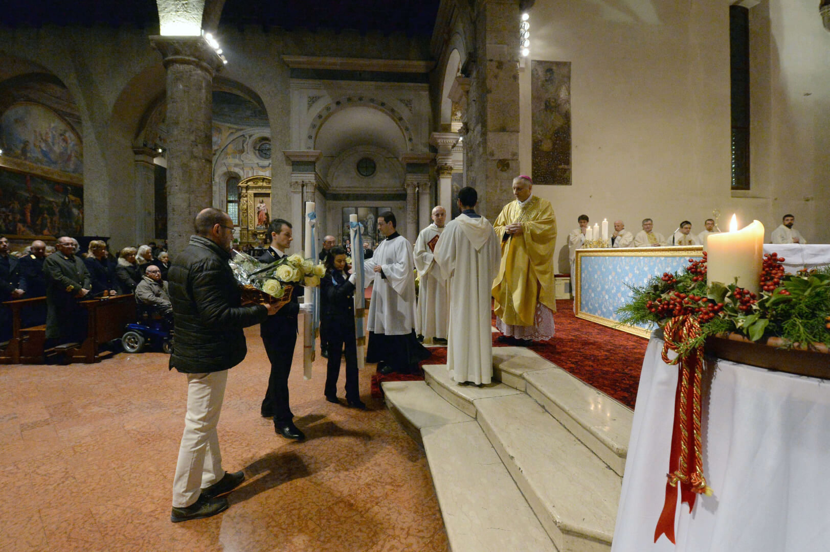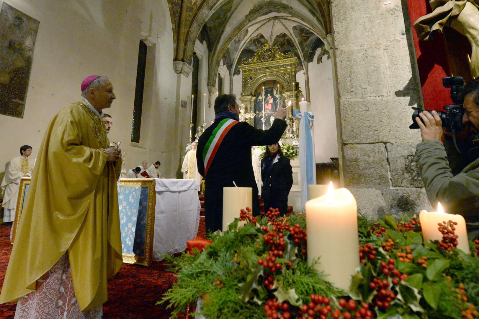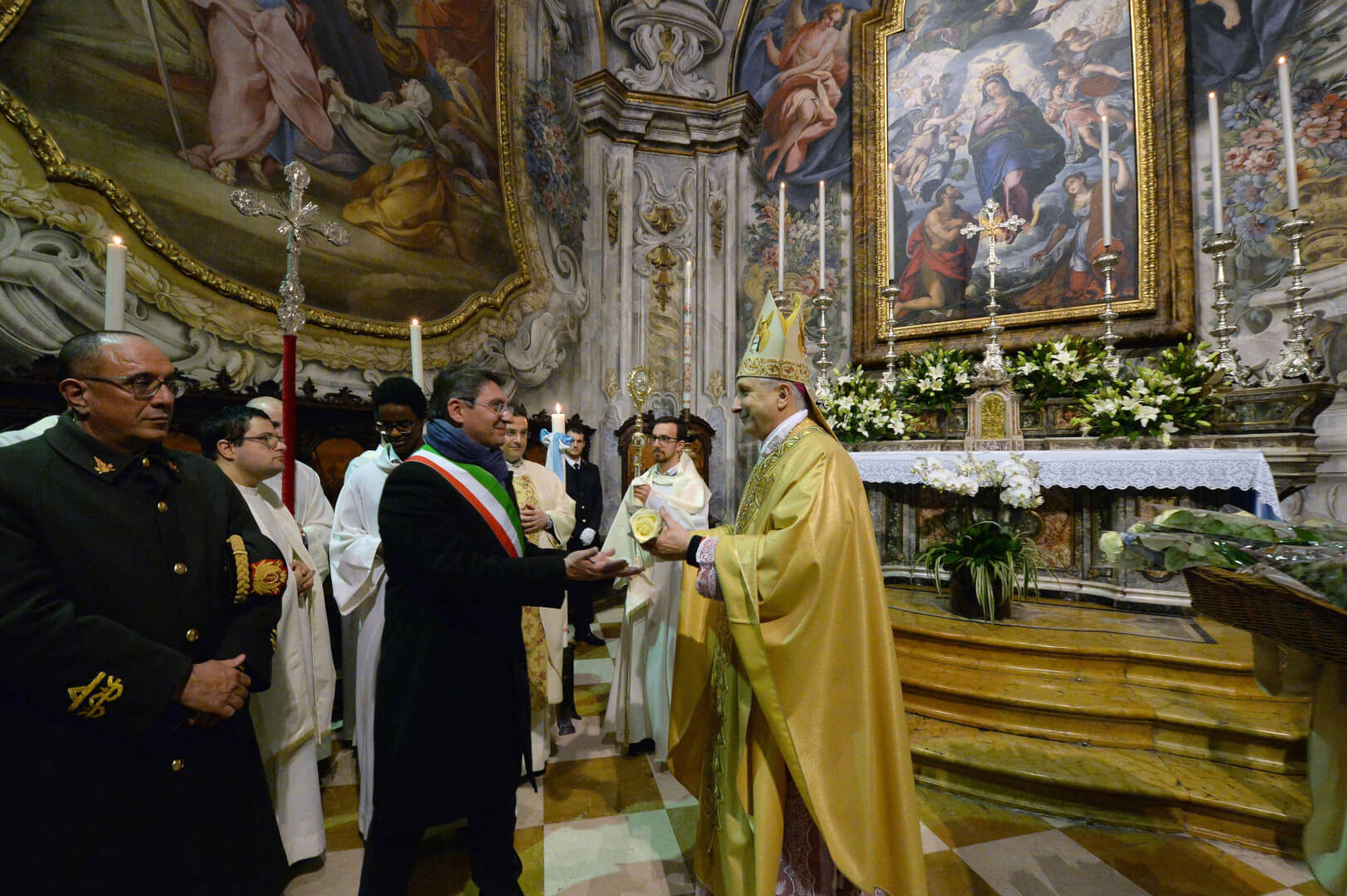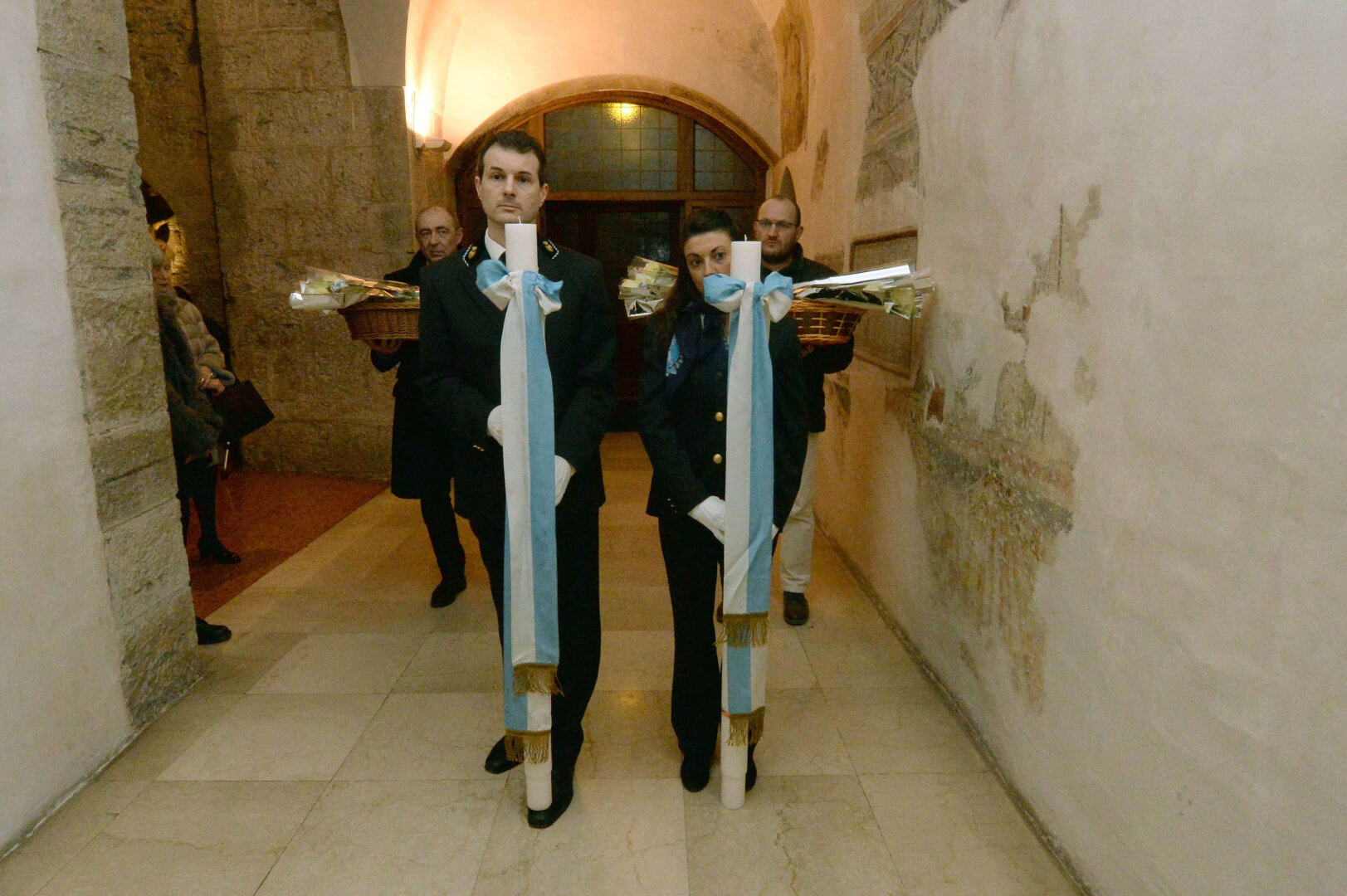 Il Vescovo ha donato le rose bianche. I ceri sono donati dal Sindaco a nome della cittadinanza alla Vergine Immacolata e ardono fino a completa consumazione nella cappella a Lei dedicata