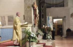 ll vescovo Tremolada nella Chiesa di San Francesco dei frati minori conventuali a Brescia dove ogni anno si rinnova lo scambio dei Ceri e delle Rose in occasione della Solennità dell’Immacolata. Il Vescovo ha donato le rose bianche. I ceri sono donati dal Sindaco a nome della cittadinanza alla Vergine Immacolata e ardono fino a completa consumazione nella cappella a Lei dedicata
