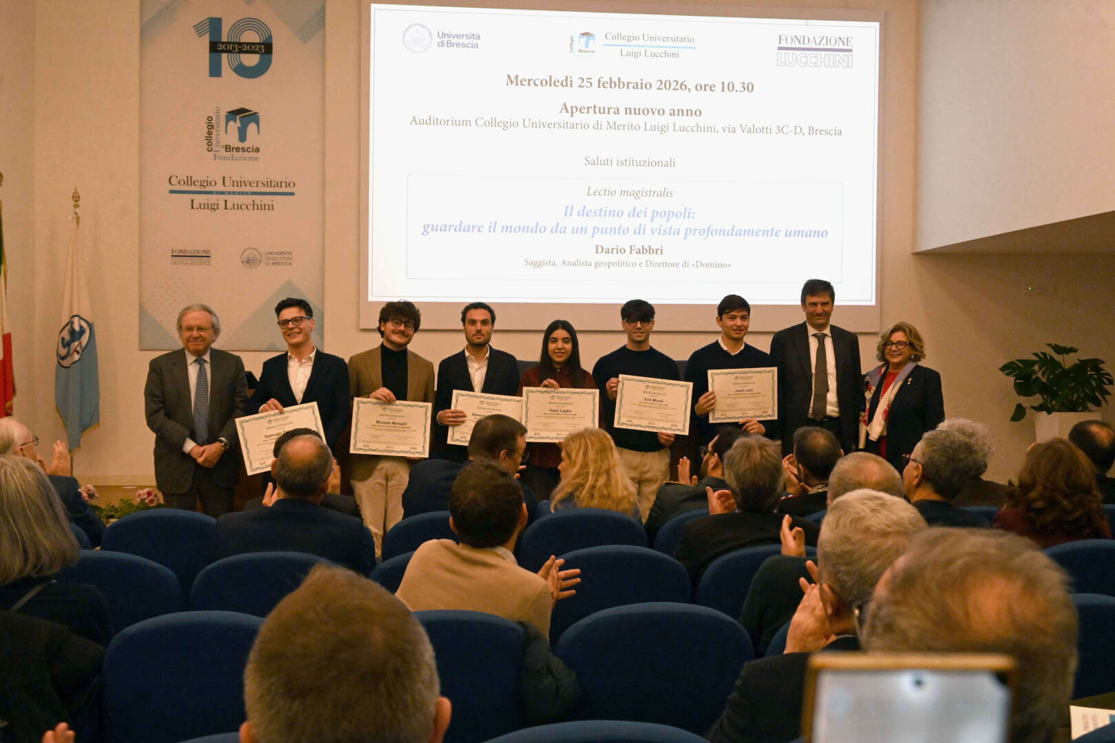 Oggi - mercoledì 25 febbraio - nell’auditorium del Collegio Universitario di Merito Luigi Lucchini si è tenuta la cerimonia di apertura del nuovo anno accademico con la lectio magistralis "Il destino dei popoli: guardare il mondo da un punto di vista profondamente umano", tenuta da Dario Fabbri, saggista, analista geopolitico e direttore di "Domino".