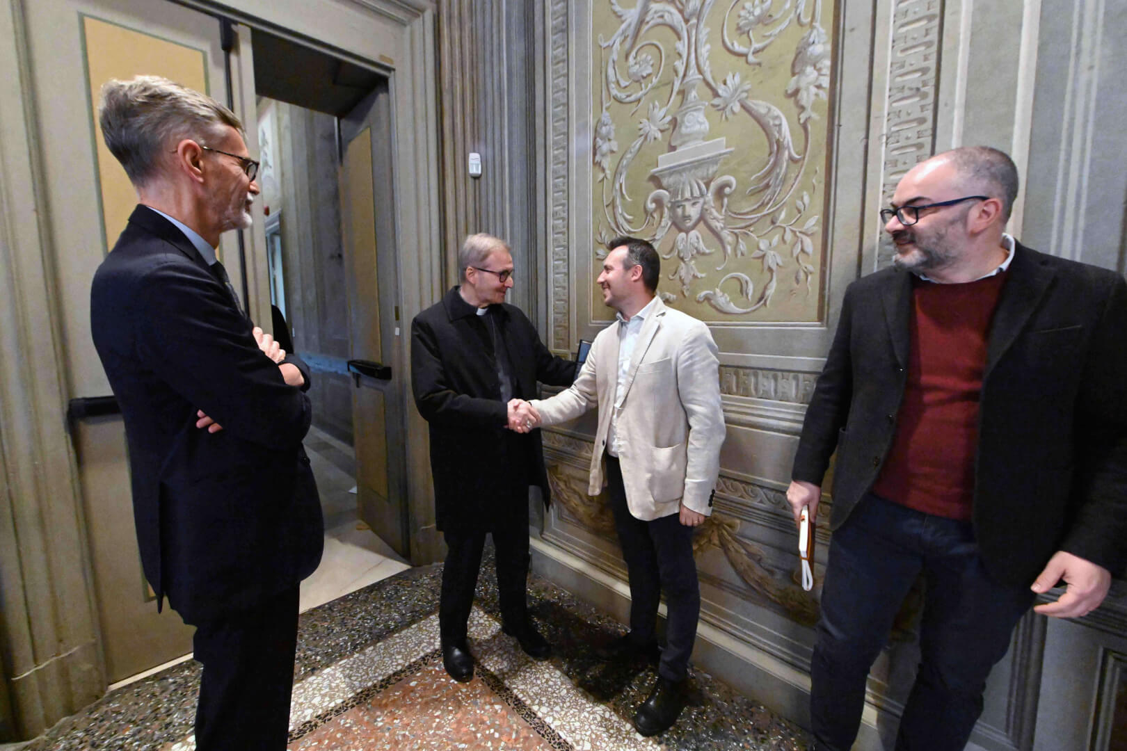 In preparazione alla Giornata mondiale delle comunicazioni sociali, il vescovo Pierantonio ha incontrato i giornalisti presso la sede dell'Università Cattolica del Sacro Cuore. Nell'occasione è stata presentata anche la mostra, "Comunicare la Speranza", allestita nel corridoio Montini dalla Società San Paolo e dalle Figlie di San Paolo e curata da Francesco Antonioli e da Gerolamo Fazzini