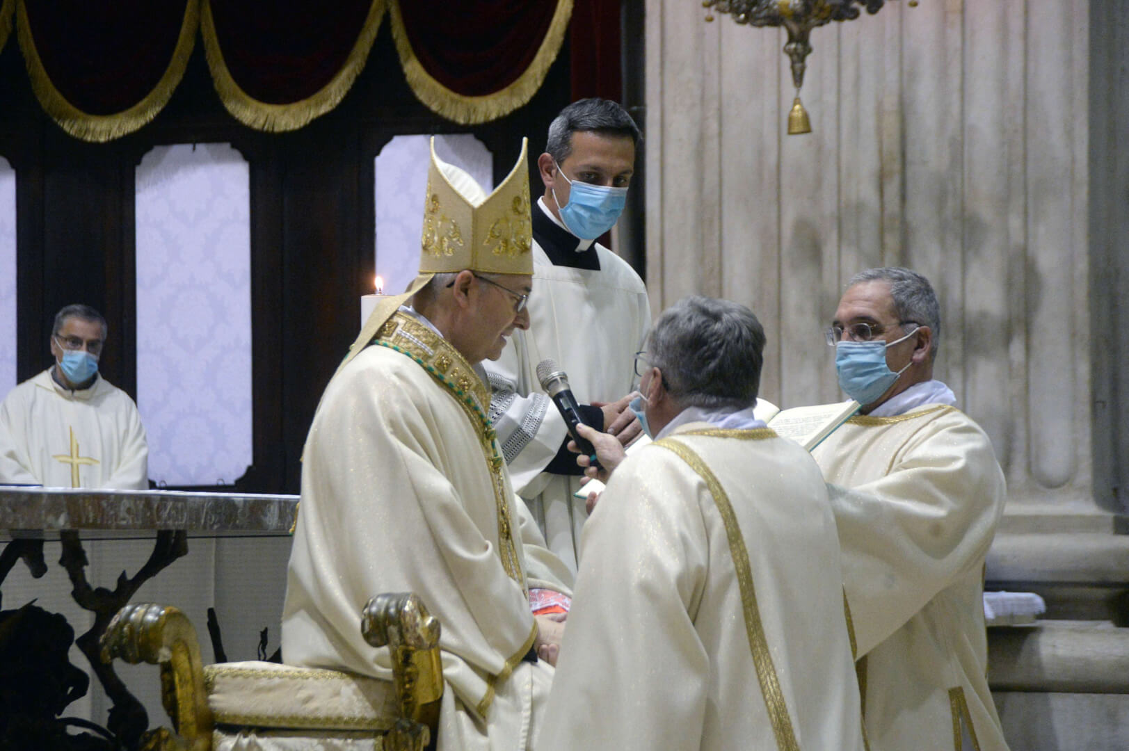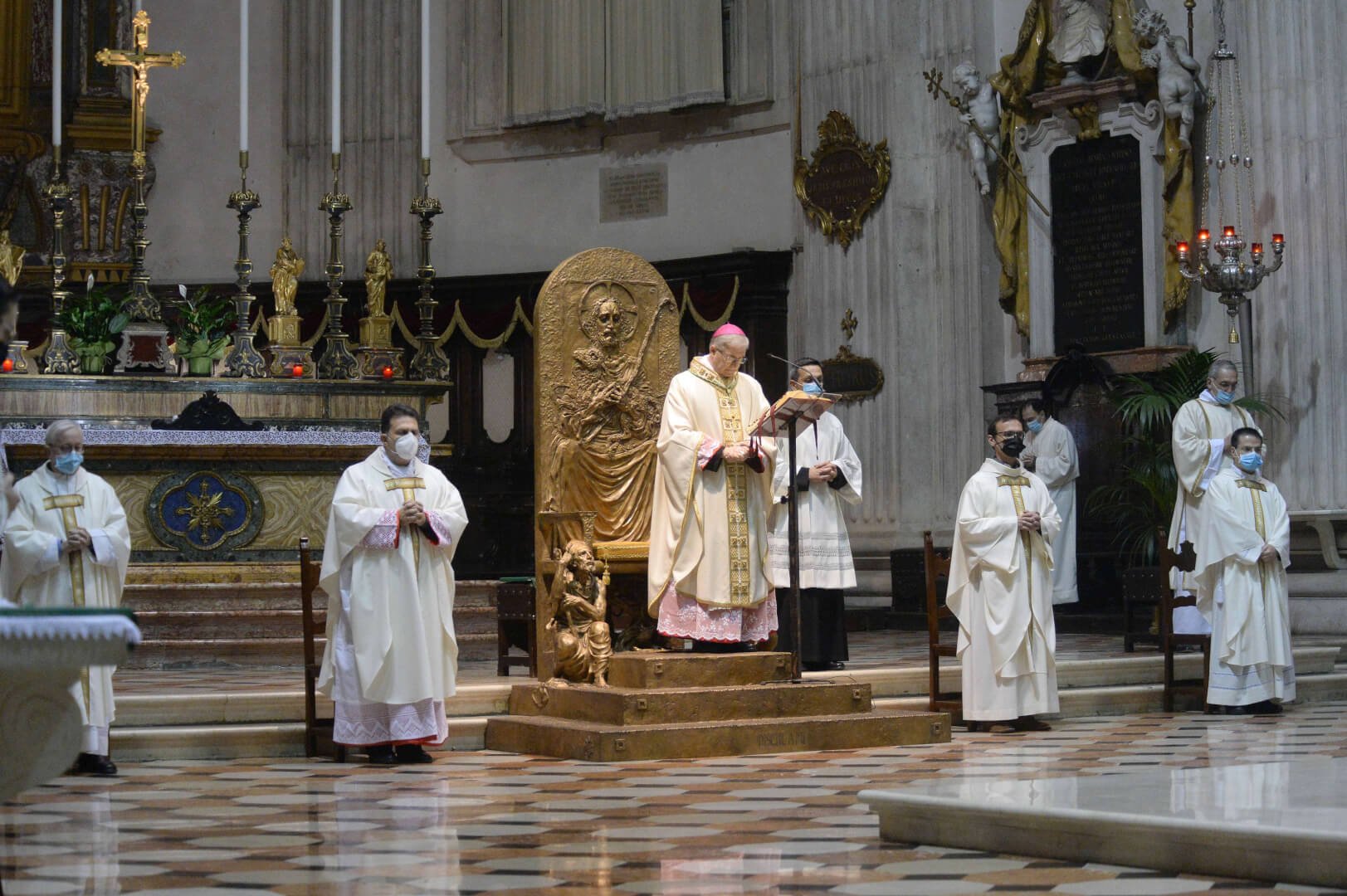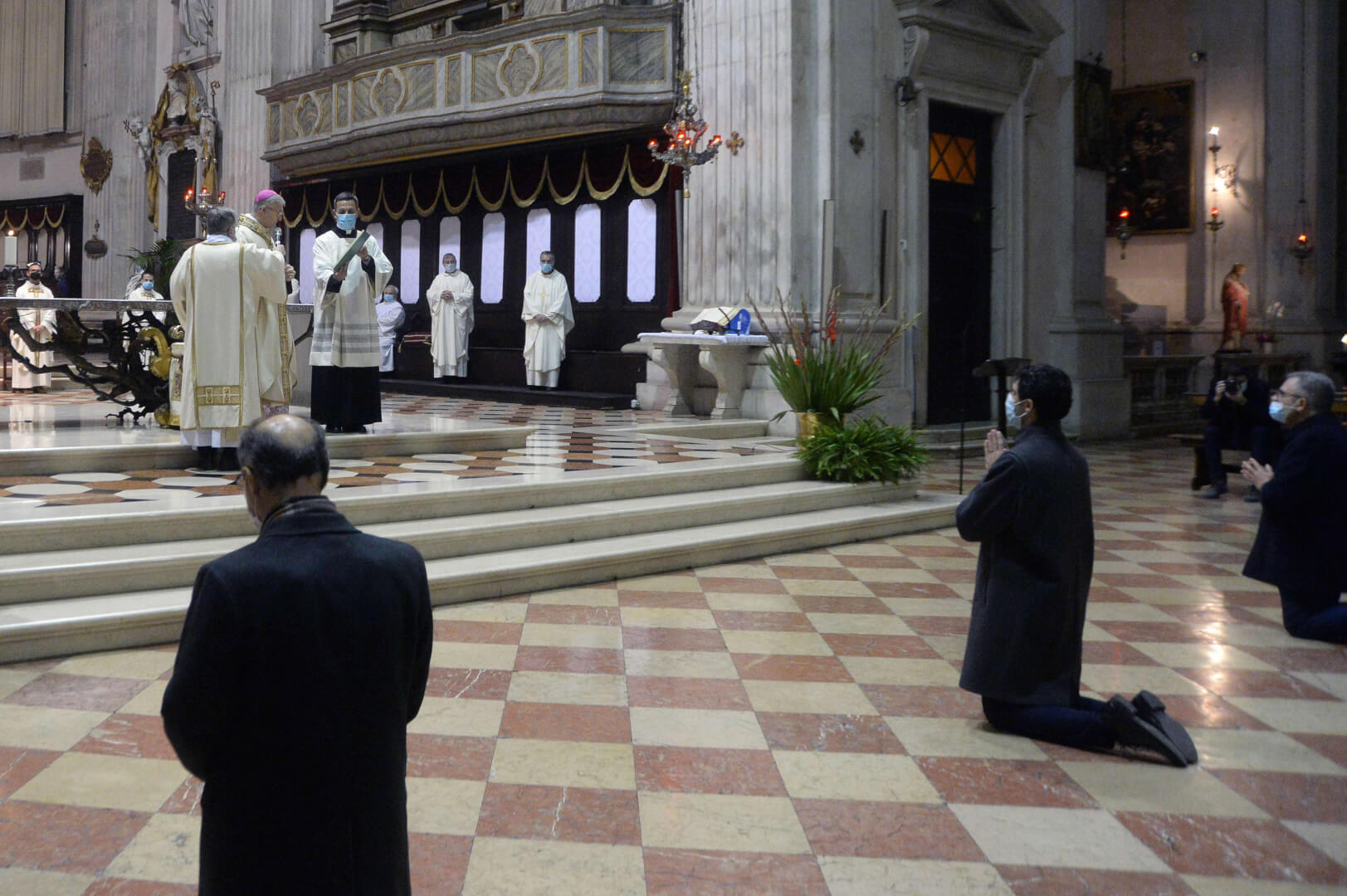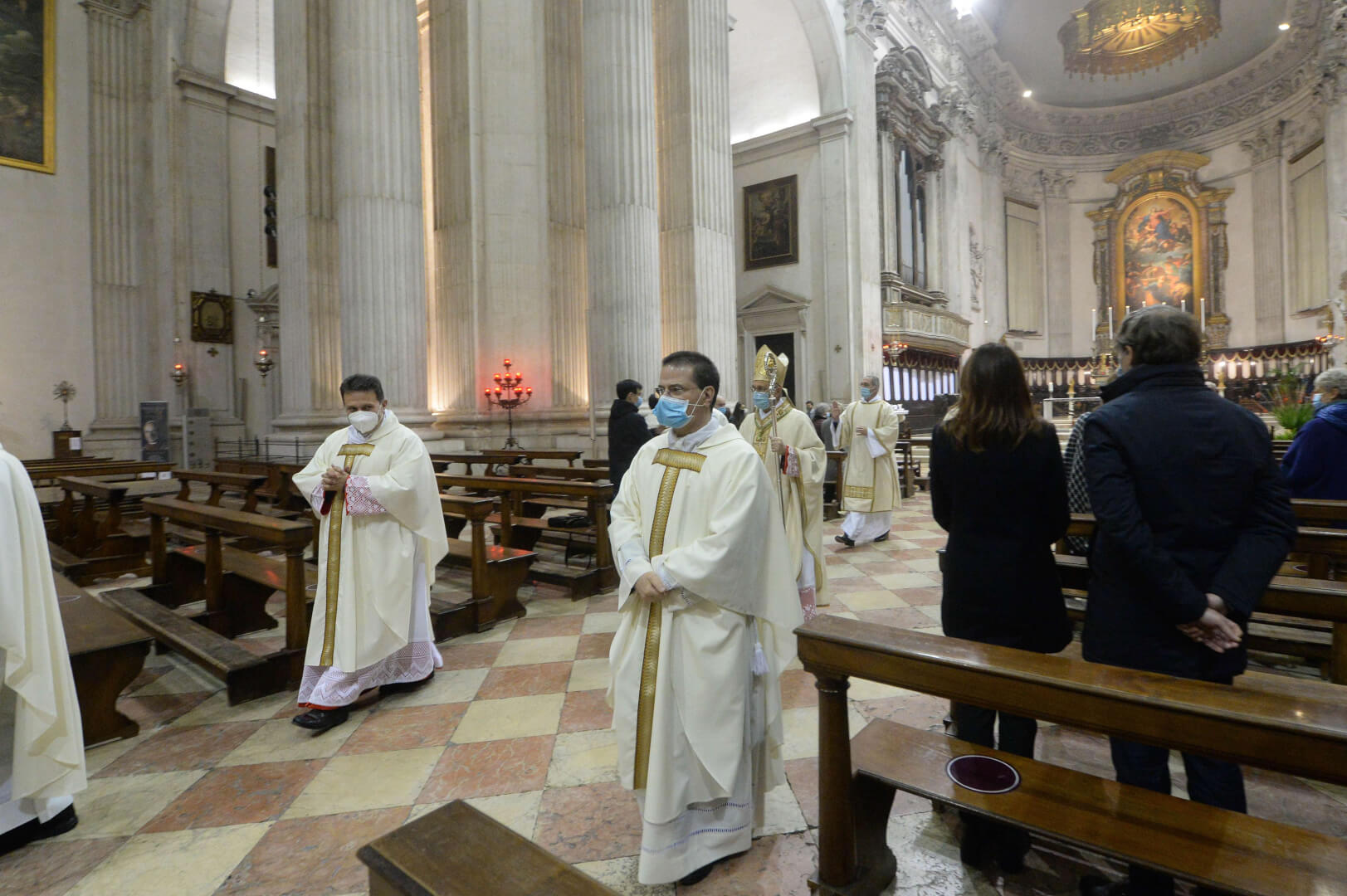 La S. Messa presieduta dal vescovo Pierantonio e il rito di ammissione dei candidati al diaconato permanente in Cattedrale: Vittorio Bordiga, classe 1979, di Ospitaletto e agente di commercio; Simone Frusca (1982) di Monticelli Brusati, coniugato con quattro figli e consulente Coldiretti; Francesco Trivella (1964) di Concesio Pieve e insegnante di religione, coniugato con tre figli