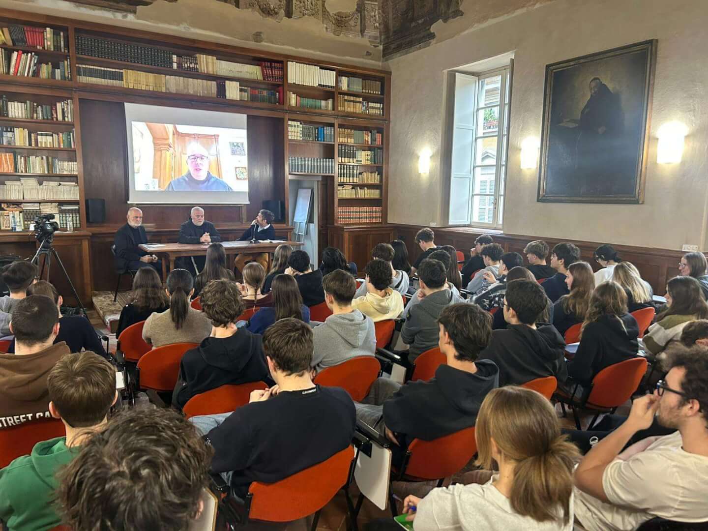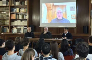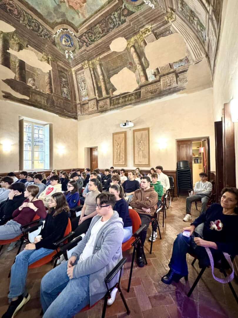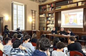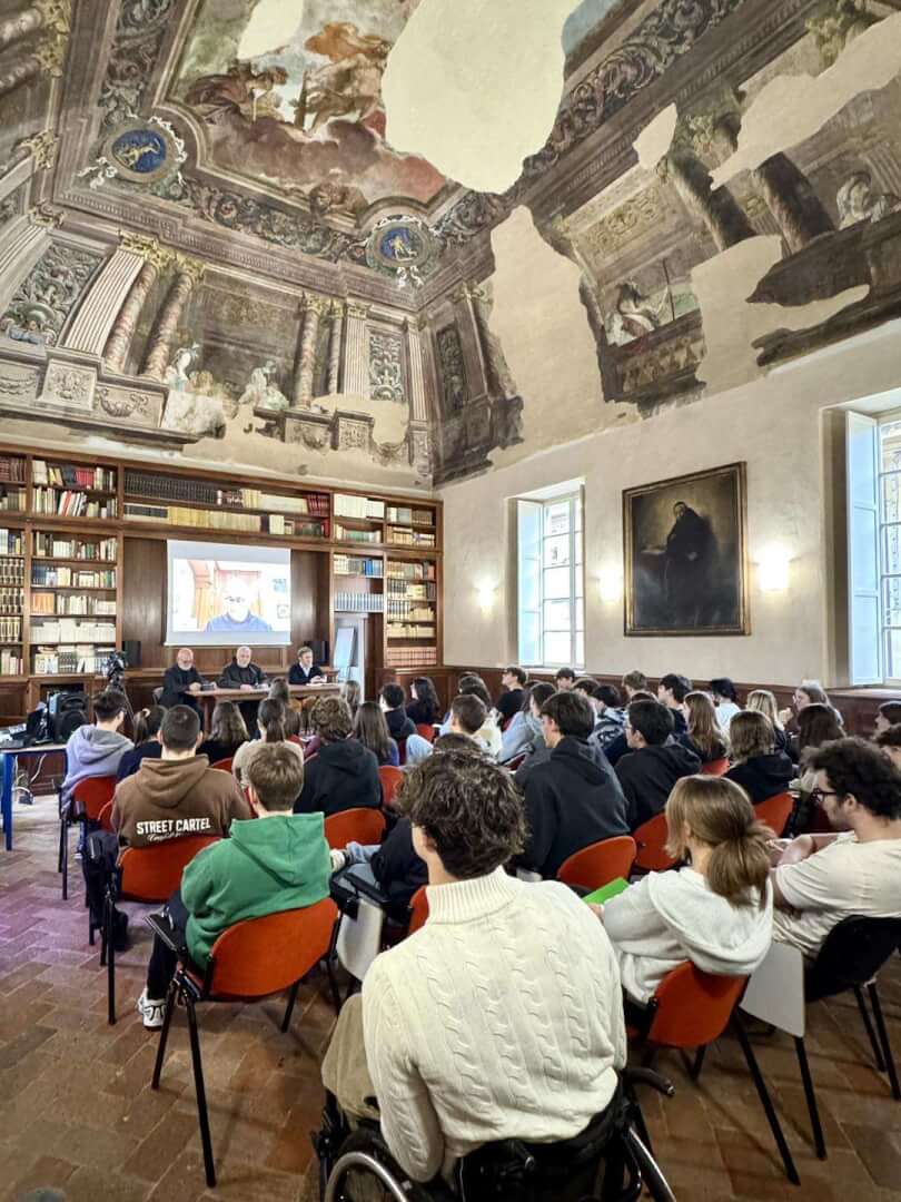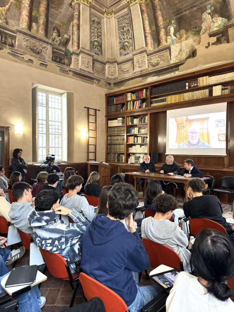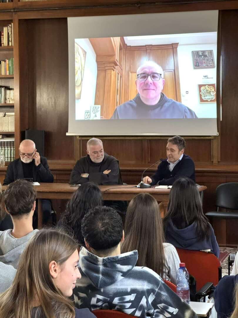 Lunedì 17 novembre, dalla Sala d’Ercole del Liceo Luzzago, gli studenti dell'Istituto di via Alessandro Monti, in collegamento insieme agli alunni del Liceo Arici, hanno avuto l’occasione di dialogare con padre Francesco Ielpo, Custode di Terra Santa e Guardiano del Monte Sion, ruolo fondamentale per la promozione del dialogo e della pace in una delle aree più delicate al mondo
