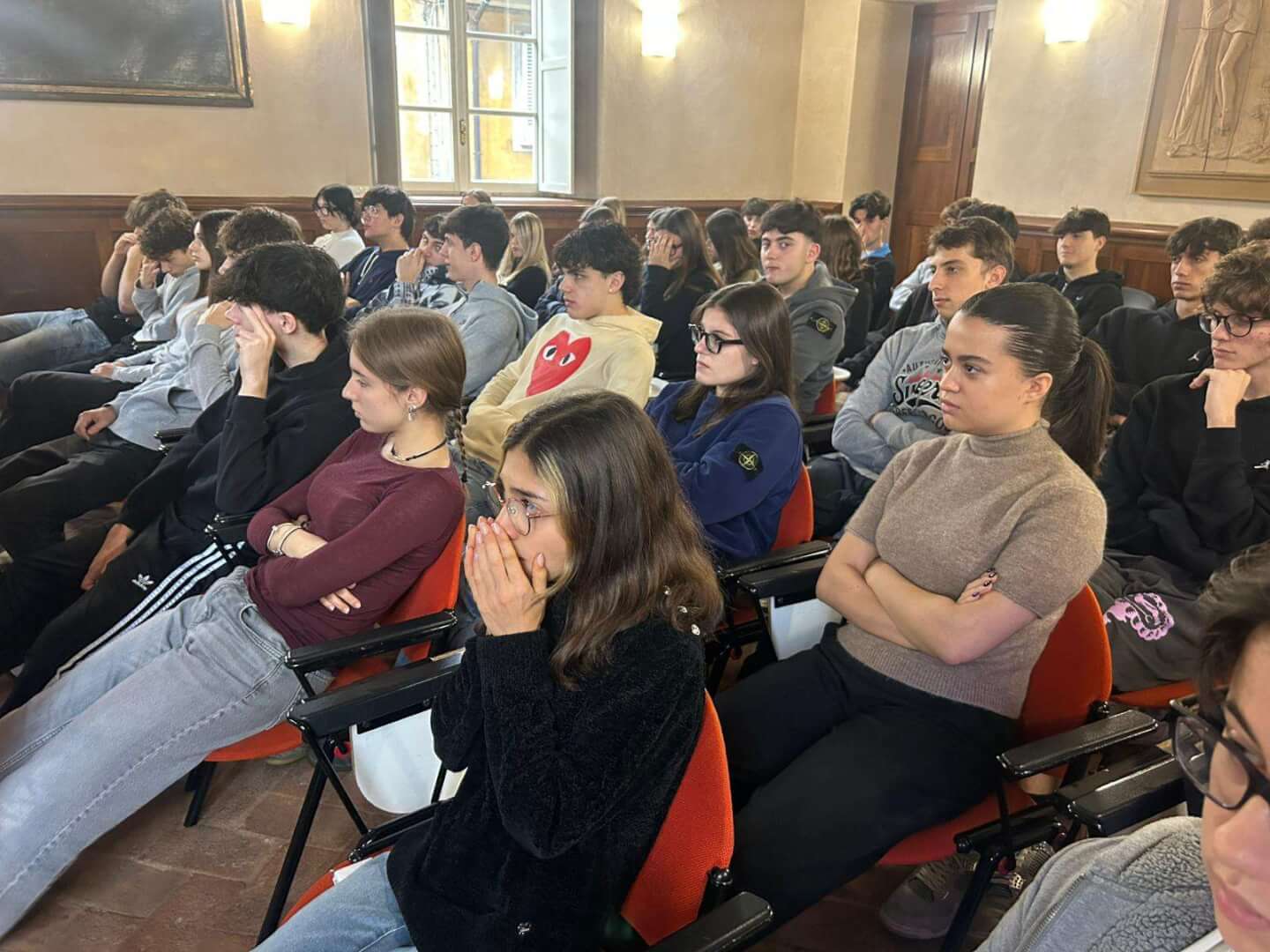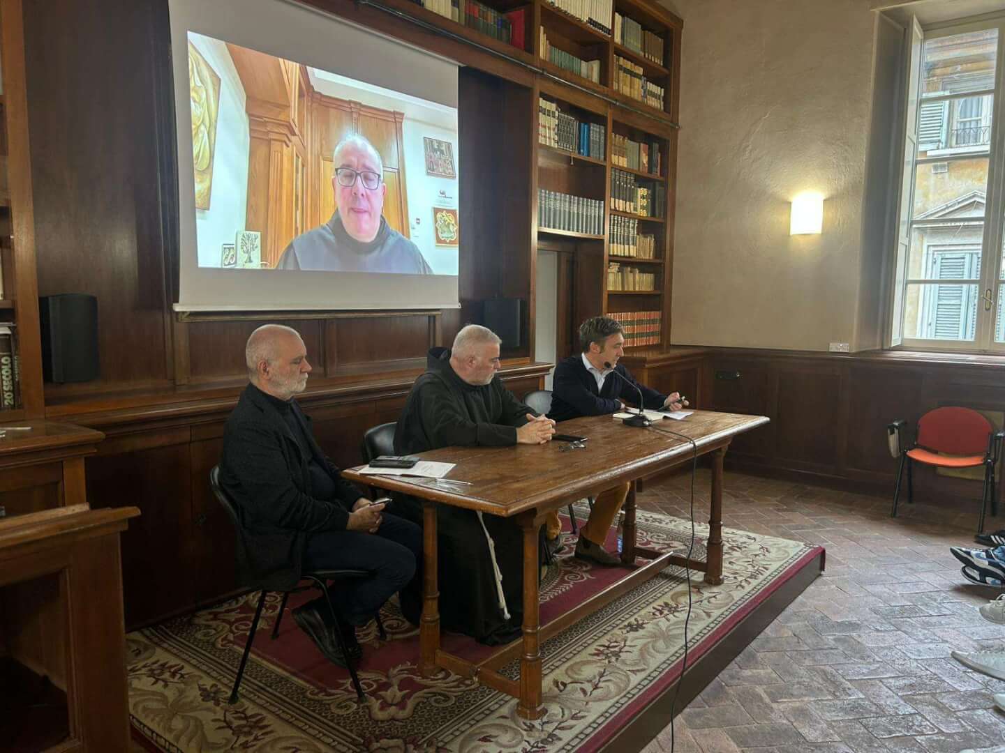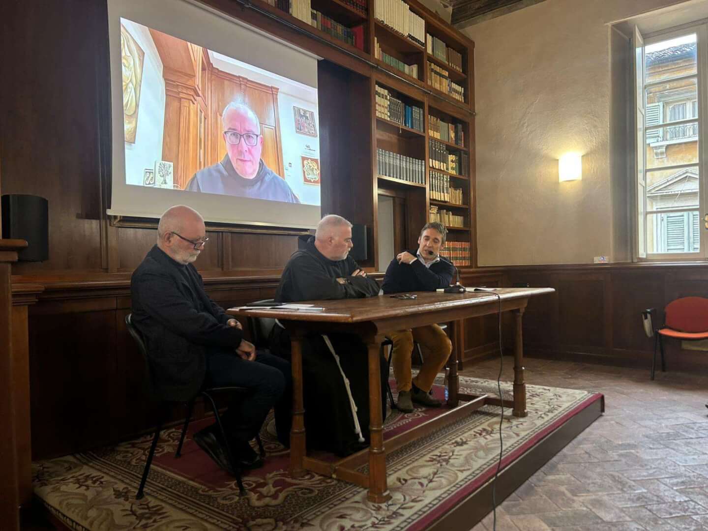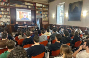 Lunedì 17 novembre, dalla Sala d’Ercole del Liceo Luzzago, gli studenti dell'Istituto di via Alessandro Monti, in collegamento insieme agli alunni del Liceo Arici, hanno avuto l’occasione di dialogare con padre Francesco Ielpo, Custode di Terra Santa e Guardiano del Monte Sion, ruolo fondamentale per la promozione del dialogo e della pace in una delle aree più delicate al mondo