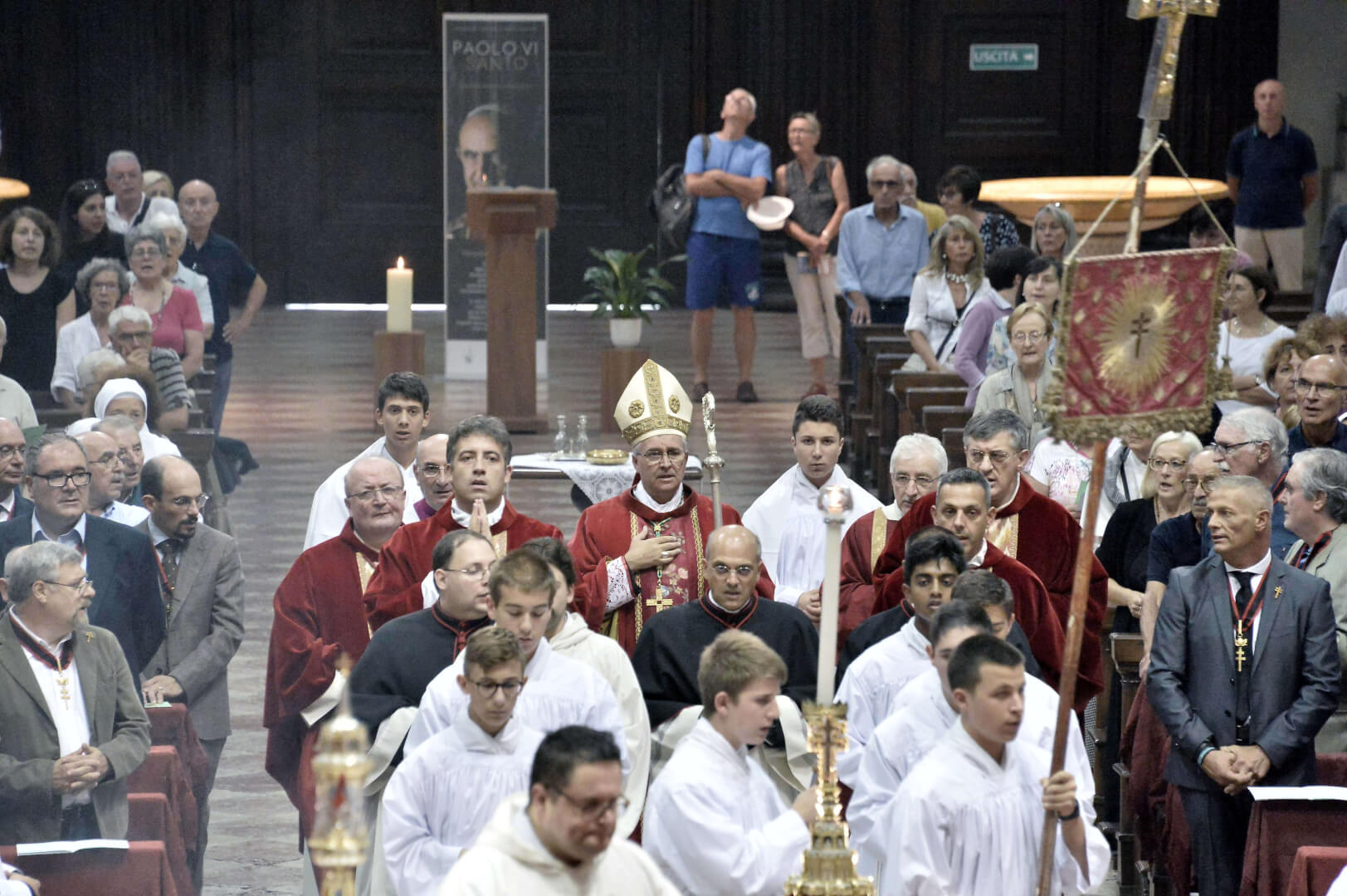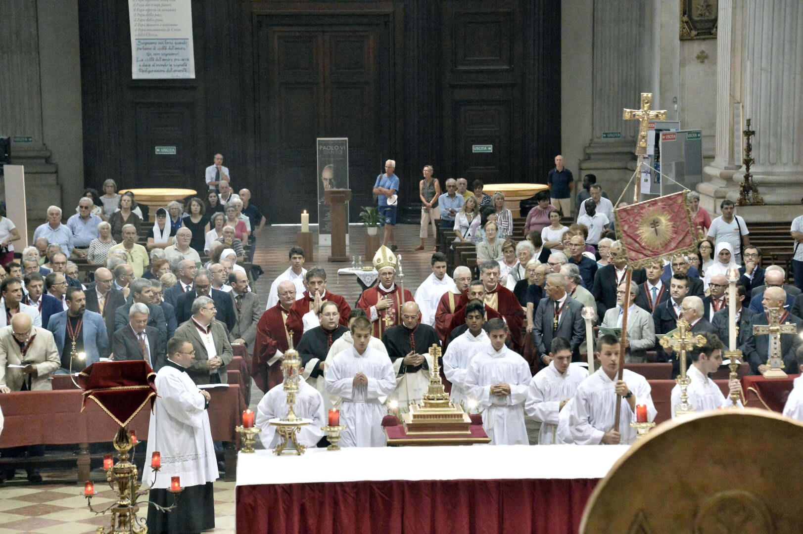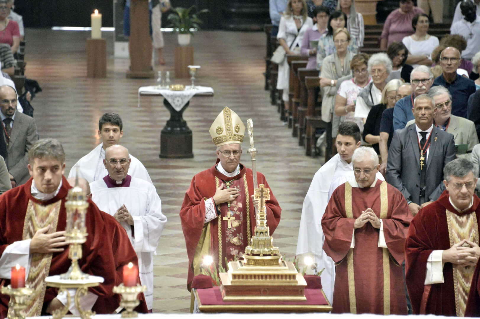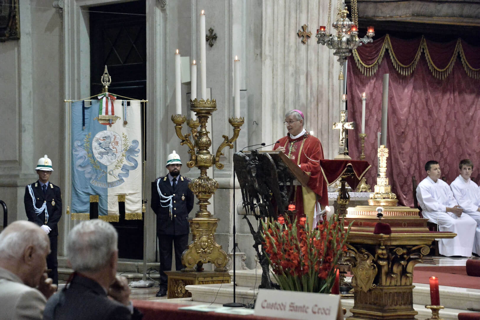 La S. Messa, presieduta dal vescovo Tremolada, e la reposizione della reliquia delle Sante Croci in Cattedrale