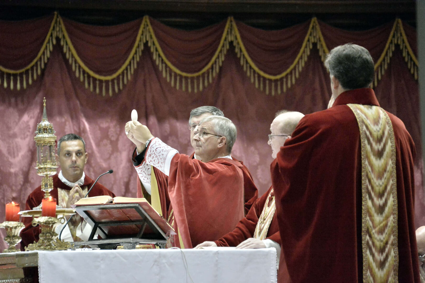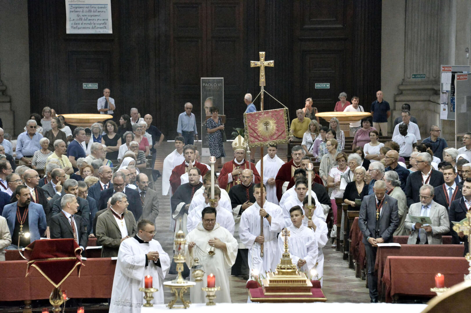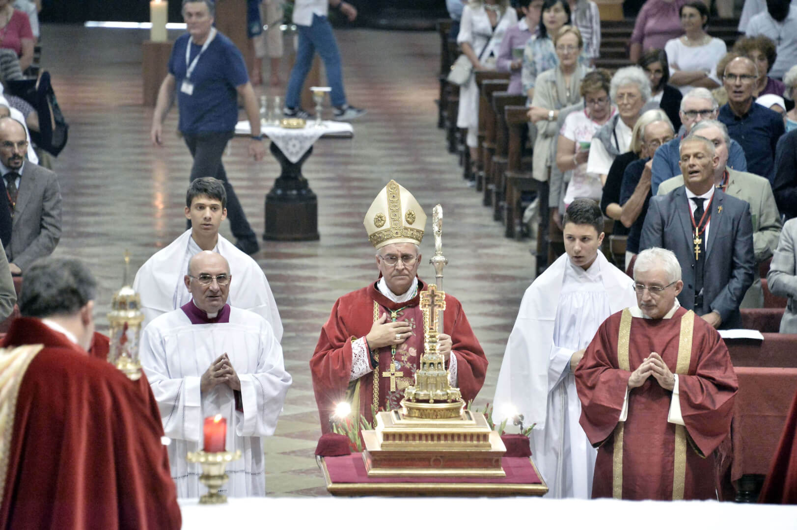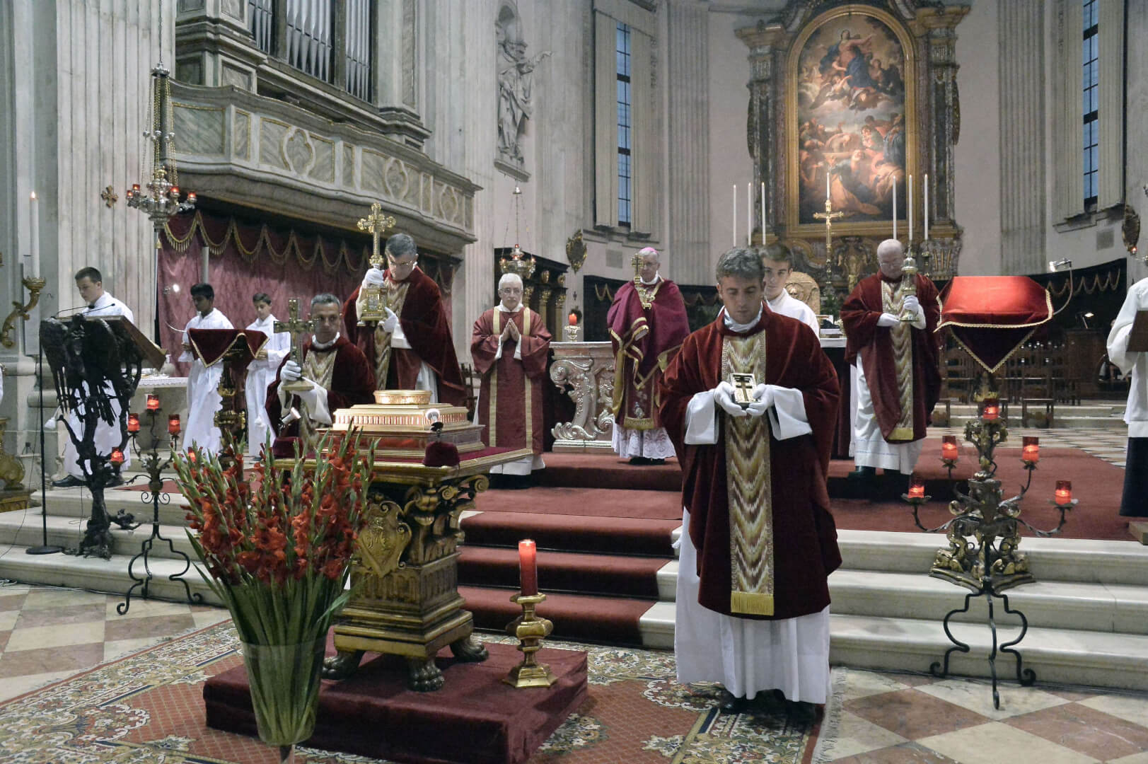 La S. Messa, presieduta dal vescovo Tremolada, e la reposizione della reliquia delle Sante Croci in Cattedrale