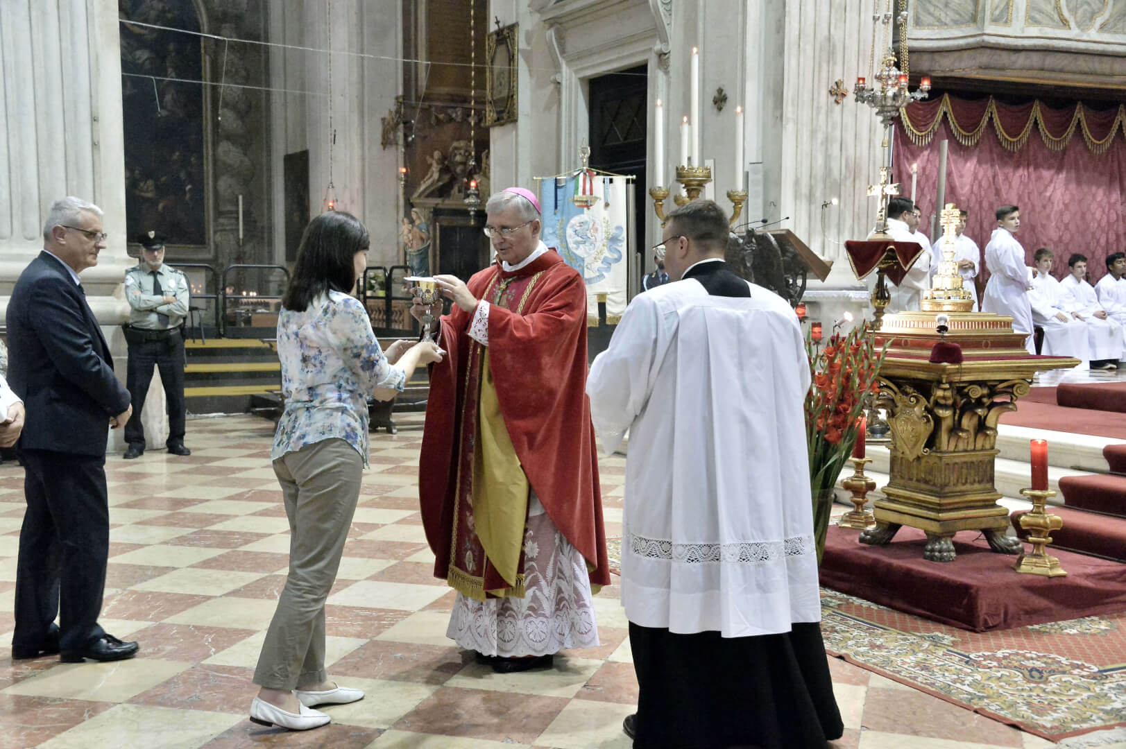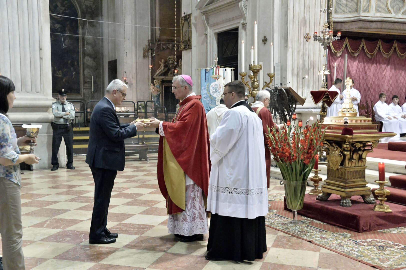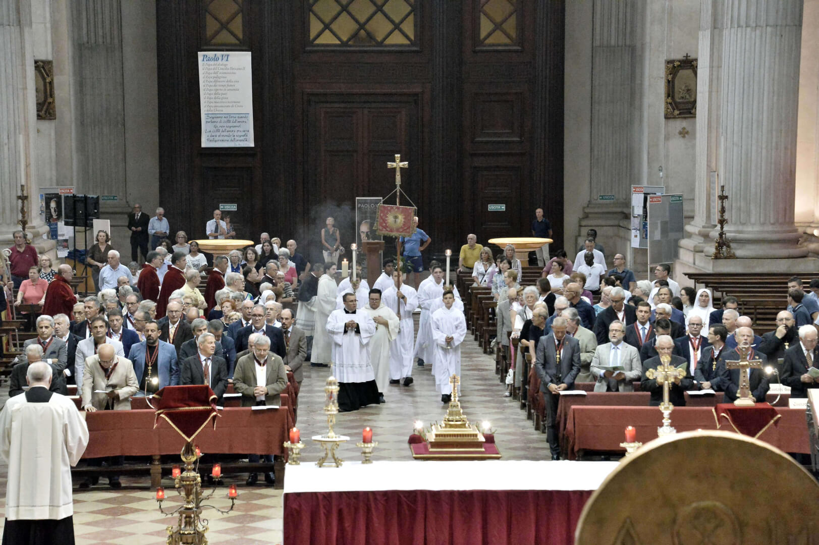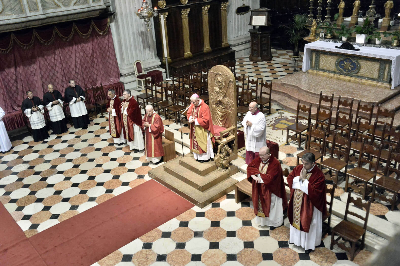 La S. Messa, presieduta dal vescovo Tremolada, e la reposizione della reliquia delle Sante Croci in Cattedrale