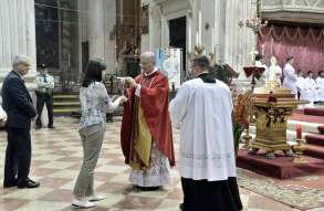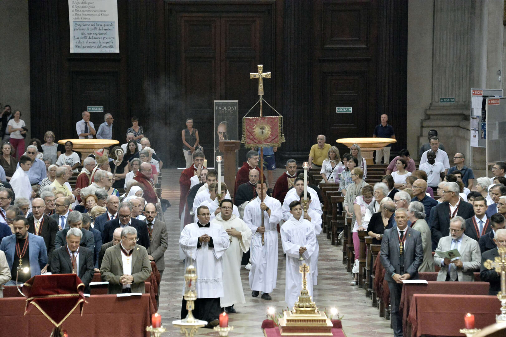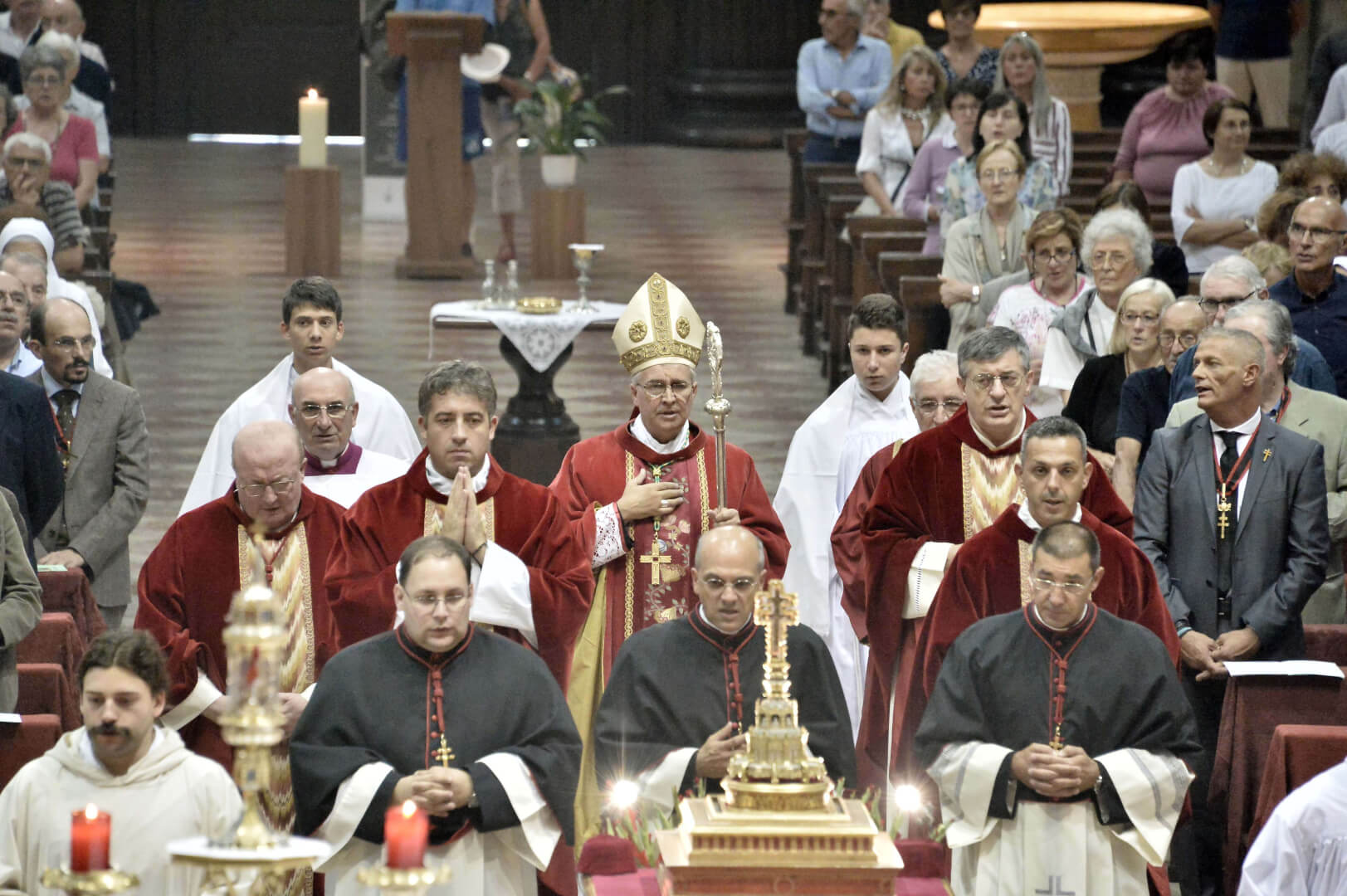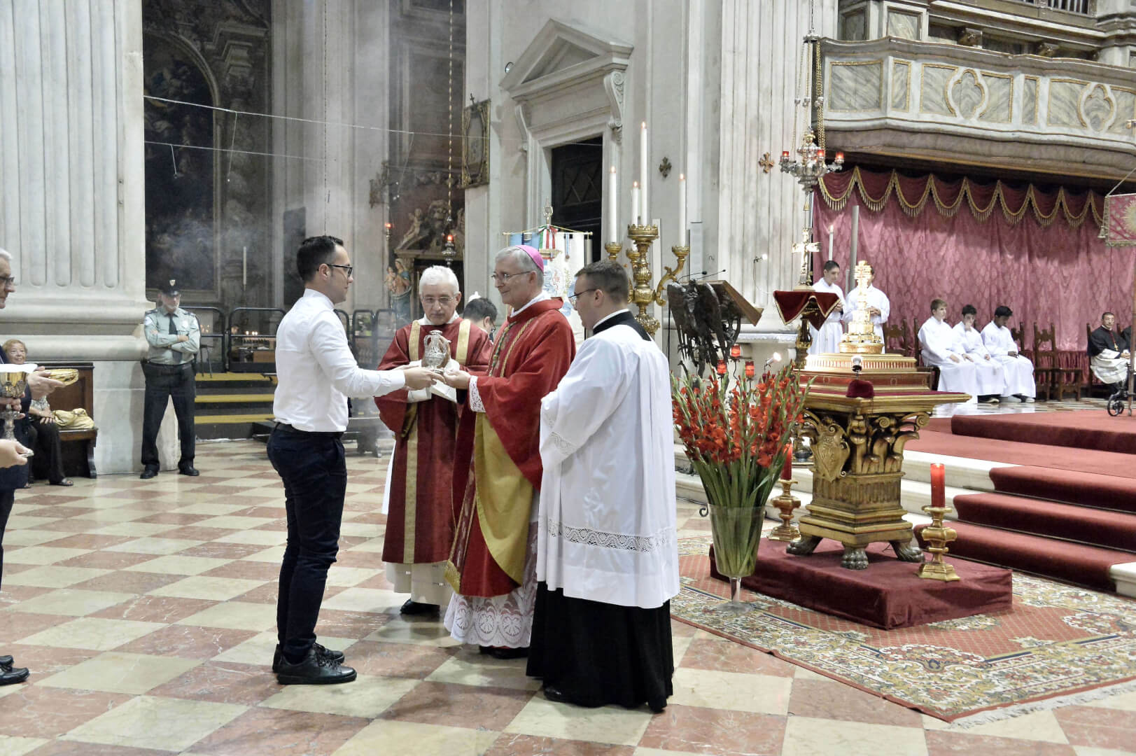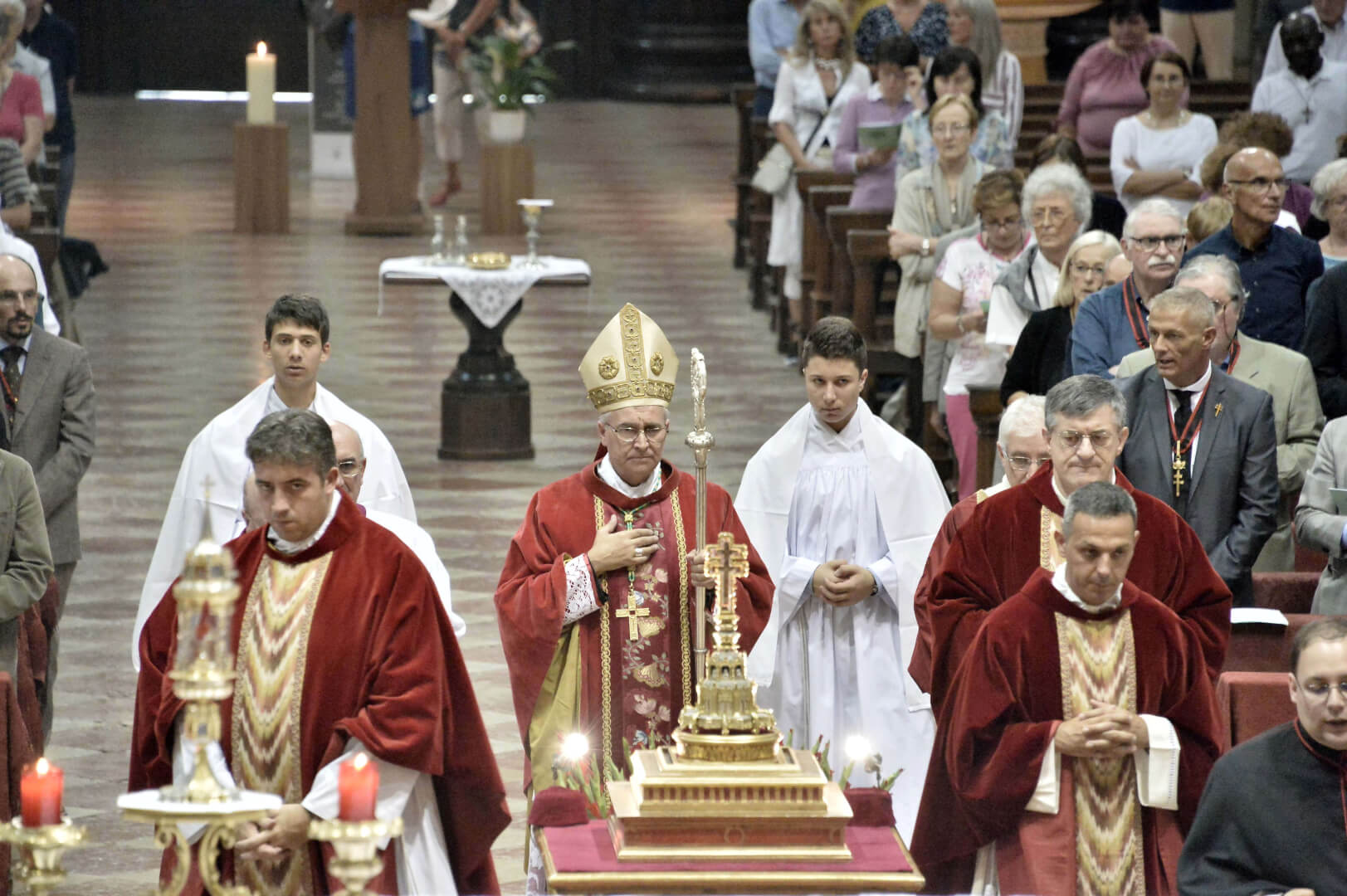La S. Messa, presieduta dal vescovo Tremolada, e la reposizione della reliquia delle Sante Croci in Cattedrale