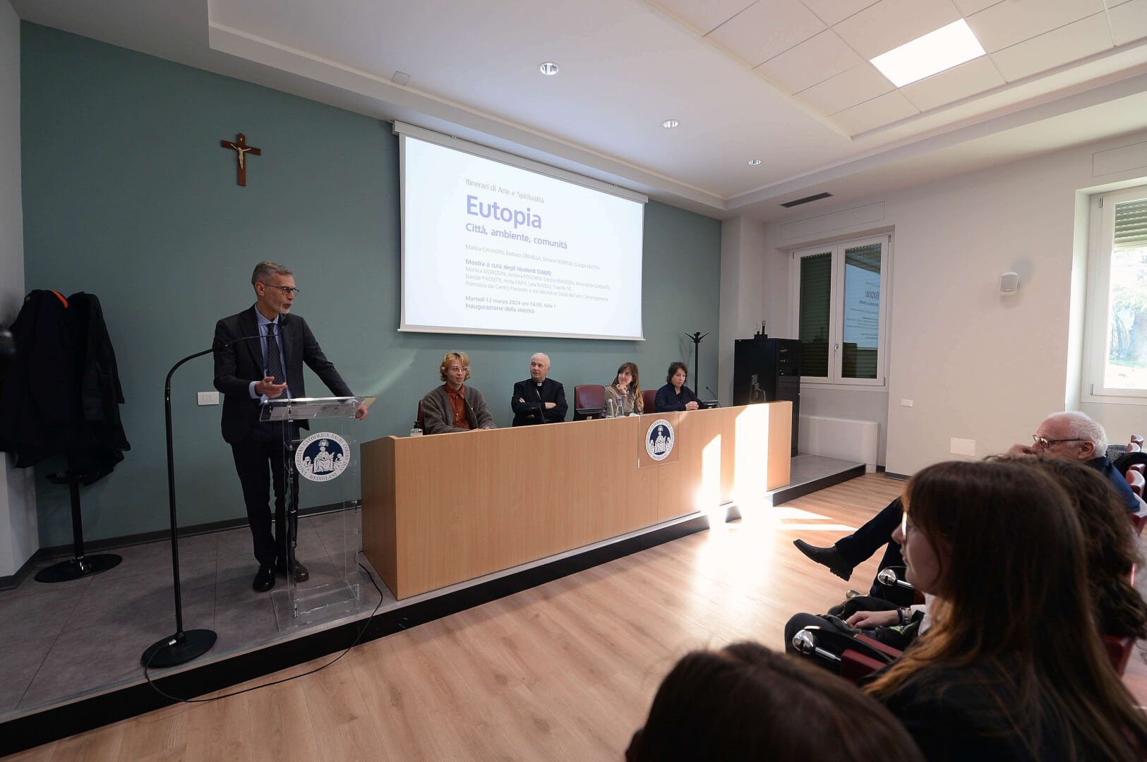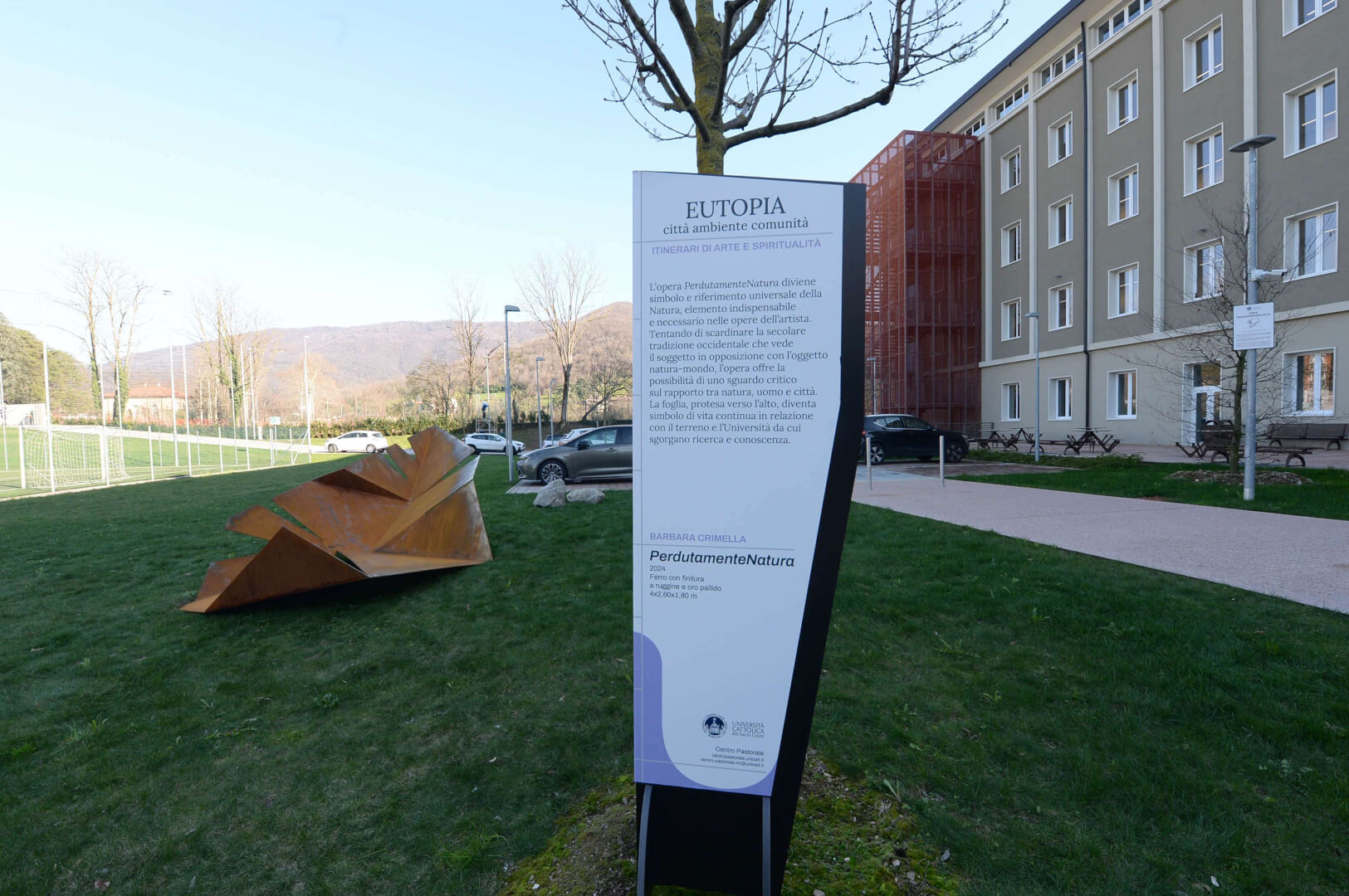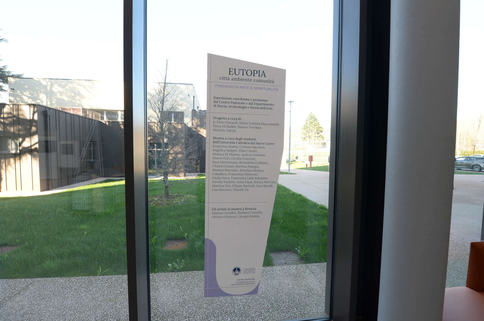 Quattro artisti contemporanei, altrettante opere e otto studenti curatori. Sono i numeri della tappa bresciana di “Eutopia Città, ambiente, comunità” allestita fino al 16 aprile negli spazi interni ed esterni del Campus dell’Università Cattolica e che raduna i lavori di Marina Cavadini, Barbara Crimella, Oliviero Fiorenzi, Giorgio Mattia, con la curatela degli studenti del DAMS Monica Morosini, Andrea Foschini, Cecilia Franzoni, Benedetta Gobbato, Davide Paoletti, Anita Papa, Sara Ravelli e Yuanfei Ye.