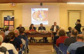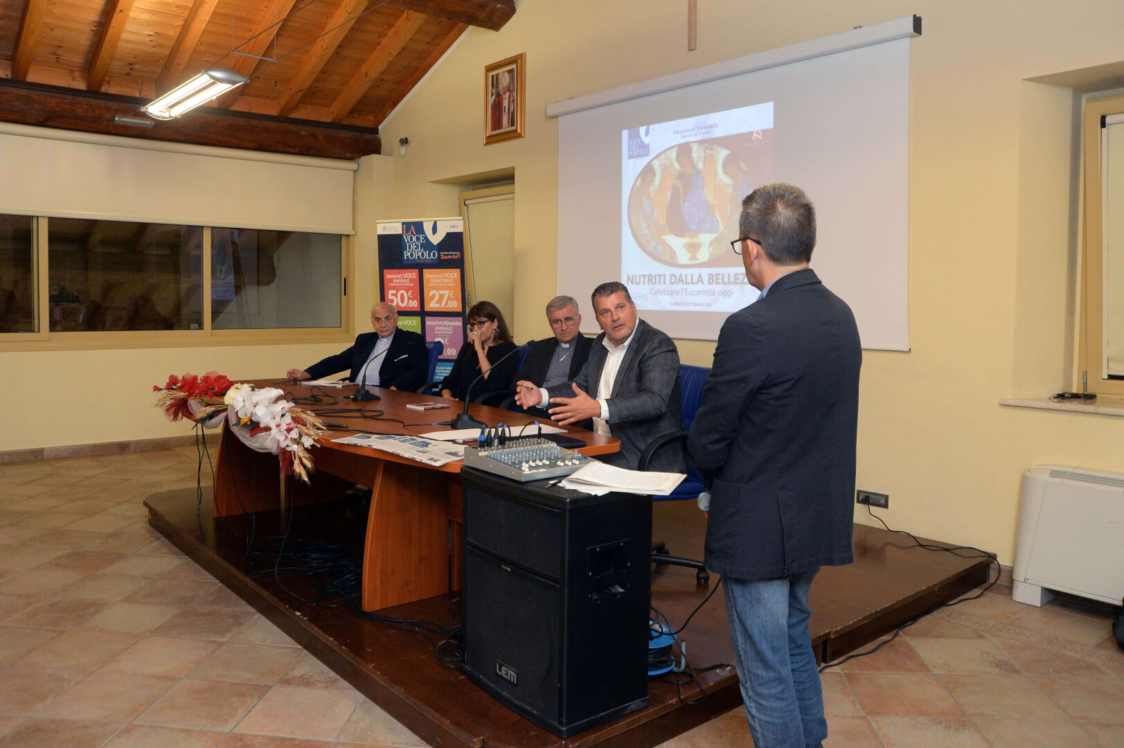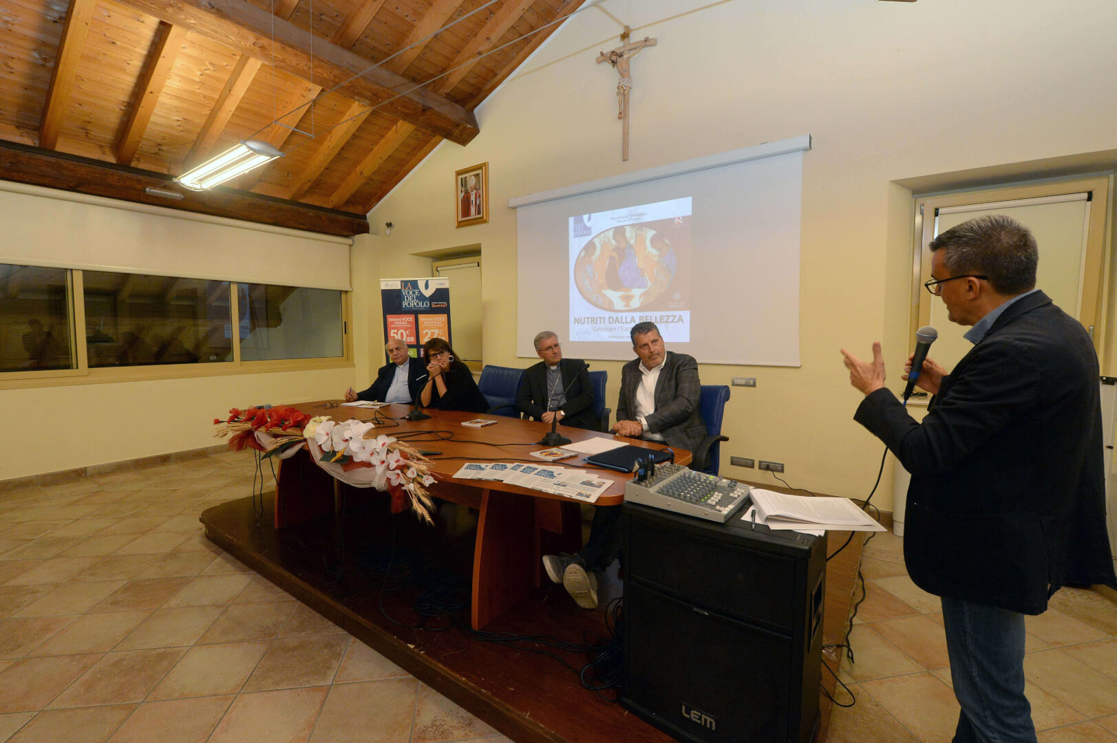 La prima serata della festa de "La Voce del Popolo" a Lograto, con il dialogo fra il vescovo Pierantonio a partire dalla Lettera pastorale con Roberto Zini, Carla Bino e mons. Gabriele Filippini